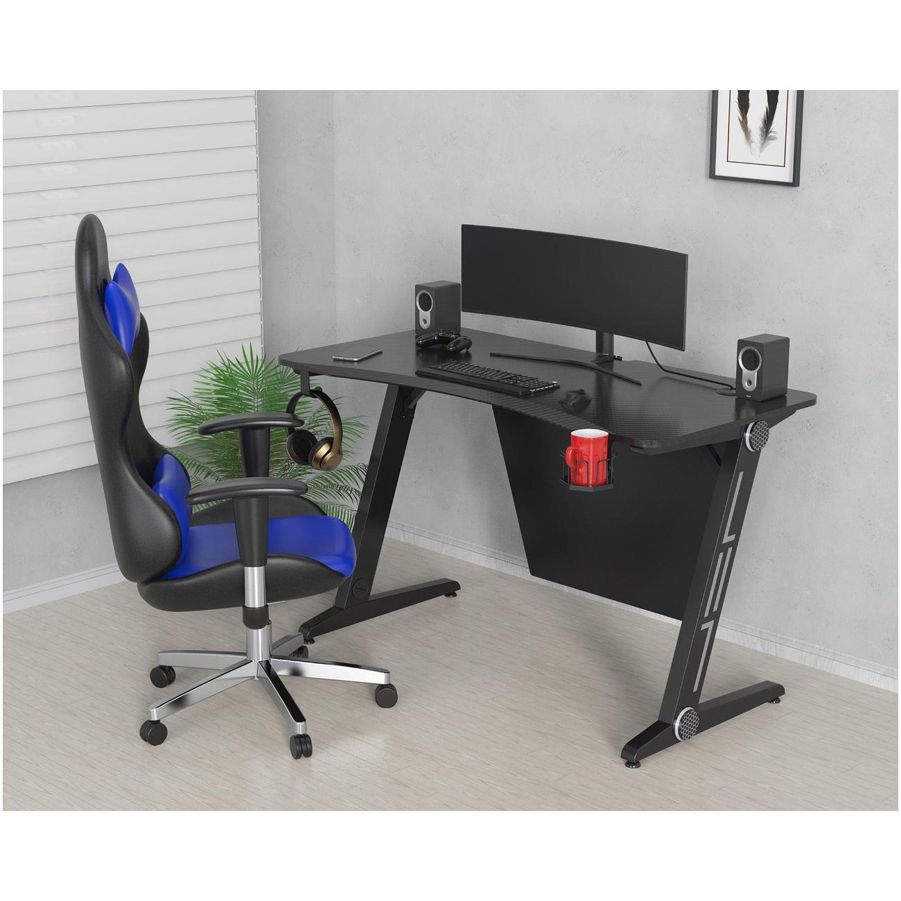 Игровой компьютерный стол CS-GTZ-BKSL-CARBON оснащен прочной стальной конструкцией, столешницей из МФД толщиной 15 мм. Данная модель отличается эргономичным дизайном и специальными световыми эффектами, который делают процесс игры увлекательнее. Благодаря небольшим размером изделие можно устанавливать даже в ограниченном пространстве. Конструкция данной модели включает в себя подстаканник, крючок для подвешивания наушников и встроенный кабель-канал.
