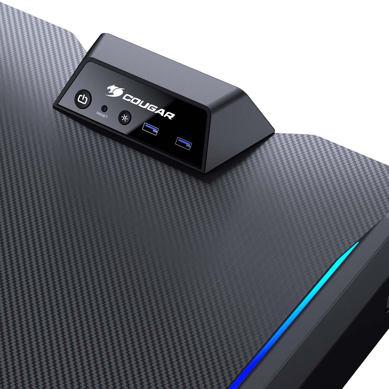 По бокам стола размещены два многофункциональных блока, позволяющих подключать USB-девайсы и аудиоустройства, чтобы тебе не приходилось постоянно отыскивать разъёмы на системнике. Кроме того, создатели расположили на левой и правой сторонах зоны для RGB-подсветки, совестимой с интерфейсами системных плат ASRock Polychrome Sync, Gigabyte RGB Fusion, MSI Mystic Light Sync и Asus Aura Sync, чтобы синхронизировать свечение с другими устройствами.