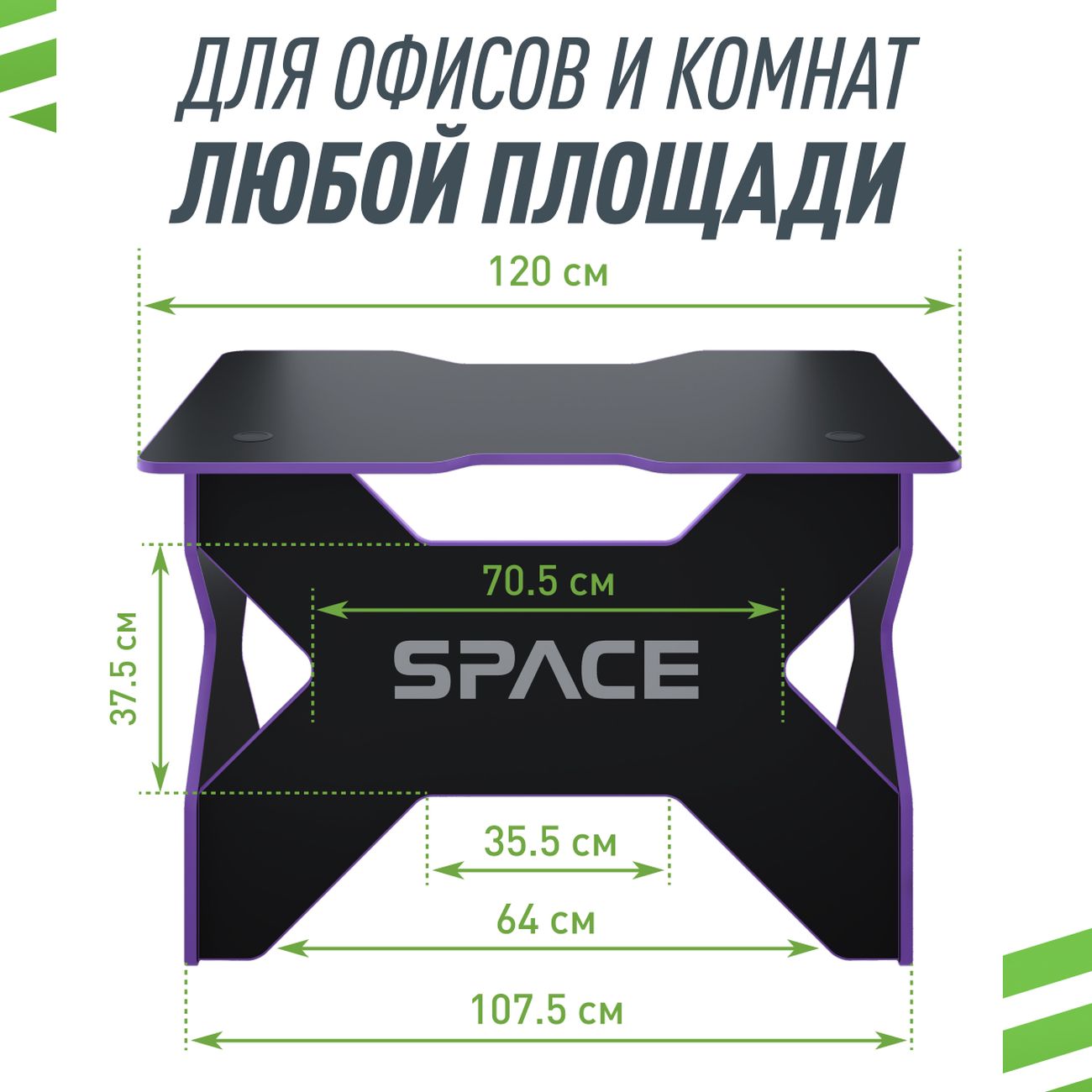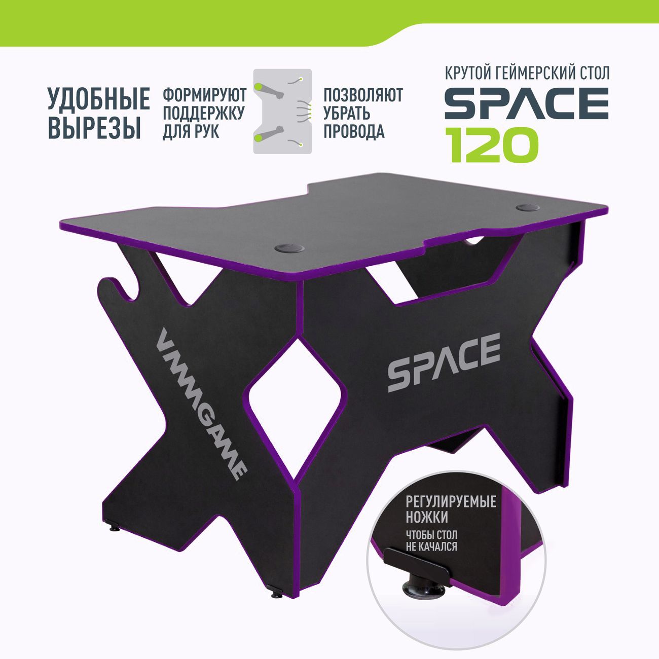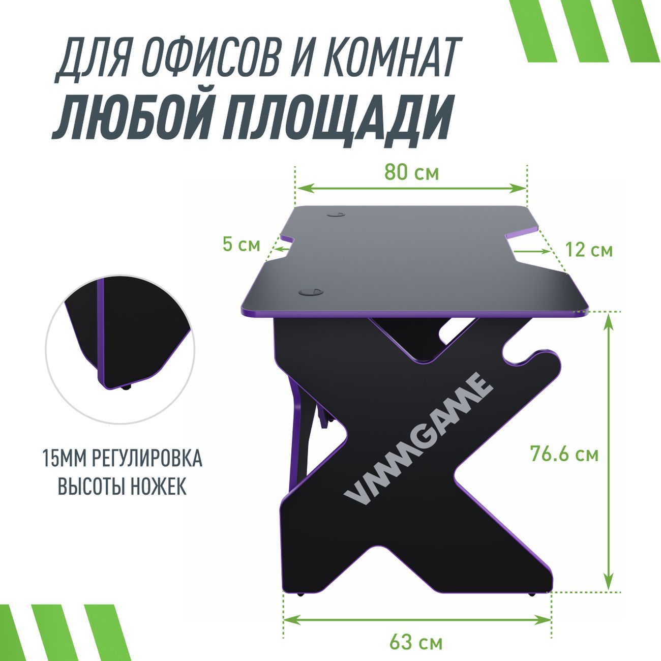 Игровой компьютерный стол Vmmgame ST-1BPU выдерживает до 80 кг нагрузки. Рабочая поверхность из ЛДСП толщиной 16 мм установлена на каркас из ПВХ и дополнена кромкой круглой формы. Модель выполнена в черно-фиолетовых тонах и весит 22,94 кг при габаритах 77х120х80 см. Предусмотрено два держателя для сумок и рюкзаков. Ножки можно регулировать по высоте для компенсации неровностей пола. Спереди и сзади стол получил вырезы для проводов и более удобной посадки.