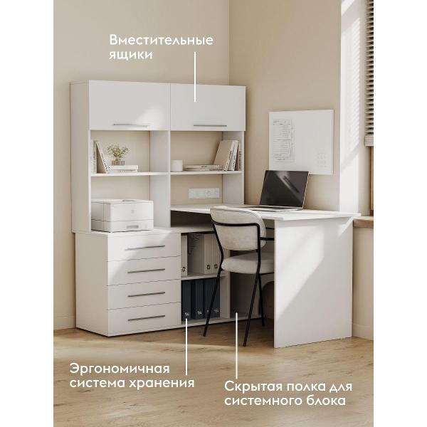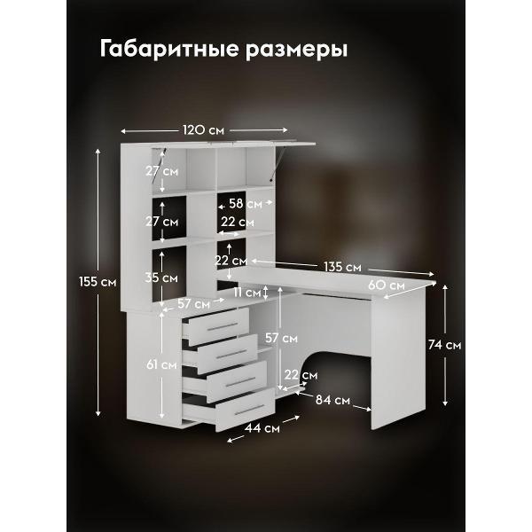 Компьютерный стол Бастон — удобная и функциональная модель для домашнего кабинета, офиса или для школьников. На просторной поверхности поместятся стационарный компьютер или ноутбук, а также оргтехника. В выдвижных ящиках удобно хранить канцелярию и прочие полезные мелочи. На открытых нишах можно расположить файлы с документацией, а за распашными дверцами — спрятать личные вещи.