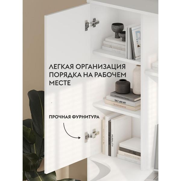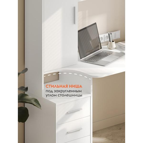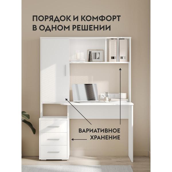 Компьютерный стол Тейлор незаменим для обустройства домашнего кабинета. Он сочетает в себе лаконичный дизайн и функциональность, идущую в ногу со временем. В конструкции стола предусмотрена высокая надстройка с открытыми полками и закрытым стеллажом с двумя просторными полками, благодаря которым все нужные бумаги, книги и канцелярские принадлежности всегда будут под рукой. Под столешницей расположена тумба с открытой нишей и тремя выдвижными ящиками на шариковых направляющих.