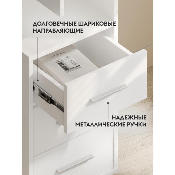 • шариковые направляющие полного выдвижения — плавное выдвижение ящиков, долговечность конструкции.