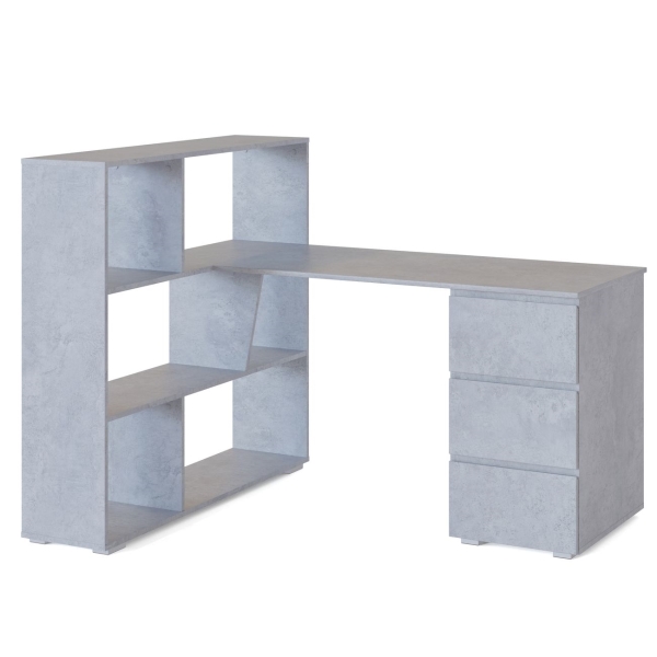 Письменный стол «Сокол» СПм-20 комплектуется тумбой и стеллажом. На ящиках нет ручек. Верхняя часть фасадных панелей скошена на 45° для легкого открытия. Конструкция выполнена из ламинированной ДСП. Собирать модель можно на левую и правую сторону. Габариты — 1122 х 1494 х 1200 мм.