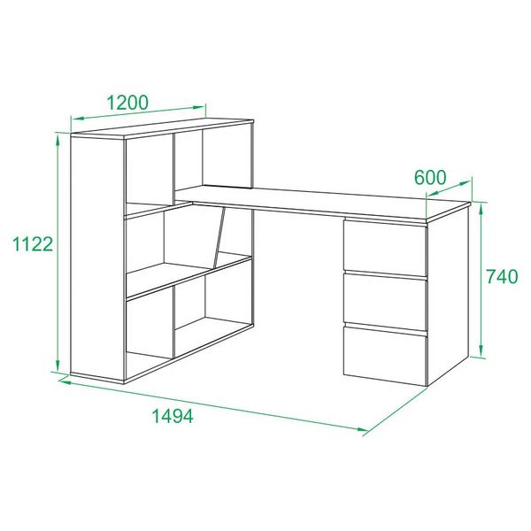 Данная модель обладает рядом открытых ниш и тумбой с тремя ящиками, куда можно положить необходимые вещи – владельцу не потребуется лишний раз вставать со стула, чтобы покопаться в личных архивах и быстро отыскать документы. При этом создатели сделали упор на универсальность – тумба размещается как с правой стороны, так и с левой.