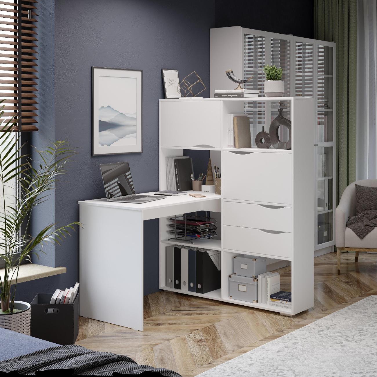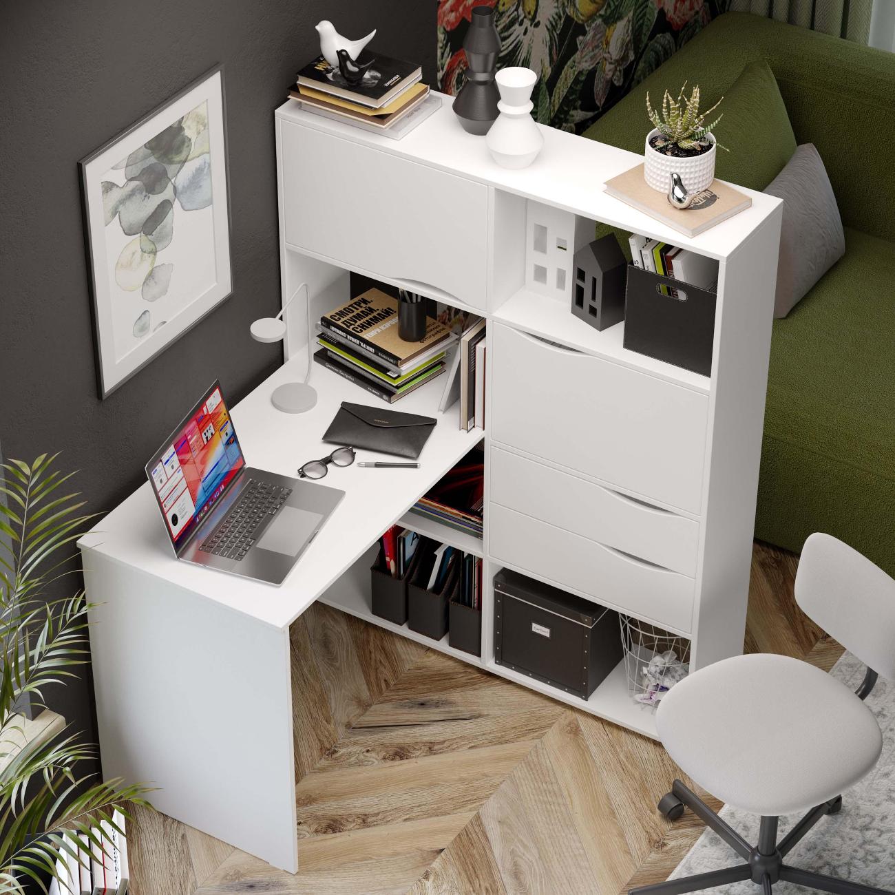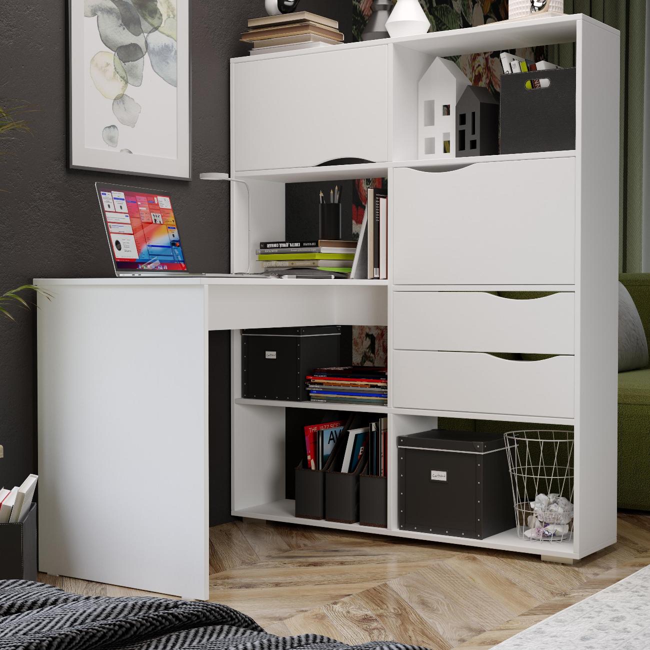 Угловой письменный стол тип 7 является основополагающей в организации рабочего пространства. Данная модель мебели идеально впишется в так в темные, так и в светлые тона интерьера, благодаря представленным расцветкам. Стол письменный тип 7 станет Вашим помощником в систематизации канцтоваров и других необходимых принадлежностей. Открытые полки обеспечивают хороший обзор и легкий доступ к книгам и учебникам, а за откидными фасадами можно скрыть наиболее важные предметы. Имеет достаточное дополнительное пространство для установки монитора и прочей рабочей канцелярии. Полки  позволят сохранить вам больше пространства и  визуальную эстетику минимализма,  а также организовать рабочее пространство.  Данная мебель обеспечивает удобство и комфорт при работе или учебе.  Для стола используются высококачественные ЛДСП и мебельная фурнитура, в комплекте имеются подробная инструкция по сборке, а так же весь необходимый крепеж.  Сборка легкая и не займет много времени. Поставляется в разобранном виде.