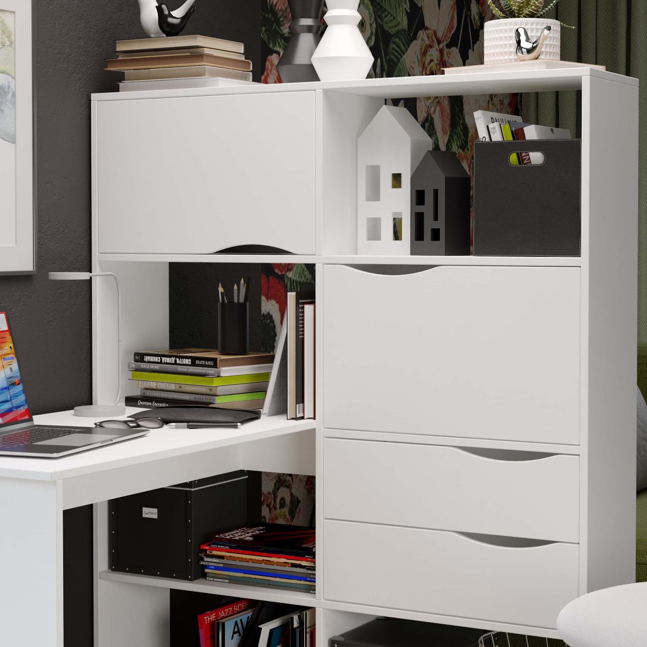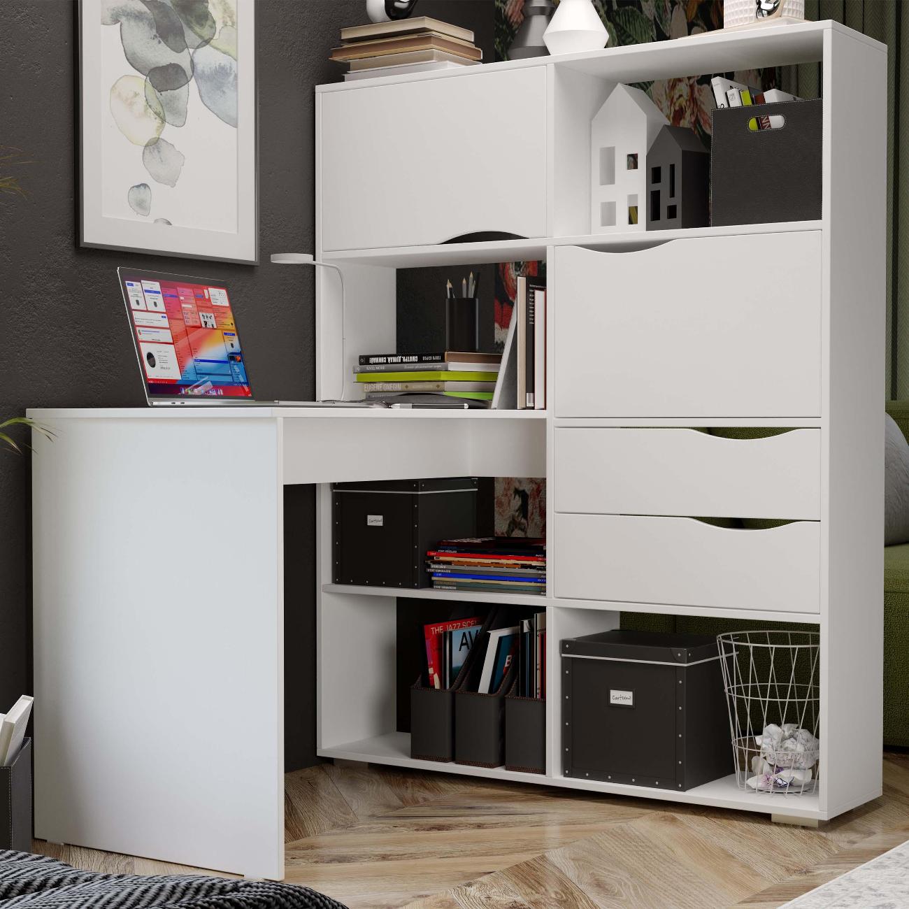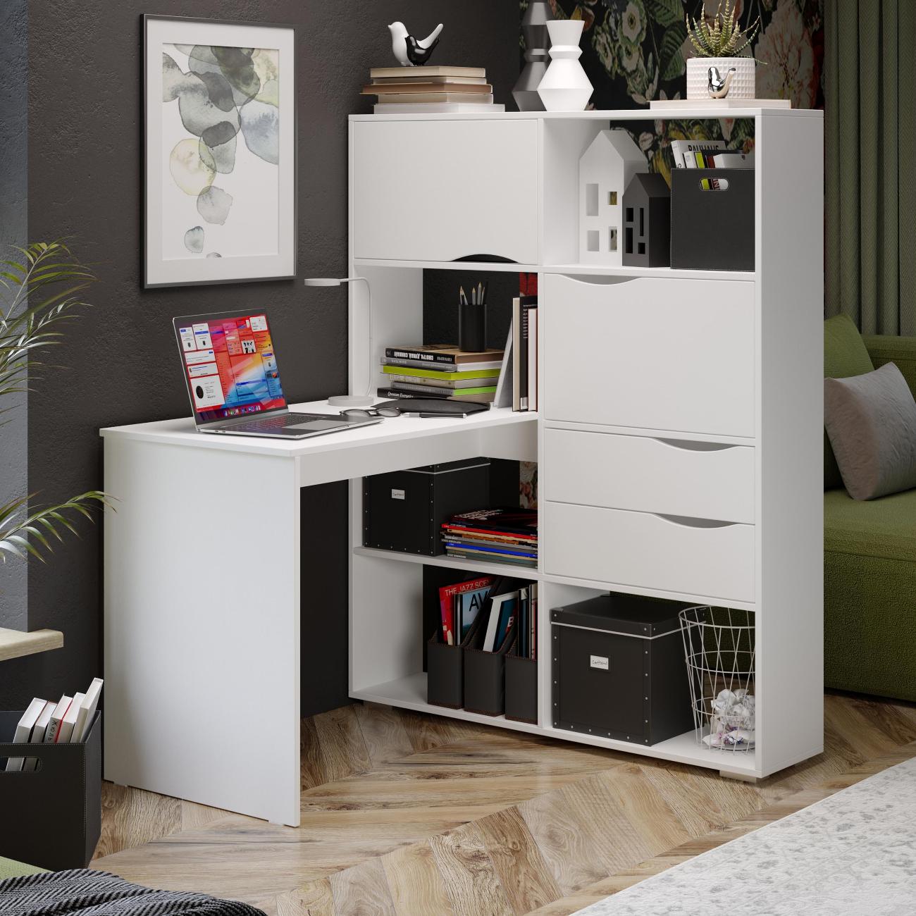 Угловой письменный стол тип 7 является основополагающей в организации рабочего пространства. Данная модель мебели идеально впишется в так в темные, так и в светлые тона интерьера, благодаря представленным расцветкам. Стол письменный тип 7 станет Вашим помощником в систематизации канцтоваров и других необходимых принадлежностей. Открытые полки обеспечивают хороший обзор и легкий доступ к книгам и учебникам, а за откидными фасадами можно скрыть наиболее важные предметы. Имеет достаточное дополнительное пространство для установки монитора и прочей рабочей канцелярии. Полки  позволят сохранить вам больше пространства и  визуальную эстетику минимализма,  а также организовать рабочее пространство.  Данная мебель обеспечивает удобство и комфорт при работе или учебе.  Для стола используются высококачественные ЛДСП и мебельная фурнитура, в комплекте имеются подробная инструкция по сборке, а так же весь необходимый крепеж.  Сборка легкая и не займет много времени. Поставляется в разобранном виде.