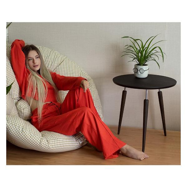 Круглая столешница и устойчивые деревянные ножки обеспечивают комфорт и безопасность в использовании, а компактные размеры позволяют легко разместить изделие даже в небольших пространствах, таких как балкон или прихожая. Размещайте столик в прикроватной или придиванной зоне спальни, в гостиной комнате у телевизора, в прихожей рядом с зеркалом или на кухне.