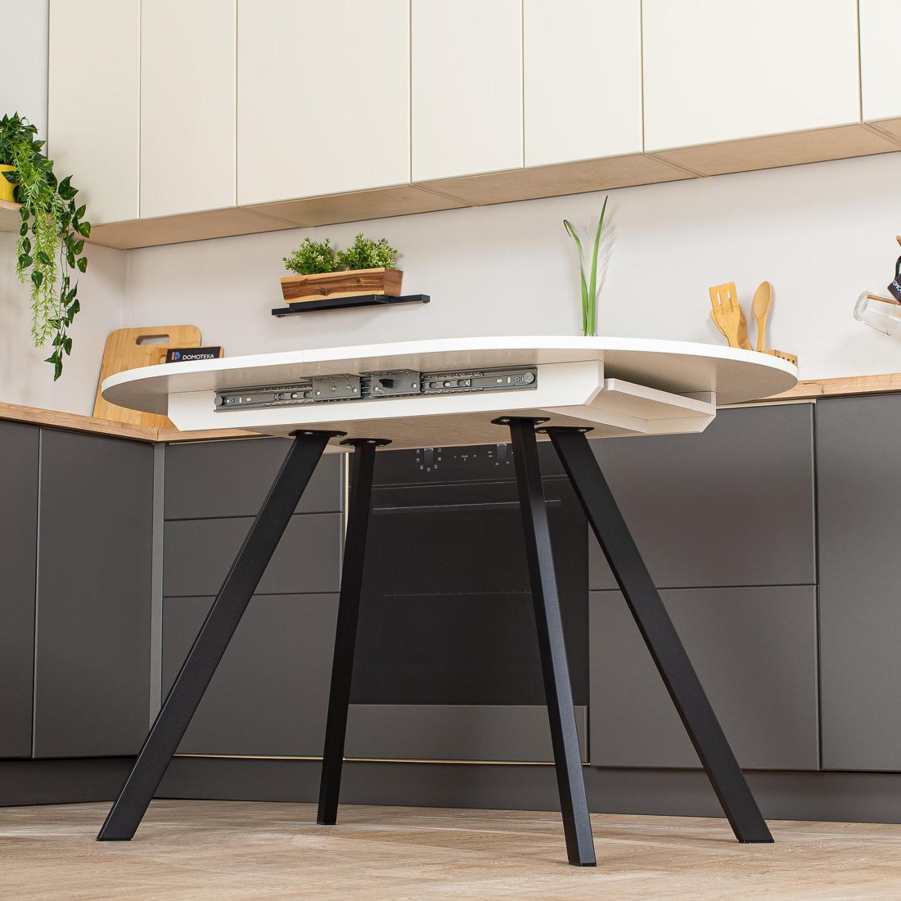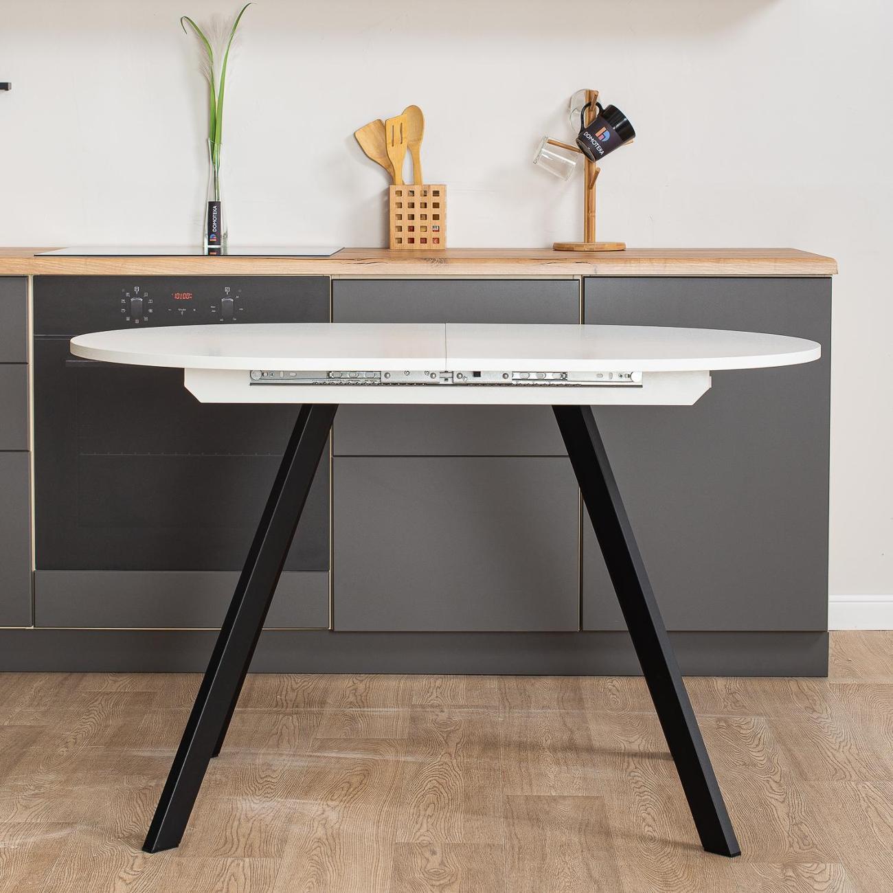 Превратите ваши обеды и ужины в настоящее событие с кухонным столом "Домотека Вальс О-1"! Этот стильный стол в форме овала станет настоящим украшением вашей кухни или столовой, идеально вписываясь в современные интерьеры в стиле лофт. С возможностью раздвижения, площадь 80х120 см может увеличиться до 157 см, предоставляя больше места для гостей и комфортного размещения блюд. Белоснежная столешница изготовлена из надежного ЛДСП, что обеспечивает не только великолепный внешний вид, но и устойчивость к повседневным воздействиям. С его помощью вы сможете ежедневно наслаждаться эстетикой и функциональностью. Особенностью стола является его раздвижная конструкция. Подходит как для небольших семейных ужинов, так и для дружеских встреч. Это идеальное решение для тех, кто ищет кухонный стол, который объединяет качество и элегантный дизайн. Стол изготовлен из качественных материалов, что гарантирует его долговечность и надежность. Благодаря этому, стол будет служить вам долгие годы, сохраняя свой первоначальный вид и функциональность. Имея высоту 75 см, он удобен для всех членов вашей семьи. Кухонный стол, который сможет преобразить ваше пространство, добавив ему уюта и современного шарма.