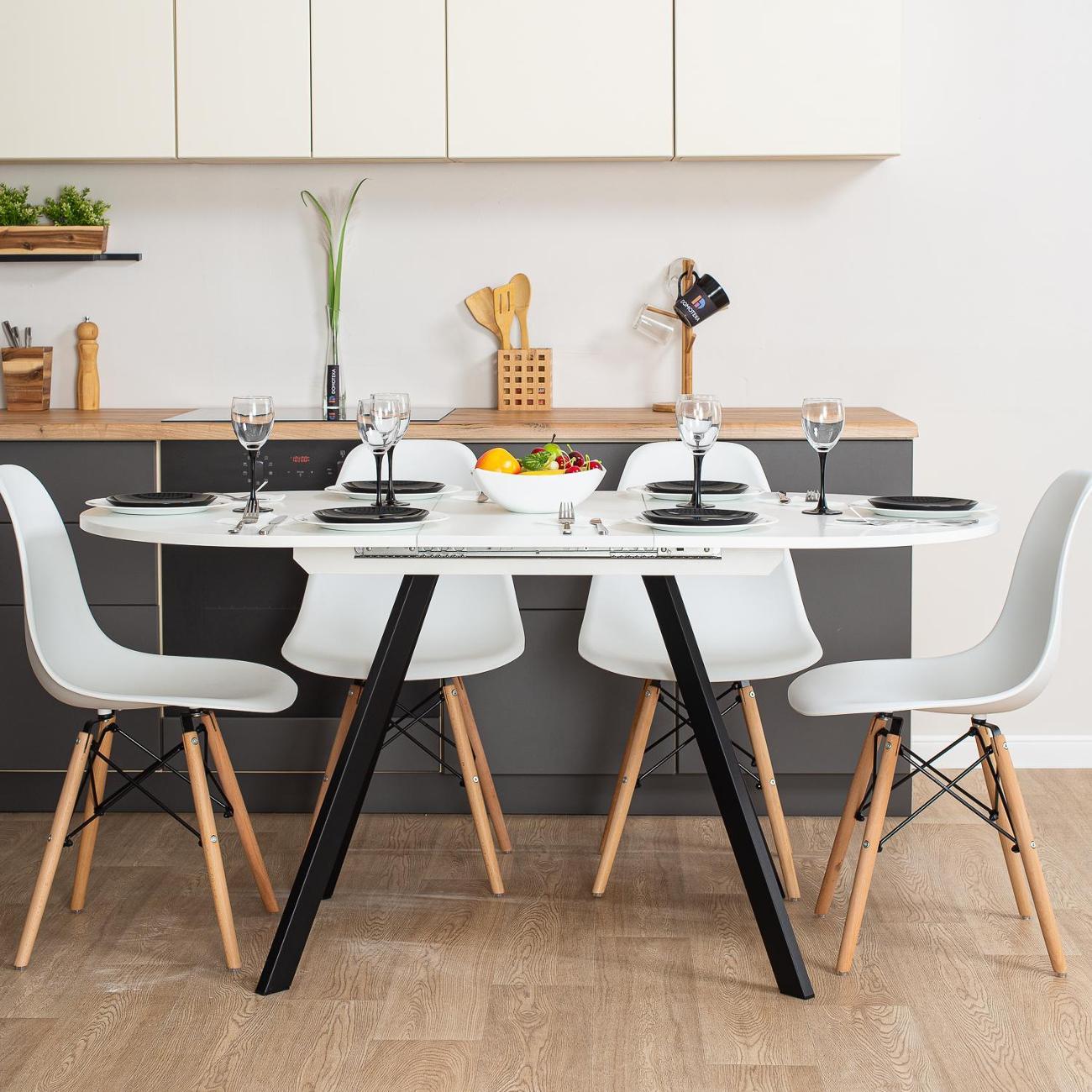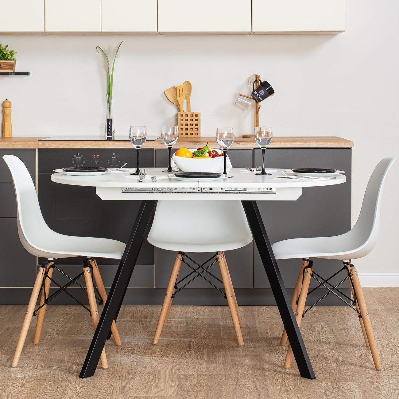 Превратите ваши обеды и ужины в настоящее событие с кухонным столом "Домотека Вальс О-1"! Этот стильный стол в форме овала станет настоящим украшением вашей кухни или столовой, идеально вписываясь в современные интерьеры в стиле лофт. С возможностью раздвижения, площадь 80х120 см может увеличиться до 157 см, предоставляя больше места для гостей и комфортного размещения блюд. Белоснежная столешница изготовлена из надежного ЛДСП, что обеспечивает не только великолепный внешний вид, но и устойчивость к повседневным воздействиям. С его помощью вы сможете ежедневно наслаждаться эстетикой и функциональностью. Особенностью стола является его раздвижная конструкция. Подходит как для небольших семейных ужинов, так и для дружеских встреч. Это идеальное решение для тех, кто ищет кухонный стол, который объединяет качество и элегантный дизайн. Стол изготовлен из качественных материалов, что гарантирует его долговечность и надежность. Благодаря этому, стол будет служить вам долгие годы, сохраняя свой первоначальный вид и функциональность. Имея высоту 75 см, он удобен для всех членов вашей семьи. Кухонный стол, который сможет преобразить ваше пространство, добавив ему уюта и современного шарма.