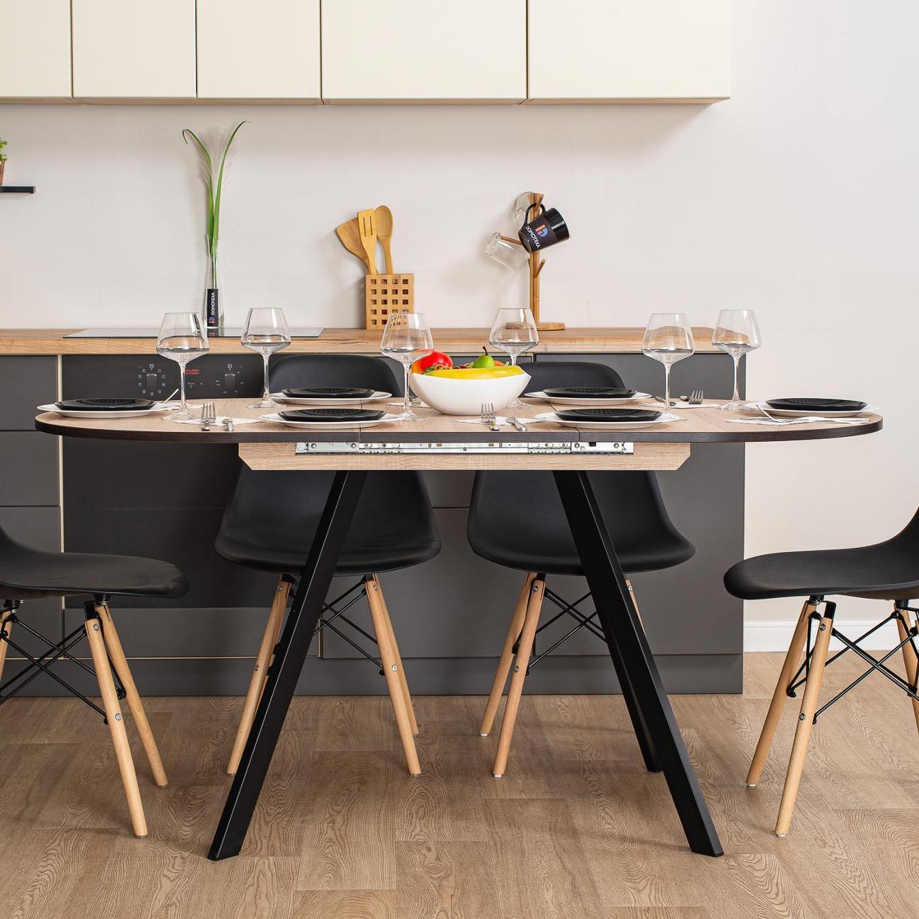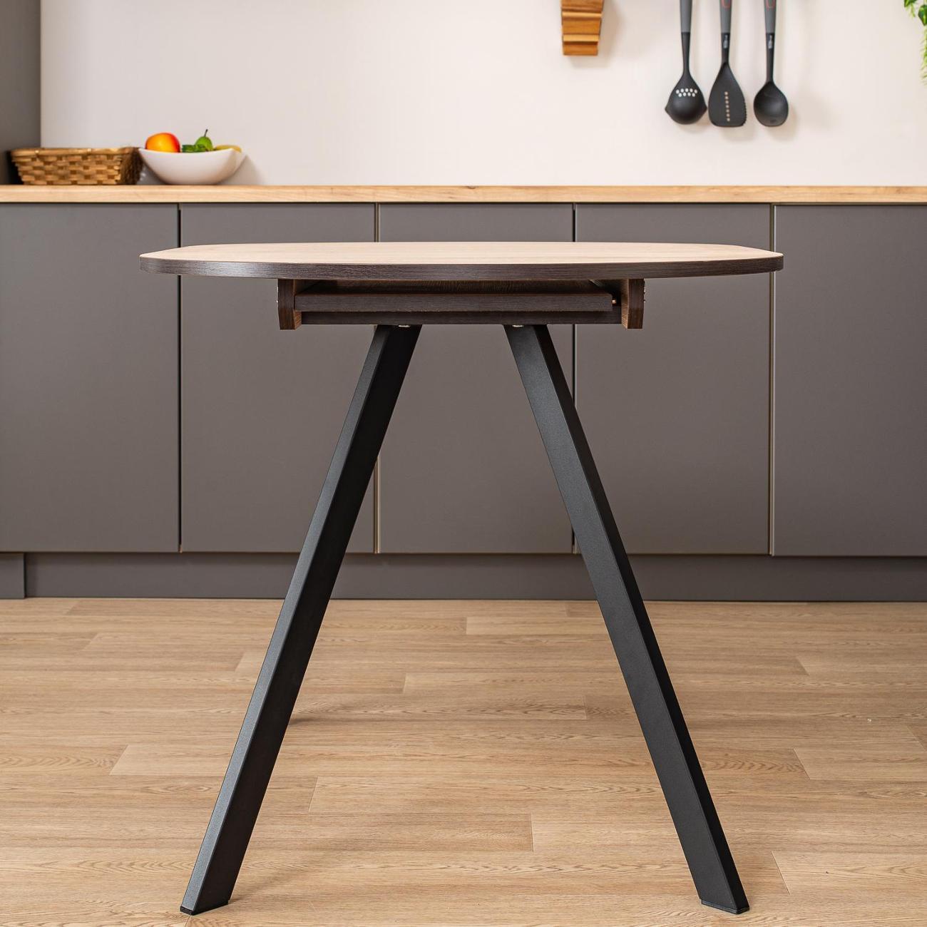 Превратите ваши обеды и ужины в настоящее событие с кухонным столом "Домотека Вальс О-1"! Этот стильный стол в форме овала станет настоящим украшением вашей кухни или столовой, идеально вписываясь в современные интерьеры в стиле лофт. С возможностью раздвижения, площадь 80х120 см может увеличиться до 157 см, предоставляя больше места для гостей и комфортного размещения блюд. Белоснежная столешница изготовлена из надежного ЛДСП, что обеспечивает не только великолепный внешний вид, но и устойчивость к повседневным воздействиям. С его помощью вы сможете ежедневно наслаждаться эстетикой и функциональностью. Особенностью стола является его раздвижная конструкция. Подходит как для небольших семейных ужинов, так и для дружеских встреч. Это идеальное решение для тех, кто ищет кухонный стол, который объединяет качество и элегантный дизайн. Стол изготовлен из качественных материалов, что гарантирует его долговечность и надежность. Благодаря этому, стол будет служить вам долгие годы, сохраняя свой первоначальный вид и функциональность. Имея высоту 75 см, он удобен для всех членов вашей семьи. Кухонный стол, который сможет преобразить ваше пространство, добавив ему уюта и современного шарма.