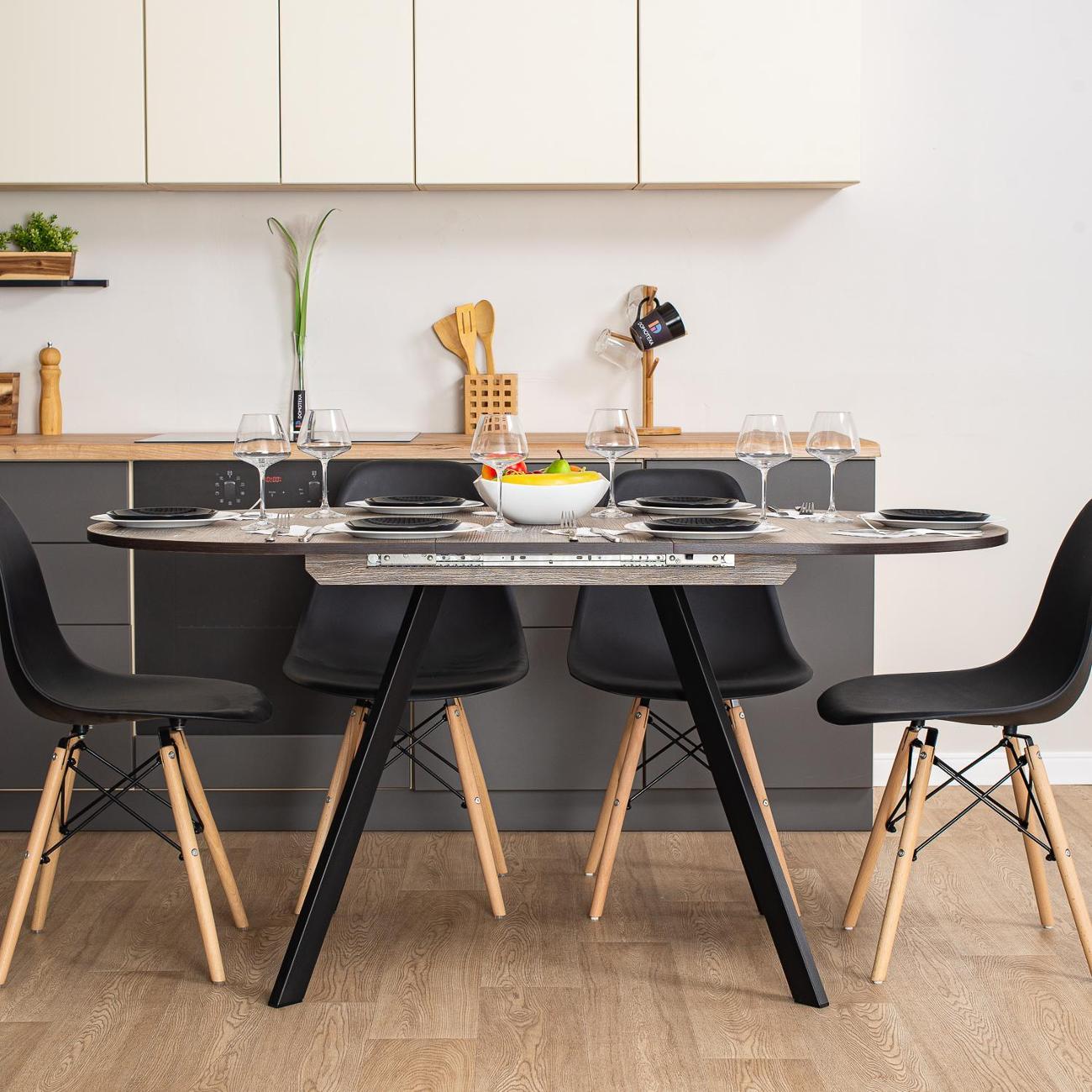 Превратите ваши обеды и ужины в настоящее событие с кухонным столом "Домотека Вальс О-1"! Этот стильный стол в форме овала станет настоящим украшением вашей кухни или столовой, идеально вписываясь в современные интерьеры в стиле лофт. С возможностью раздвижения, площадь 80х120 см может увеличиться до 157 см, предоставляя больше места для гостей и комфортного размещения блюд. Белоснежная столешница изготовлена из надежного ЛДСП, что обеспечивает не только великолепный внешний вид, но и устойчивость к повседневным воздействиям. С его помощью вы сможете ежедневно наслаждаться эстетикой и функциональностью. Особенностью стола является его раздвижная конструкция. Подходит как для небольших семейных ужинов, так и для дружеских встреч. Это идеальное решение для тех, кто ищет кухонный стол, который объединяет качество и элегантный дизайн. Стол изготовлен из качественных материалов, что гарантирует его долговечность и надежность. Благодаря этому, стол будет служить вам долгие годы, сохраняя свой первоначальный вид и функциональность. Имея высоту 75 см, он удобен для всех членов вашей семьи. Кухонный стол, который сможет преобразить ваше пространство, добавив ему уюта и современного шарма.