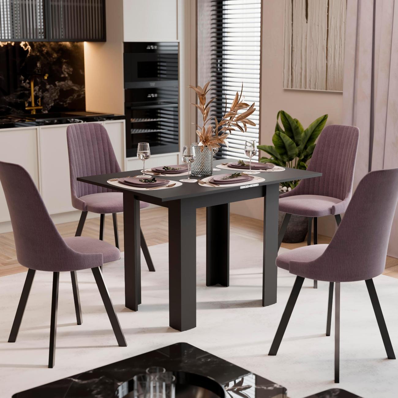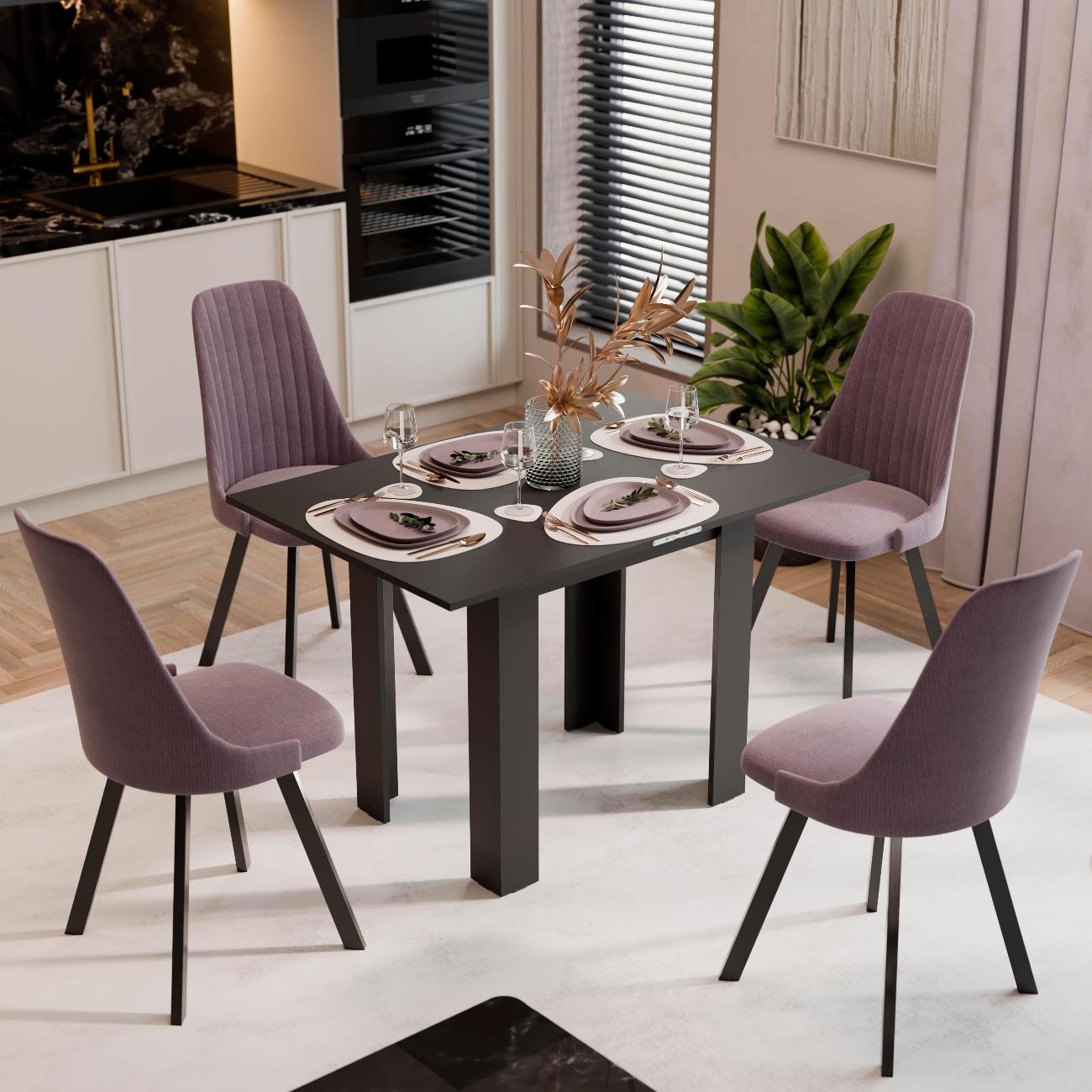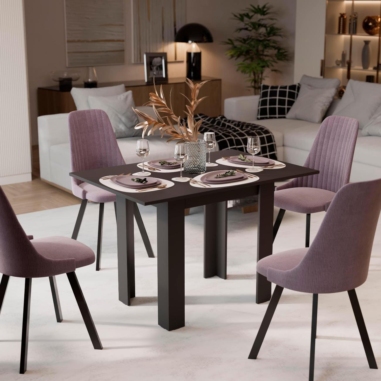 Красивый стильный стол для кухни. Вписался в интерьер идеально так как по цвету хорошо гармонирует с остальной мебелью. Удобно что можно его сложить для повседневки. И раскладывать когда приходят гости
