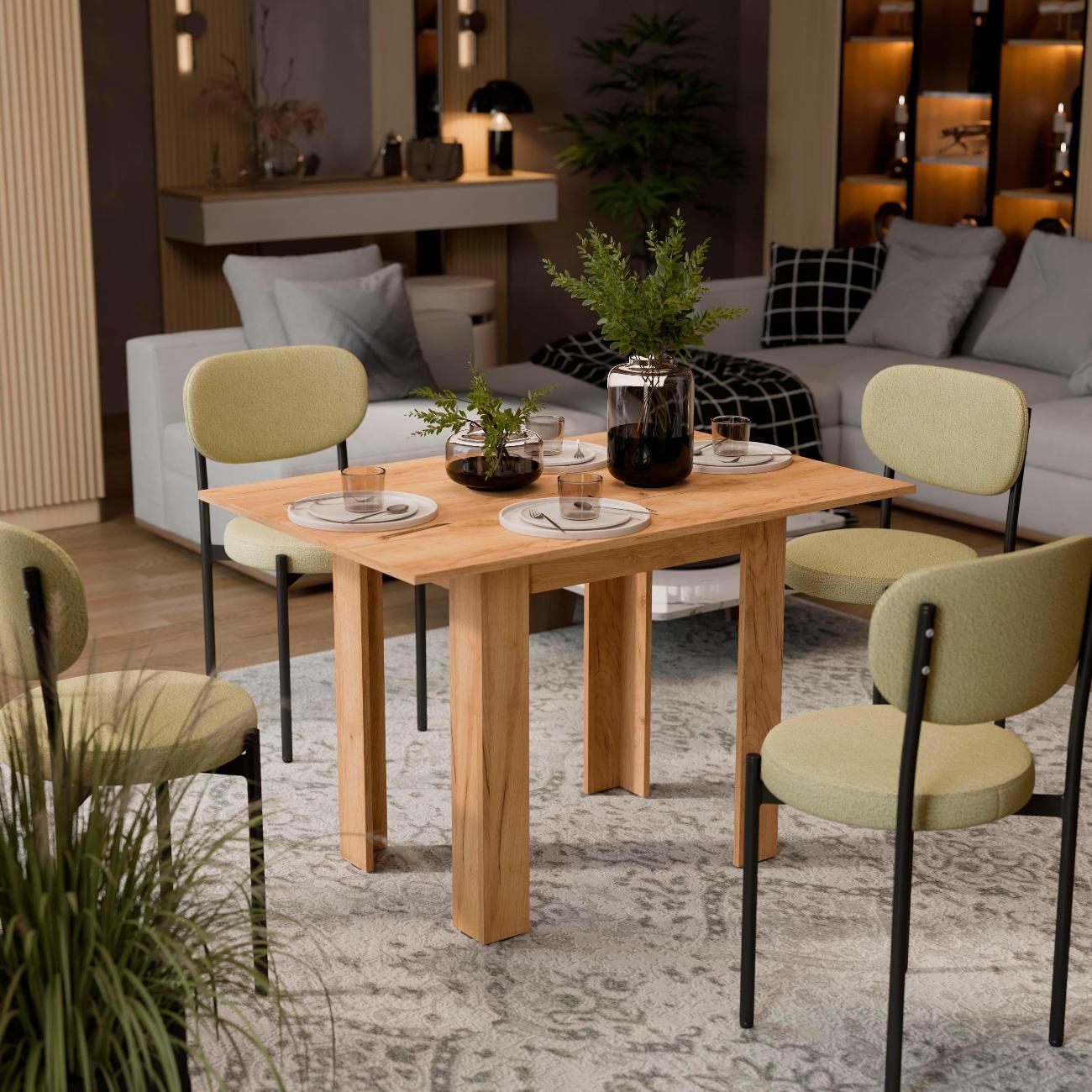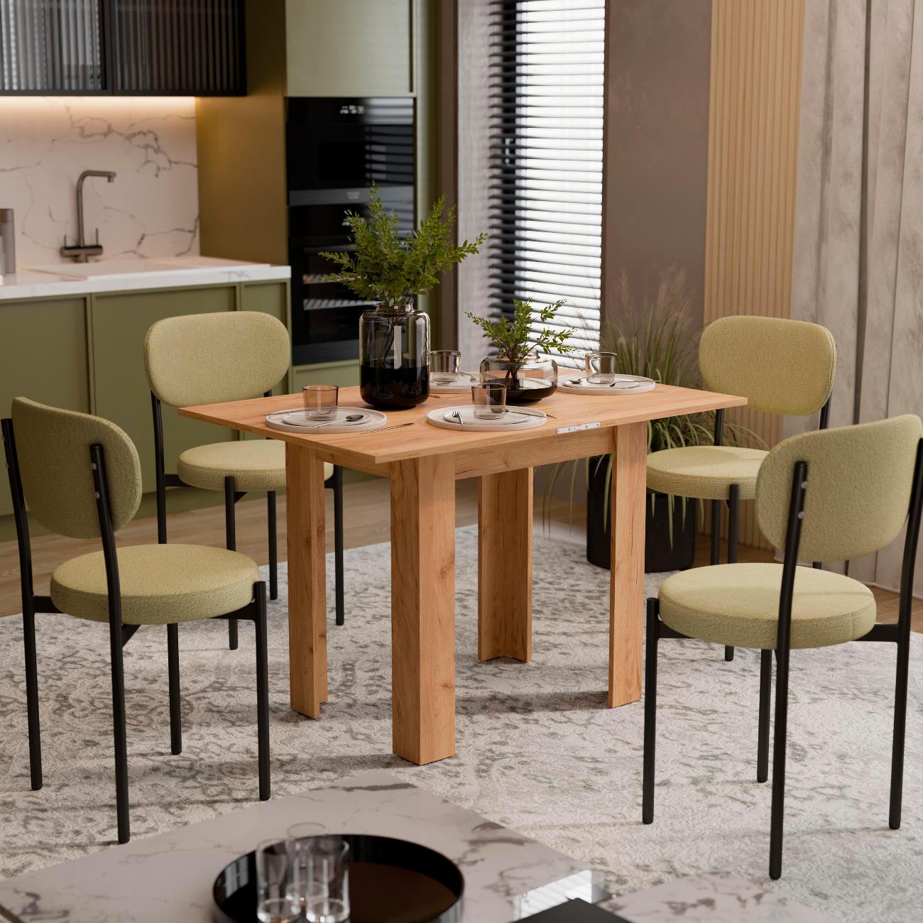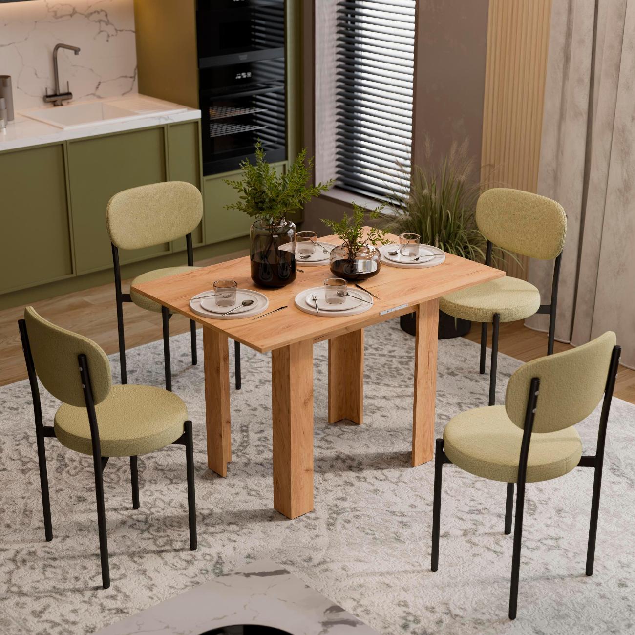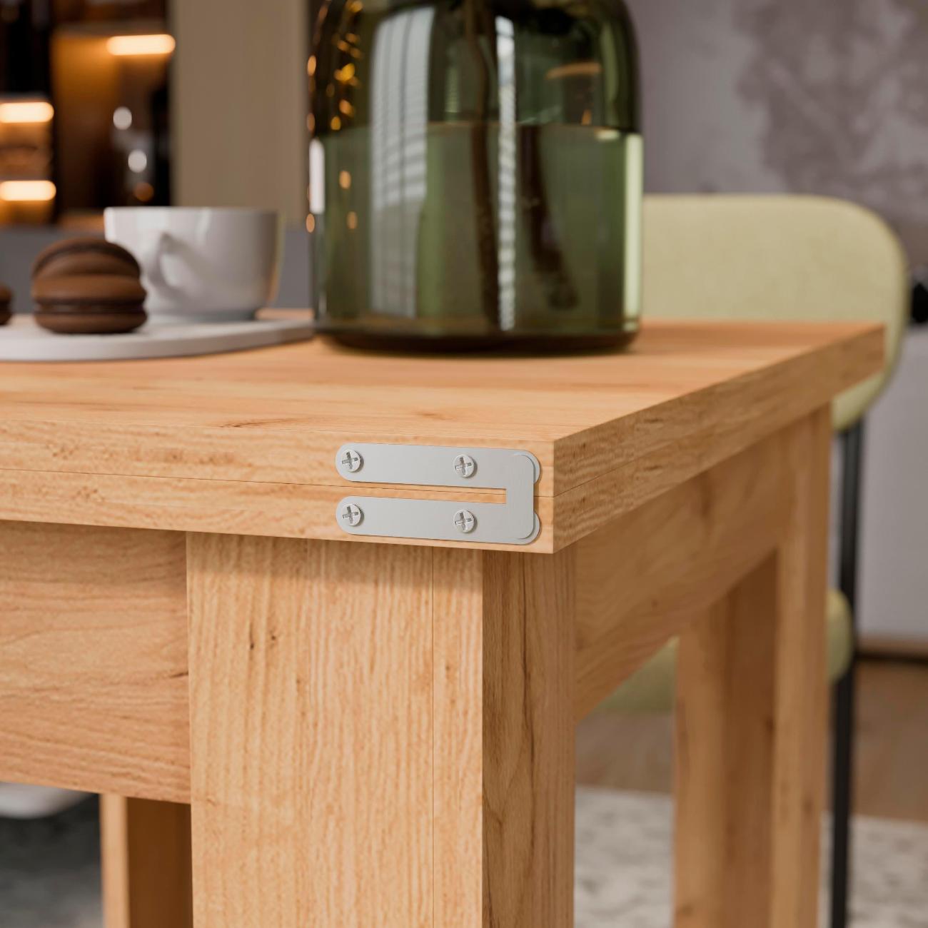 Взяли уже второй такой стол. Первый брали маме в ее кухню. Она его нахваливала нам постоянно. После ремонта и себе купили. Удобный и красивый по цвету. Раскладывается в два раза больше становится. Вся семья за ним усаживается запросто