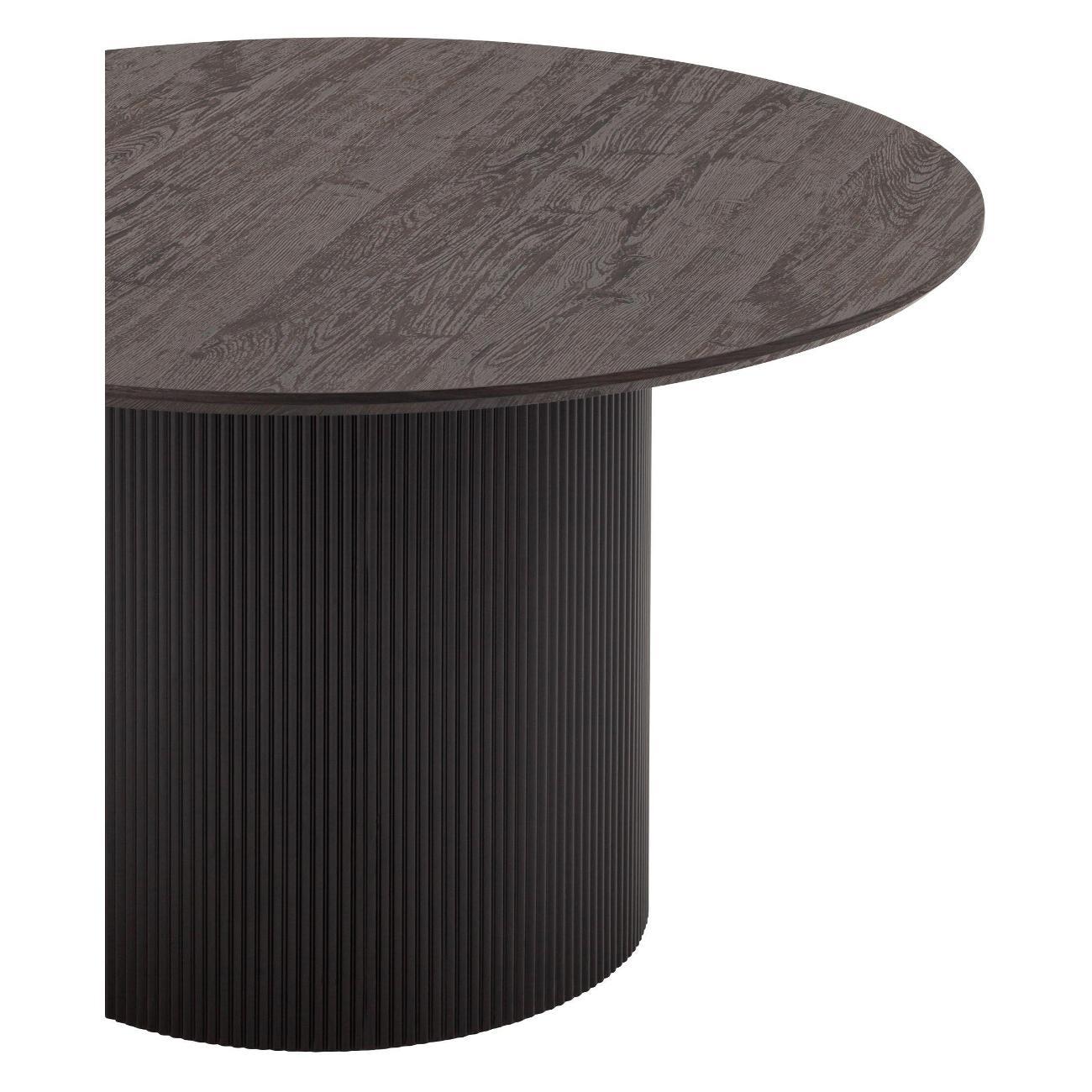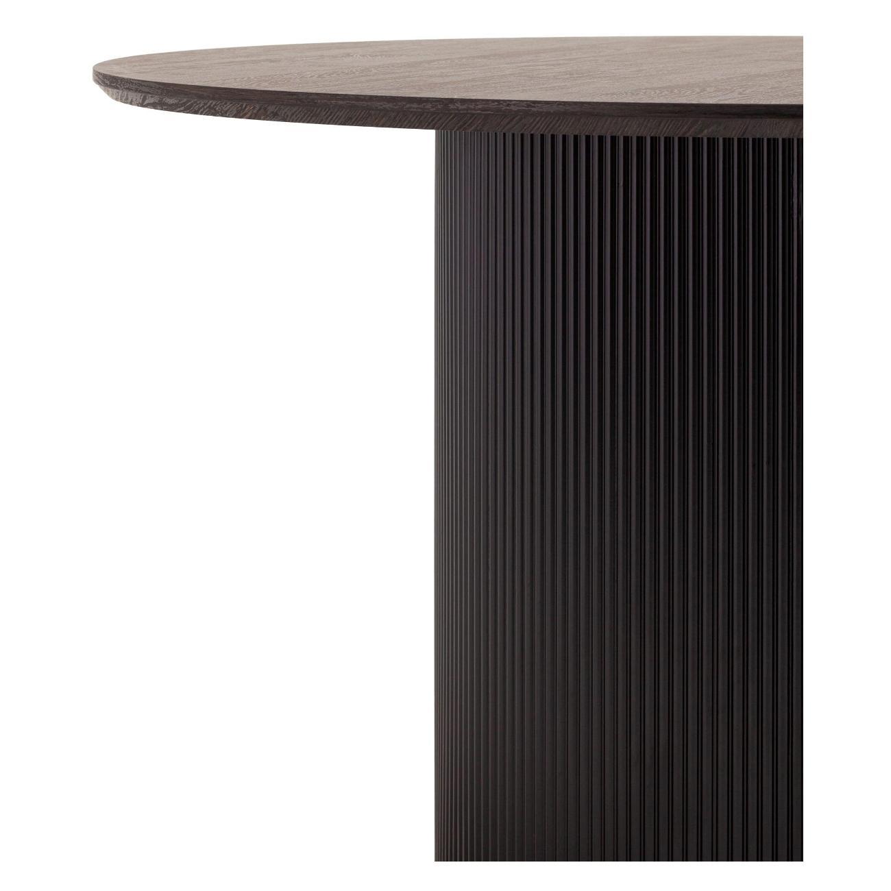 Столешница выполнена из прочного и долговечного МДФ. Светлая поверхность столешницы гармонично сочетается с массивной основой серого цвета. Простая круглая форма стола позволит легко вписать его в современный интерьер, стол украсит кухню, гостиную или современное кафе, ресторан. Опорное плиссированное основание стола в лаконичном дизайне надёжно удерживает всю конструкцию и дополняет монолитный образ.