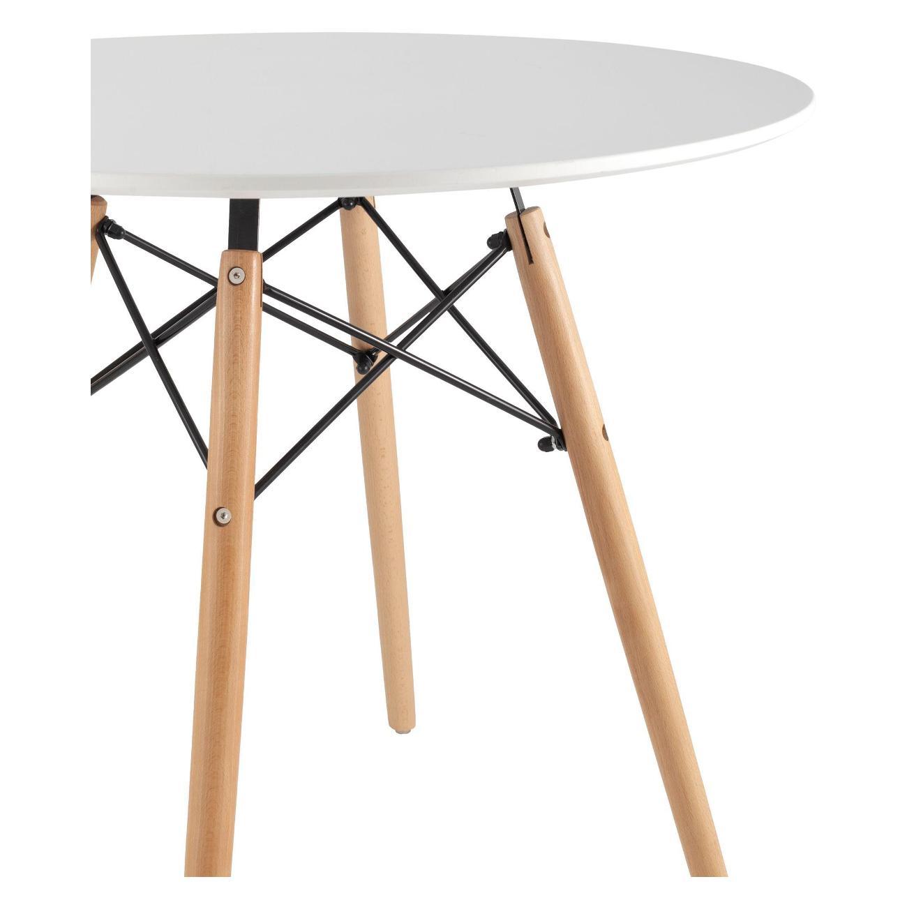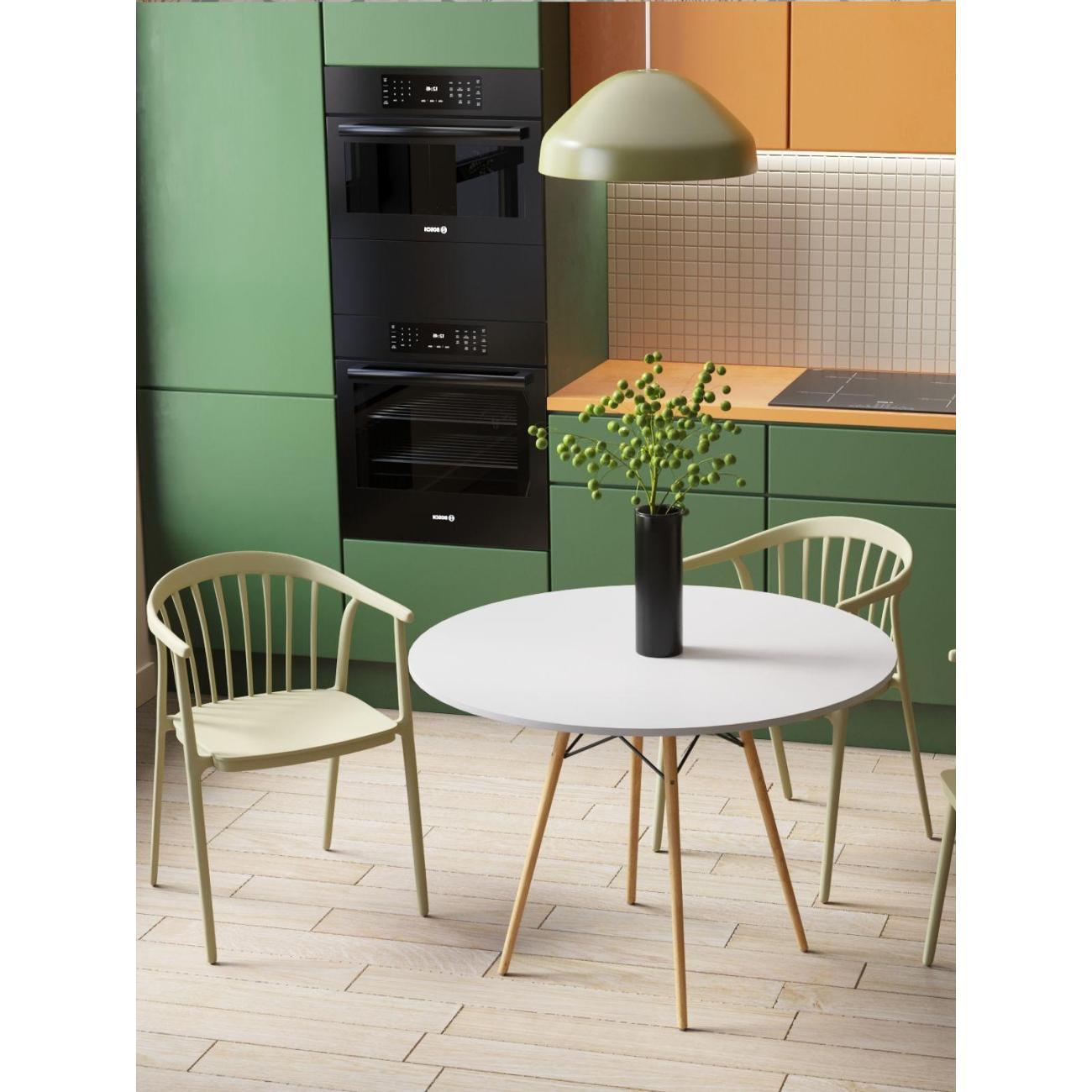 Этот красивый и функциональный элемент интерьера отличается продуманной конструкцией на деревянных ножках, обеспечивающих надежную опору и устойчивость. Благодаря круглой форме, стол удобно размещается в узких пространствах, не загромождая комнату и позволяя использовать ее максимально эффективно. Мебель с простой, но элегантной формой отлично подойдет для кухни-гостиной или гостиной, создавая атмосферу уюта и комфорта для семьи и гостей.