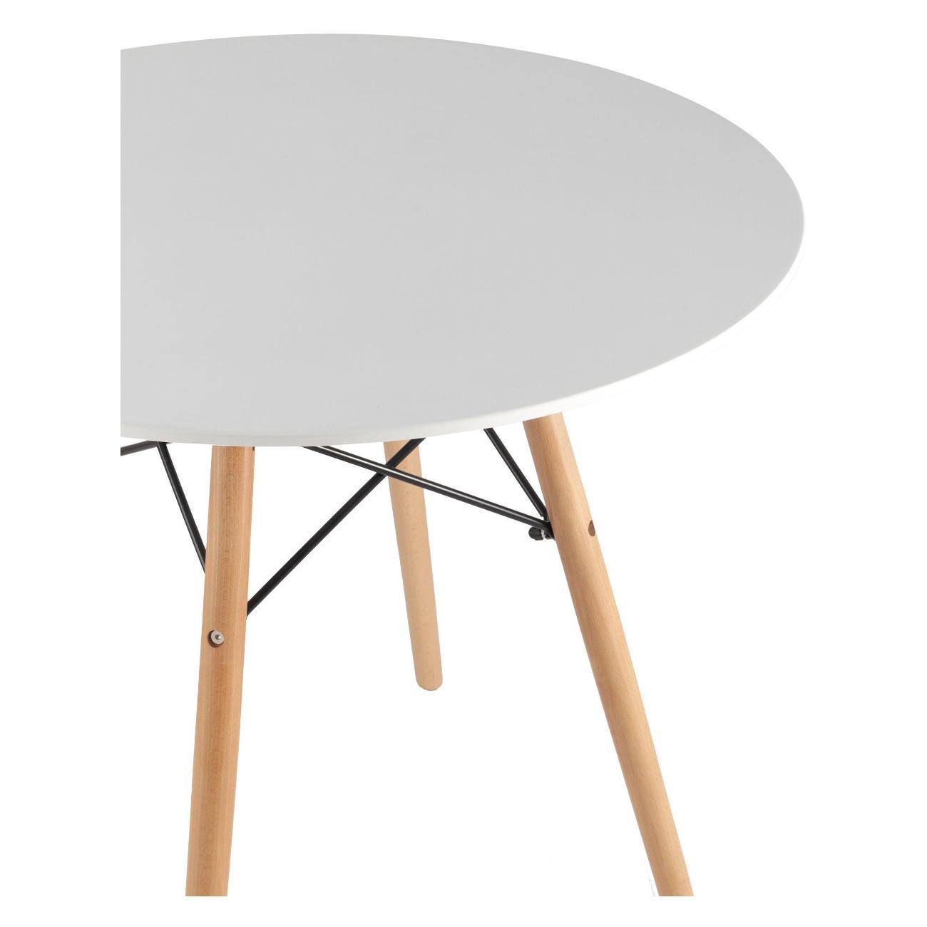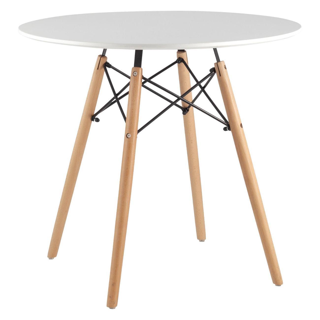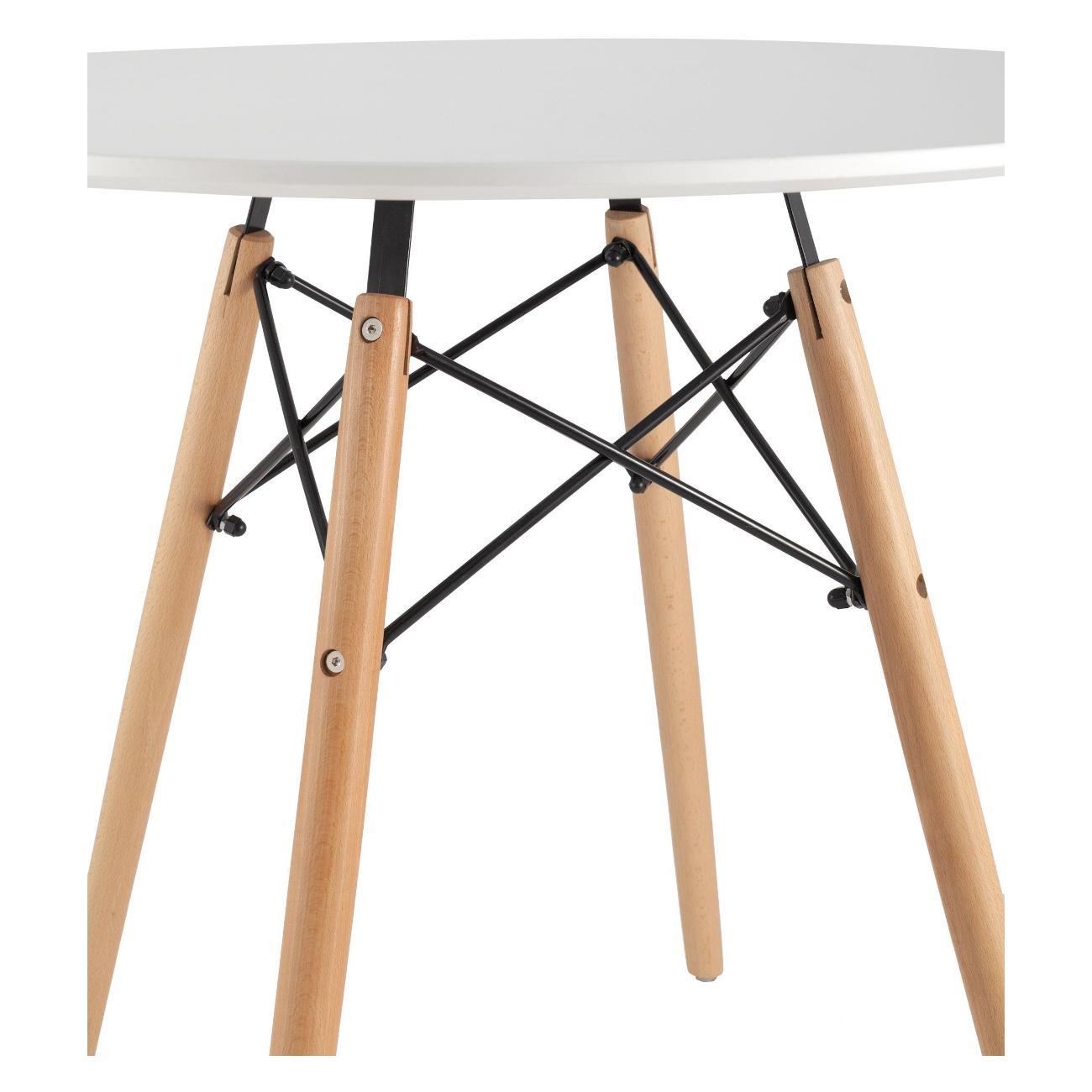 Круглый небольшой стол с белой столешницей идеально впишется в интерьер кухни, гостиной или студии, создавая уютную и эстетичную зону для приготовления и принятия пищи. Универсальный дизайн в скандинавском стиле, выполненный из мдф и дерева, подчеркнет природную красоту и тепло материала, добавляя комнате легкости и простоты. Такая мебель станет стильным акцентом в небольшом помещении, а также подходит для дачи, балкона или зоны кафе.