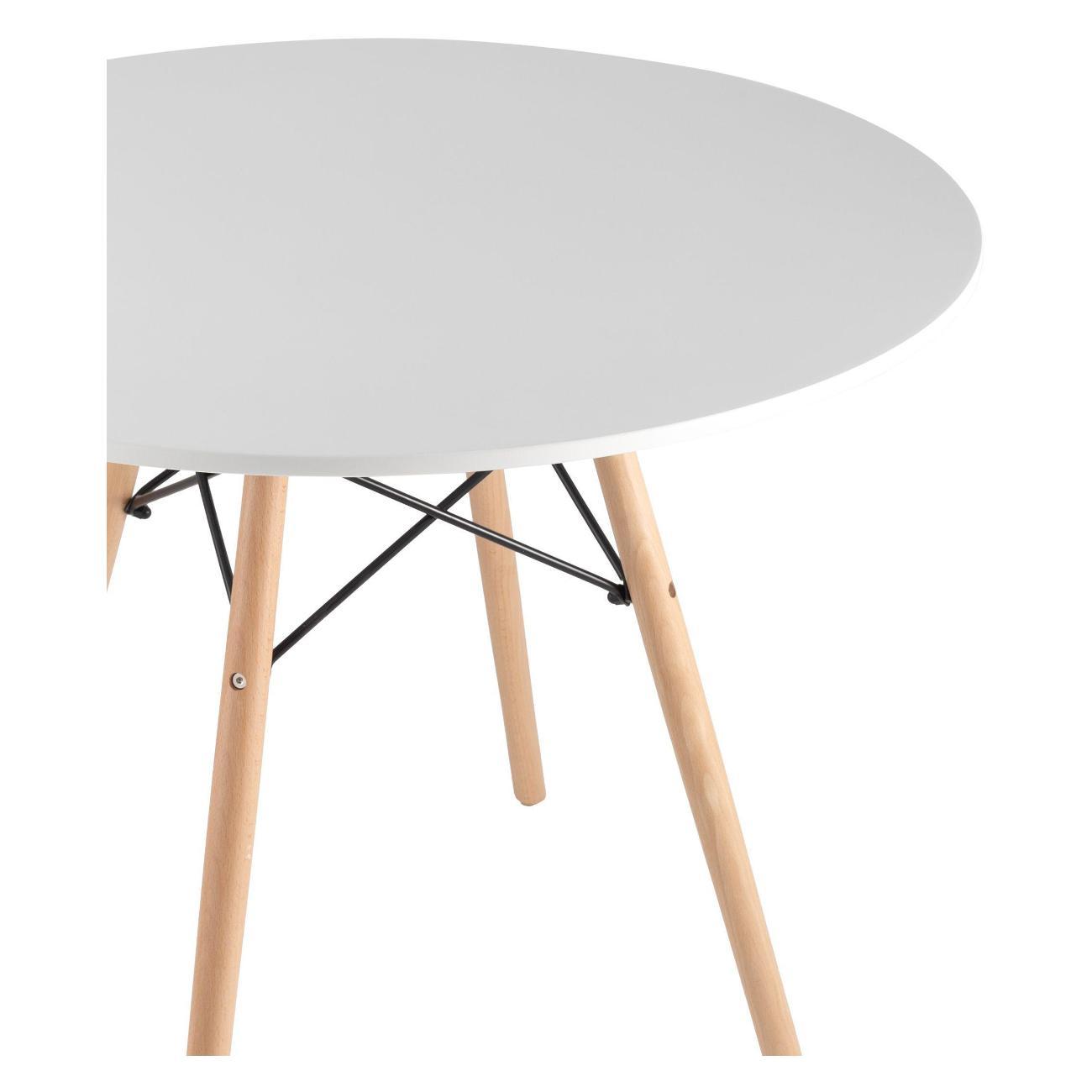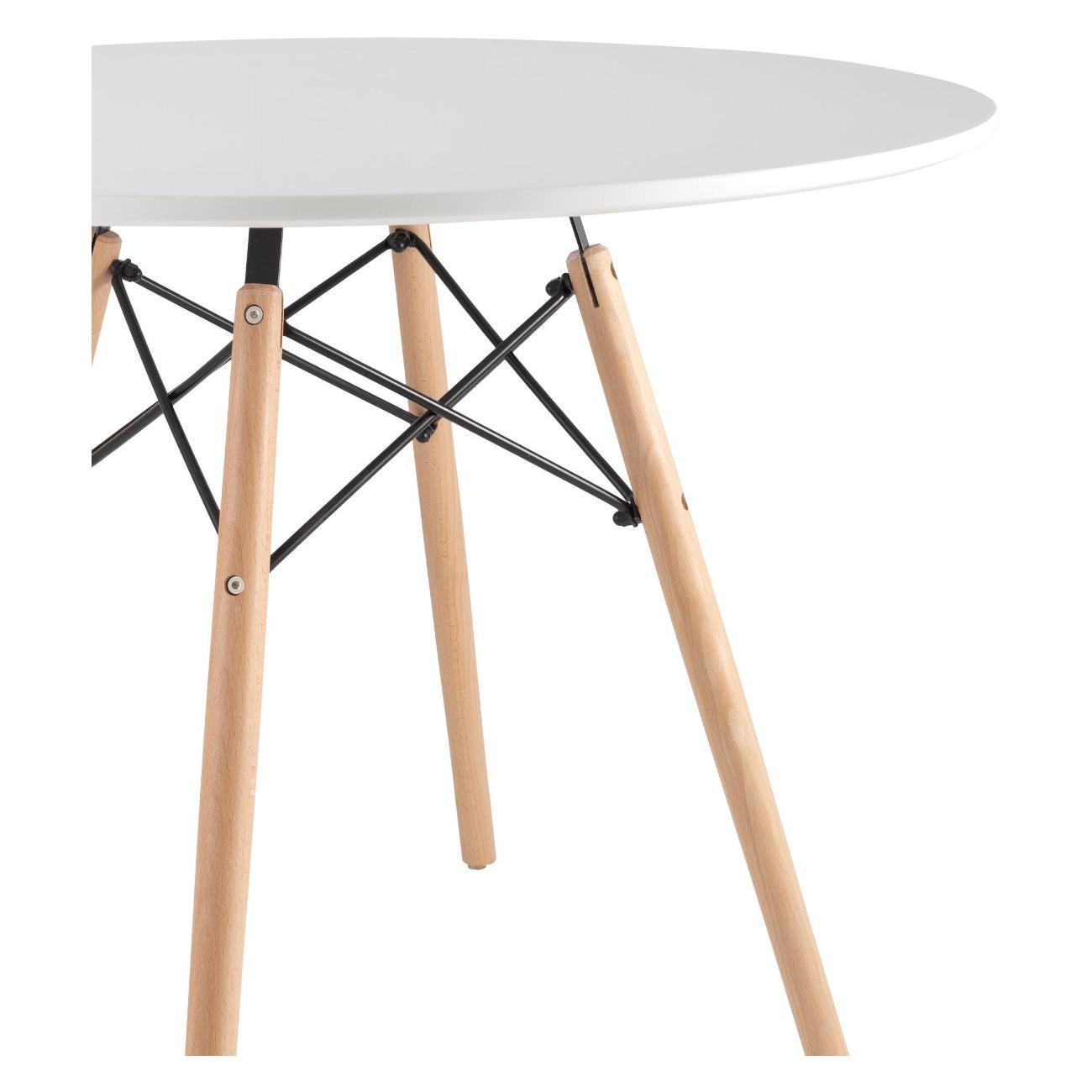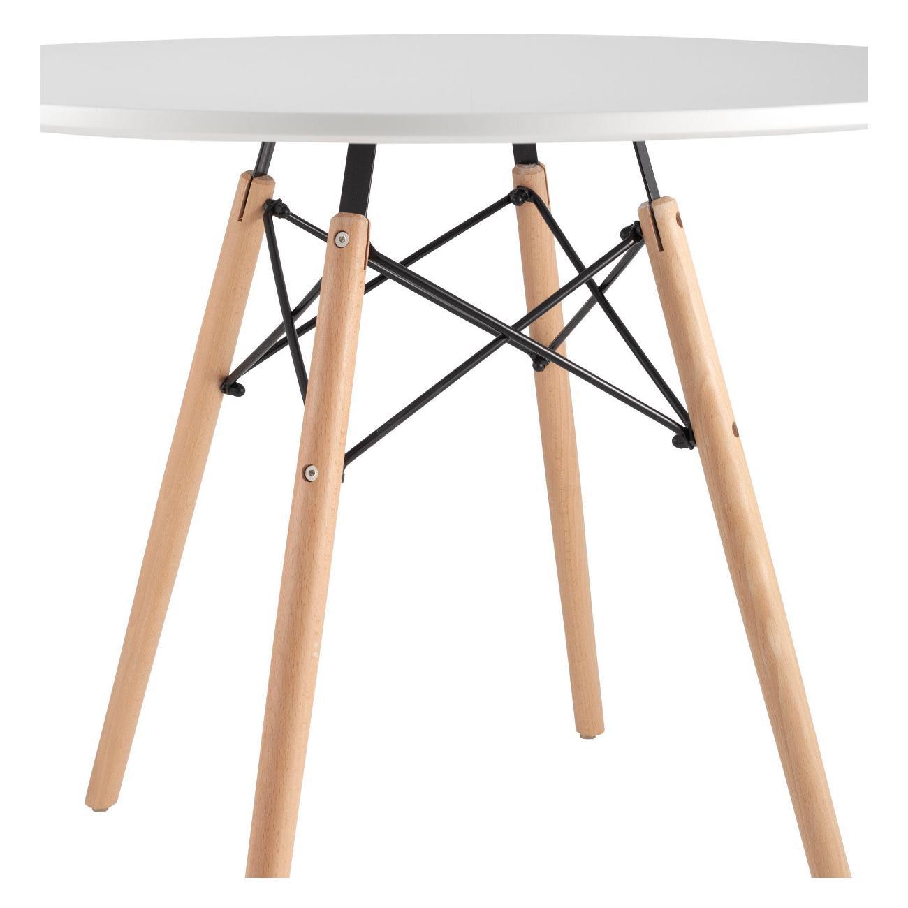 Круглый стол кухонный диаметром 90 см с ножками из дерева — это идеальное решение для вашей кухни или гостиной. Этот стол, выполненный в стиле минимализм, станет отличным дополнением к современному интерьеру. Он прекрасно вписывается в обстановку стиля модерн, лофт и хай-тек благодаря своему лаконичному дизайну и функциональности. Столешница изготовлена из практичного МДФ, что обеспечивает долговечность и устойчивость к внешним воздействиям. Ножки стола выполнены из массива бука, придавая изделию прочность и стабильность. Такое сочетание материалов делает этот кухонный стол не только стильным элементом мебели для кухни или гостиной, но и надежным помощником в повседневной жизни. Обеденный стол имеет удобную высоту 74,5 см, что позволяет комфортно разместиться за ним во время трапезы или приема гостей. Вес изделия составляет всего 10 кг, что облегчает его перемещение по комнате при необходимости. Этот круглый деревянный стол идеально подходит как для семейных обедов на кухне, так и для уютных вечеров в гостиной с друзьями. Его универсальный дизайн позволяет использовать его как часть мебели в различных интерьерах — от классических до современных решений. Благодаря своей компактности он не займет много места даже в небольшой комнате. Столешница круглой формы способствует созданию дружеской атмосферы за общим ужином или чашкой чая с близкими людьми.