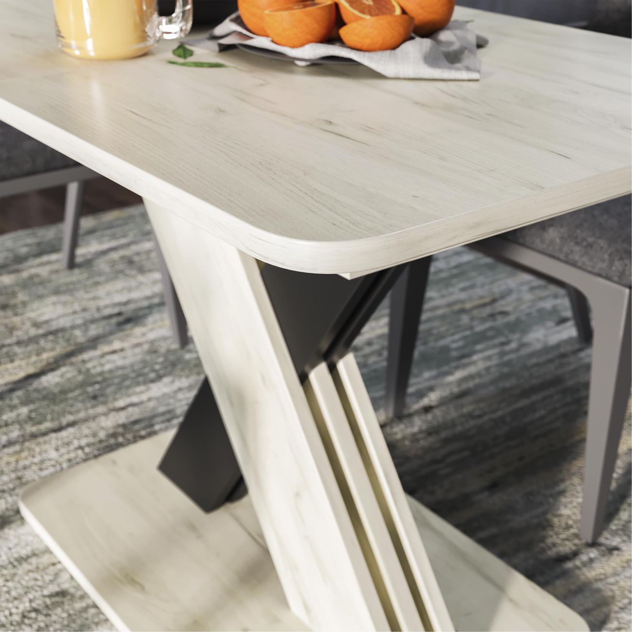 Стильный и функциональный обеденный стол ТриЯ "Сохо" станет отличным дополнением к вашему кухонному интерьеру. Изготовленный из высококачественного ЛДСП, он сочетает в себе прочность и долговечность. Раздвижная конструкция стола позволяет легко регулировать его размер в зависимости от количества гостей. Прямоугольная форма стола обеспечивает оптимальное использование пространства на кухне, а его размеры (длина 110 см, ширина 70 см, высота 75,7 см) позволяют разместить за ним достаточное количество людей. Столешница выполнена из того же материала, что и основание, что обеспечивает прочность и долговечность конструкции. Цвет столешницы – дуб крафт белый/серый, что позволяет гармонично вписать стол в любой современный интерьер. Выбирая обеденный стол ТриЯ, вы получаете стильный и функциональный предмет мебели, который прослужит вам долгие годы и станет настоящим украшением вашей кухни.
