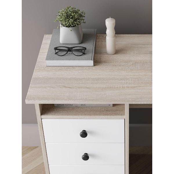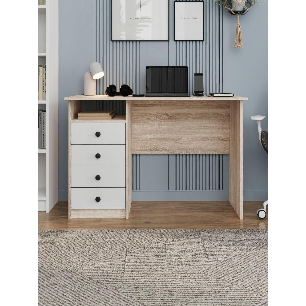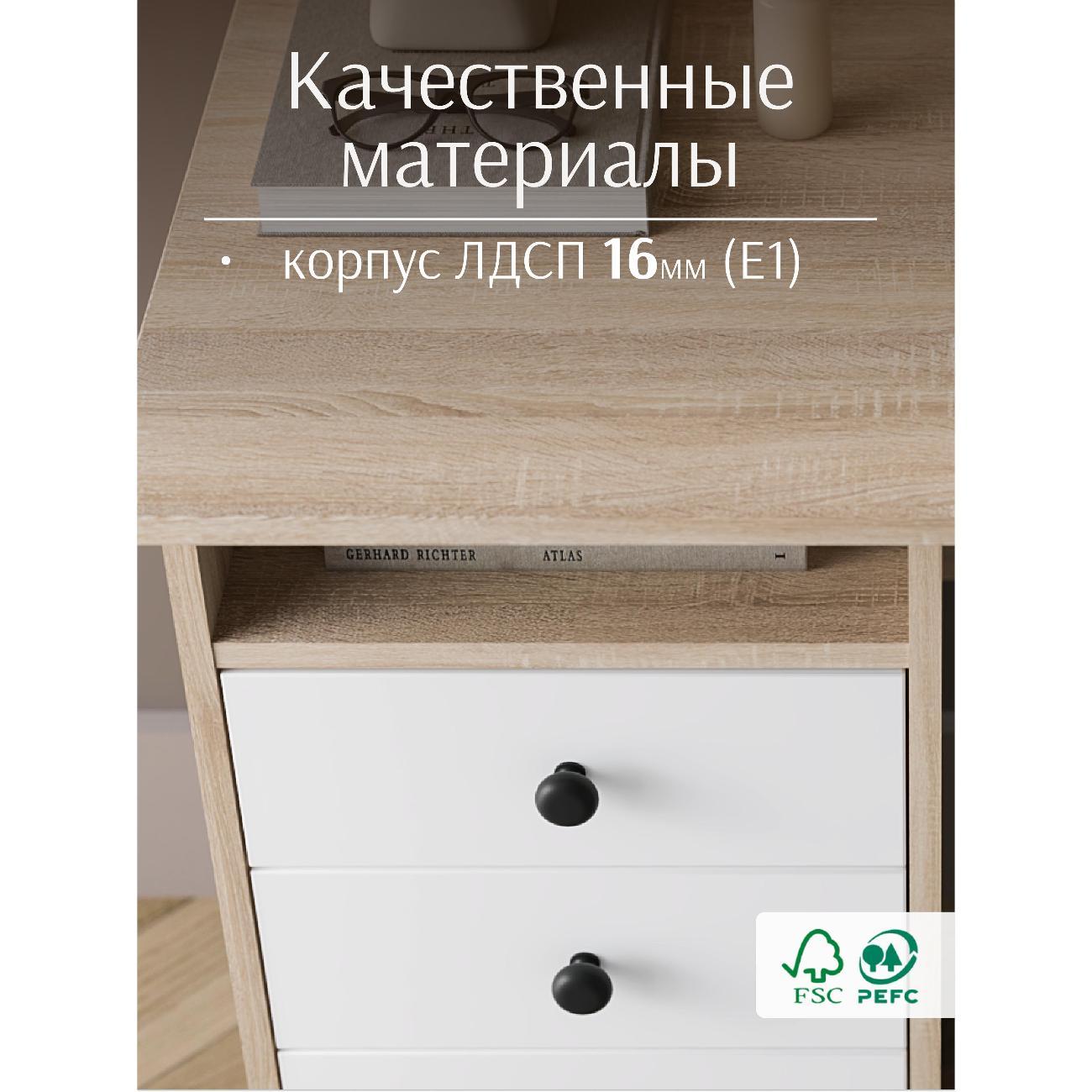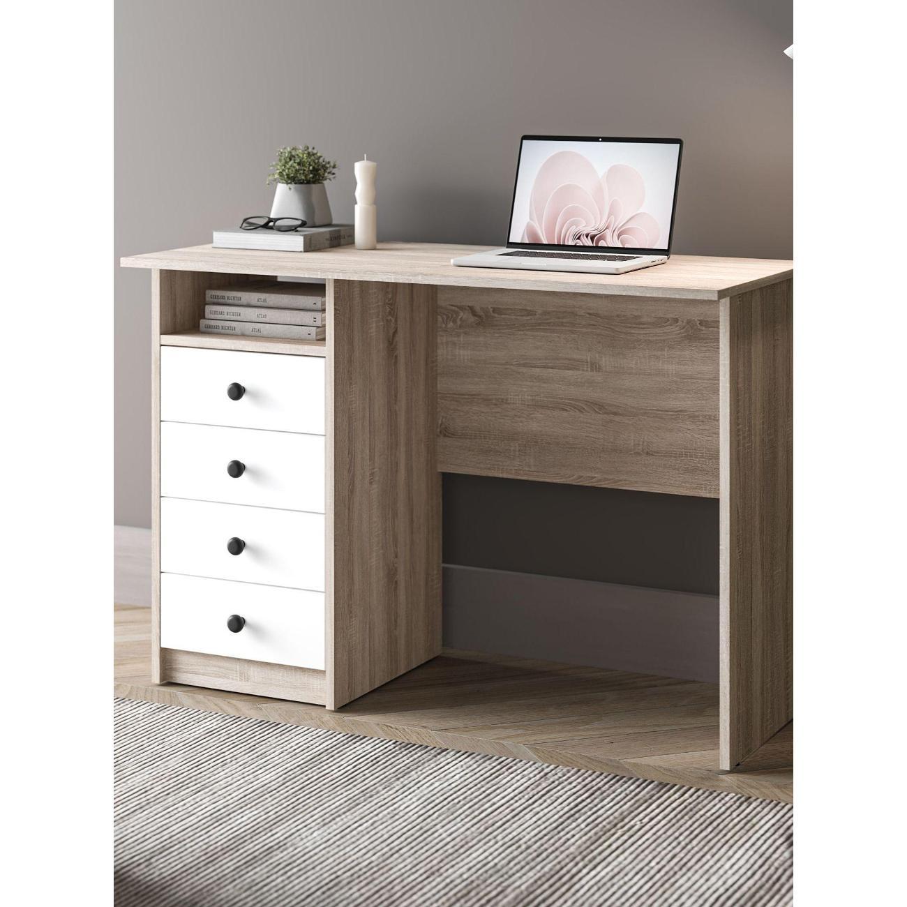 Сочетанием белого цвета и текстуры дерева делает компьютерный стол универсальным для любого интерьера. Компактные размеры позволяют разместить письменный стол даже в небольшом помещении.