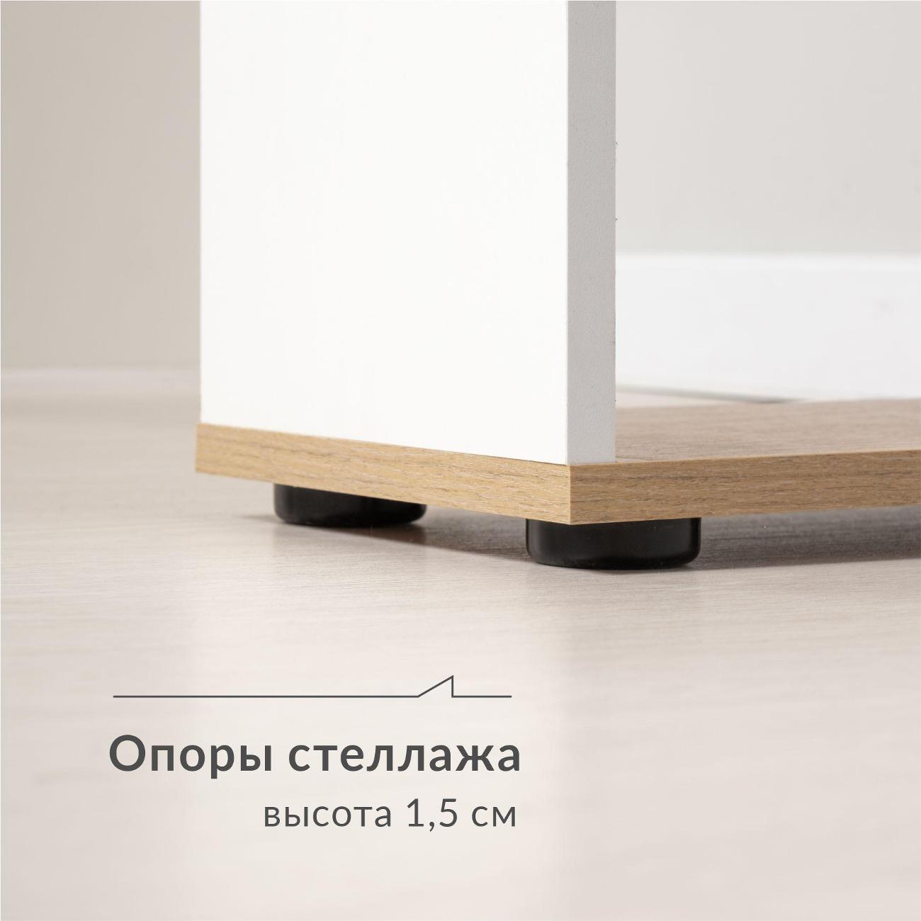 Устойчивость и гибкость конфигурации - регулируемые опоры обеспечивают устойчивость на неровном полу. Зеркальная сборка позволяет расположить полки с удобной стороны.