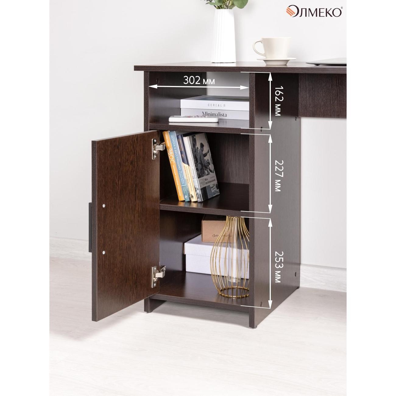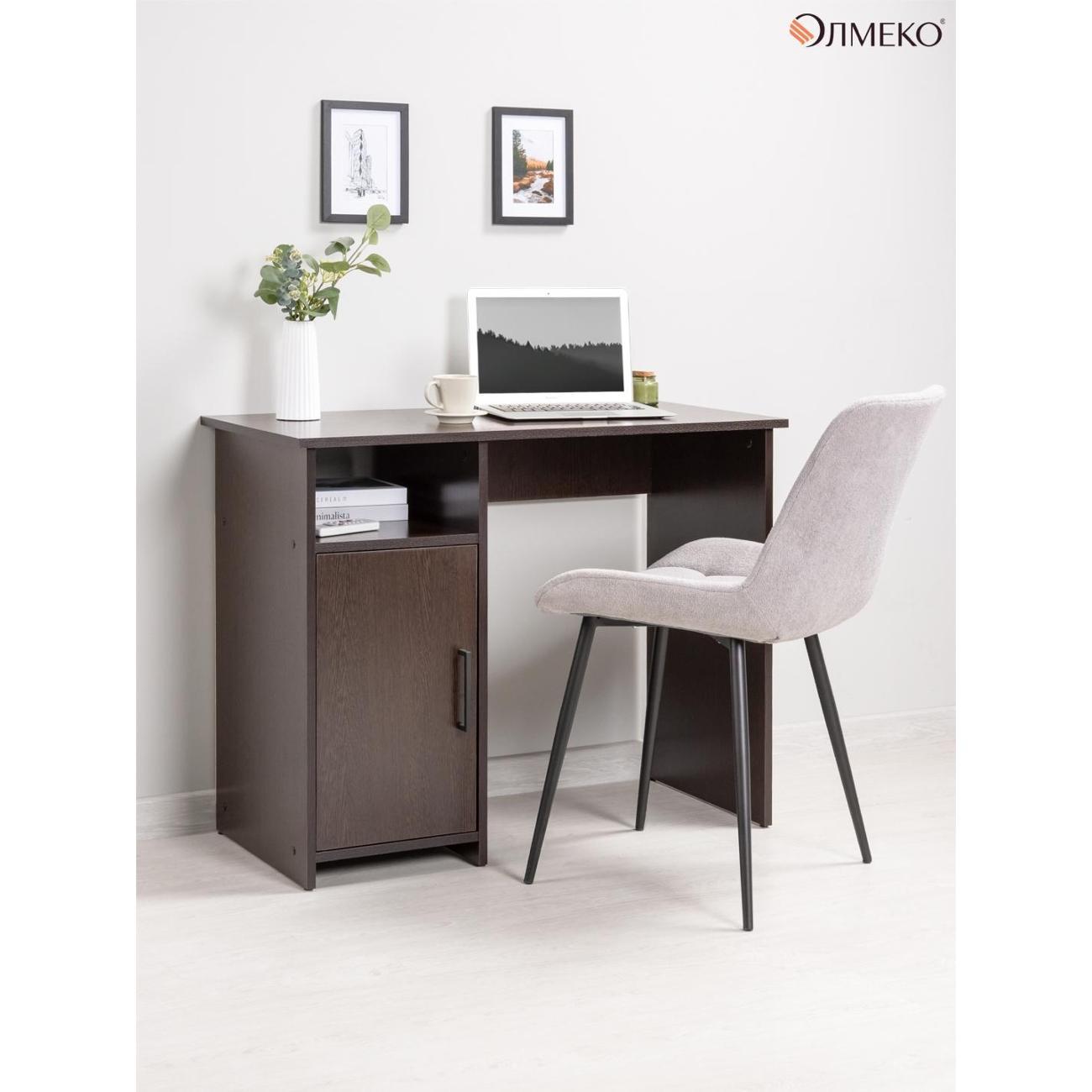 Темный цвет венге делает стол визуально прочным и основательным и хорошо подходит для светлых комнат, детской или квартиры-студии. Такой стол можно использовать как компьютерный стол для дома, письменный стол для школьника и студента, а также как рабочее место для домашнего офиса. Конструкция из ЛДСП практична в уходе и рассчитана на повседневную нагрузку, а лаконичный дизайн легко сочетается с современным интерьером.