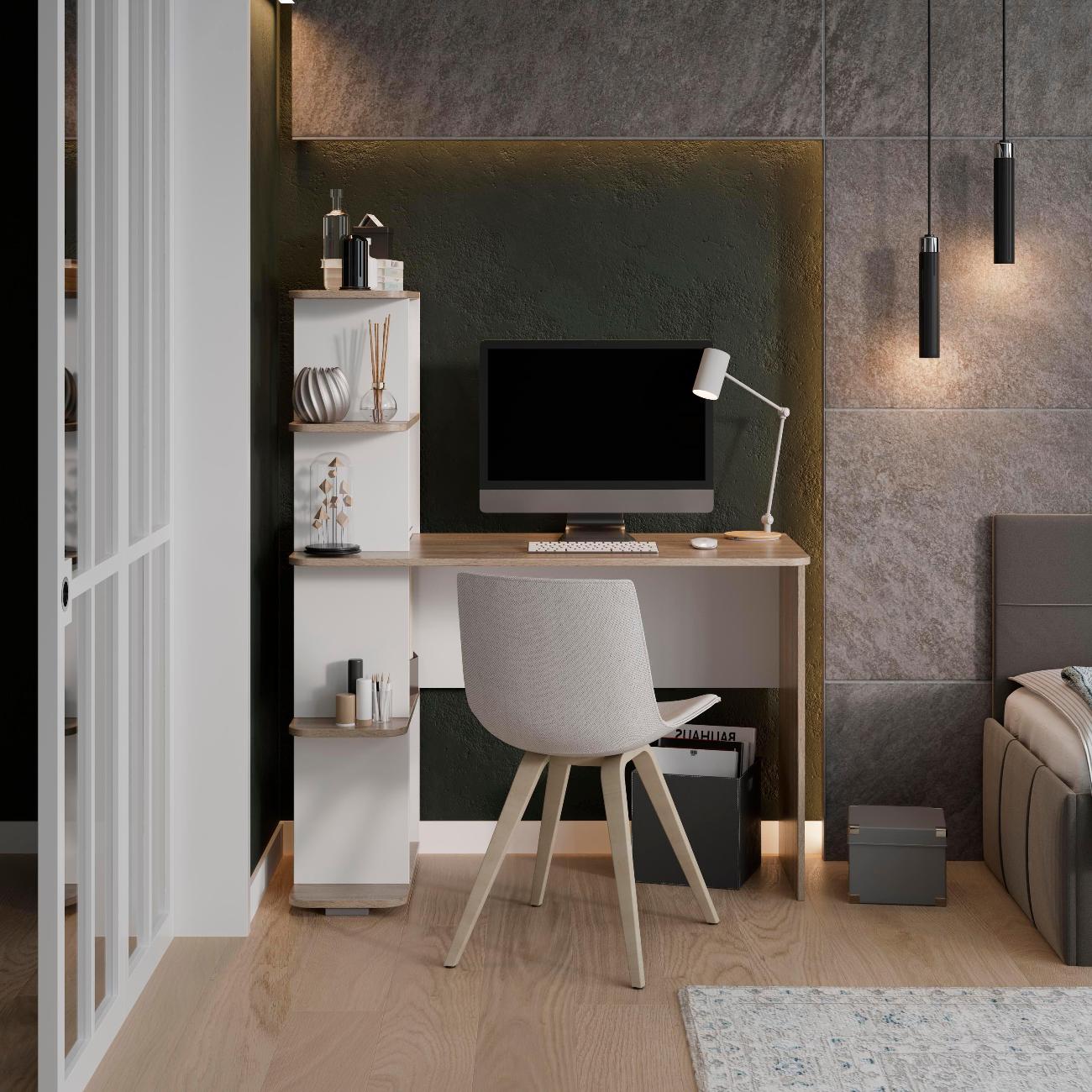 Так как работаю из дома рабочее место себе обустраивала максимально комфортно. Выбрала именно этот стол потому что в нем удобный встроенный мини-стеллаж. Мне для документации в самый раз и все под рукой. И по высоте удобный. Теперь не приходится сидеть крючком