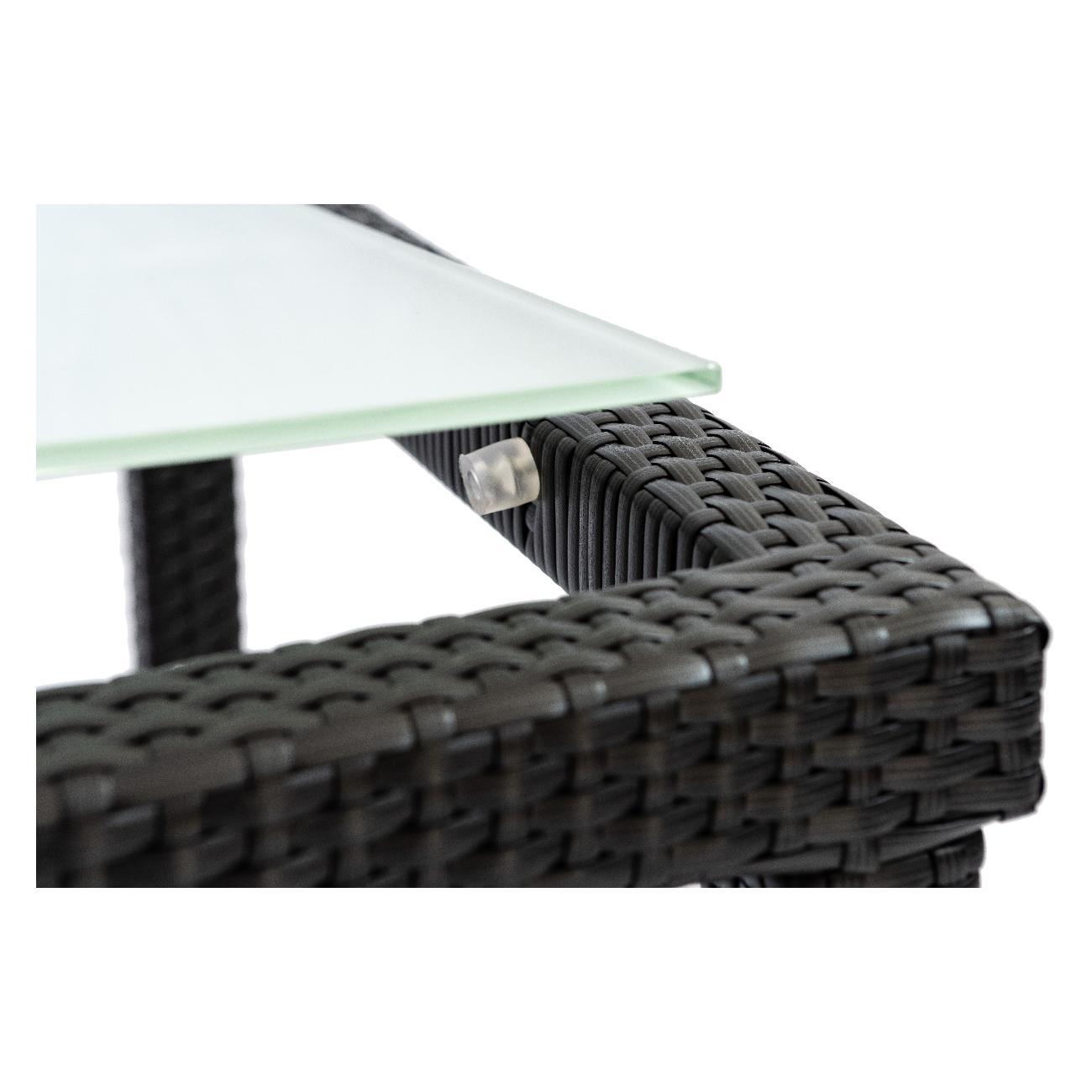 Каркас стола искусно оплетен искусственным ротангом, который не только придает ему изысканный вид, но и устойчив к ультрафиолету, влаге и перепадам температур.