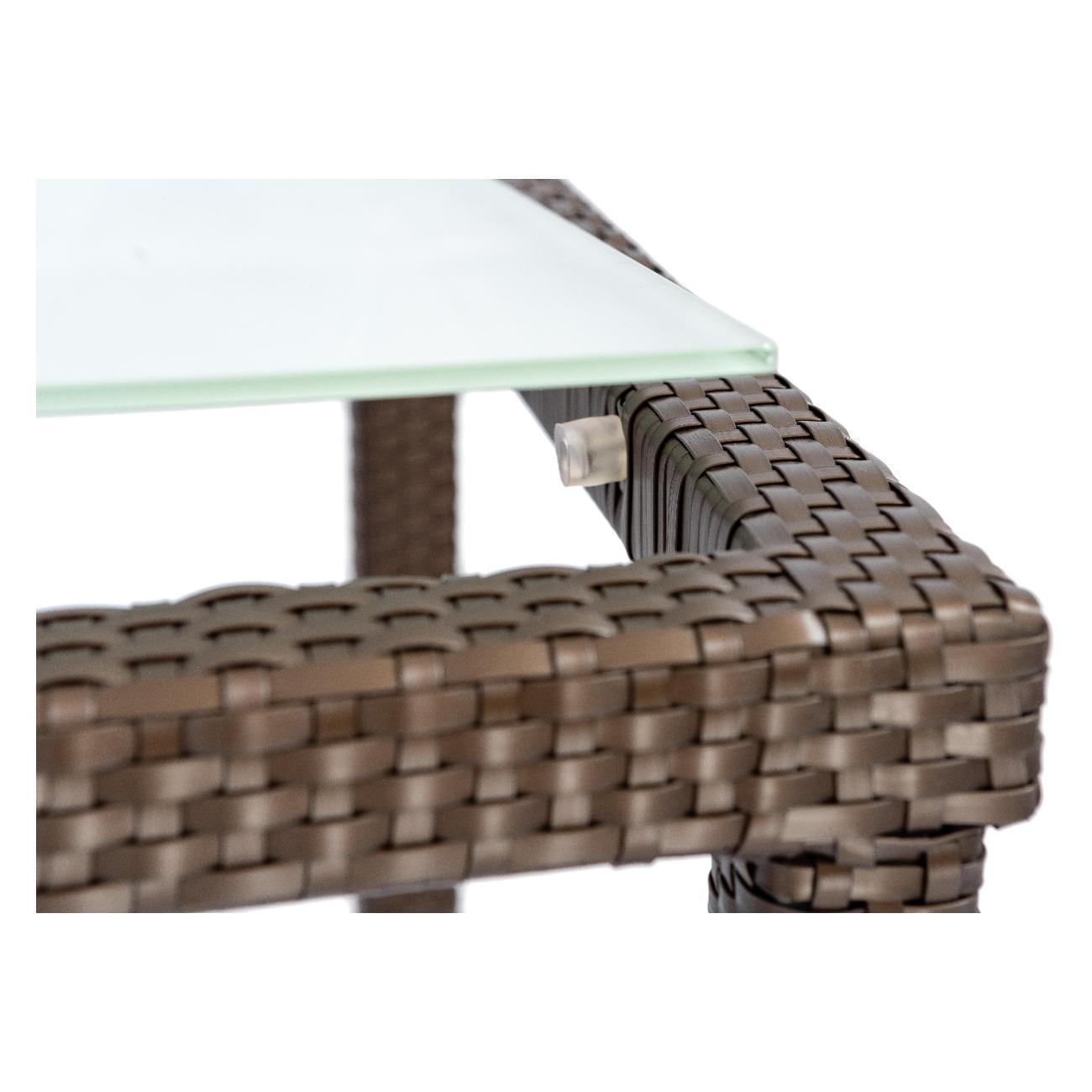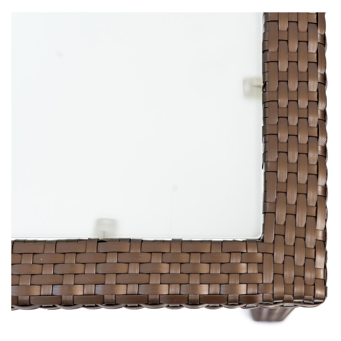 Каркас стола искусно оплетен искусственным ротангом, который не только придает ему изысканный вид, но и устойчив к ультрафиолету, влаге и перепадам температур.