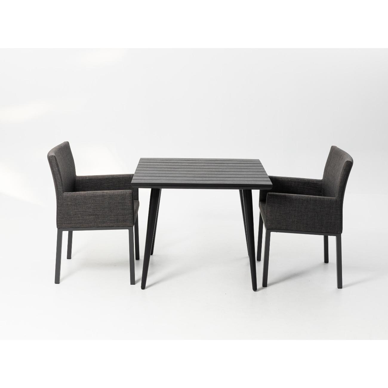 Стол современного дизайна со столешницей из полидерева и каркаса из алюминия с матовым порошковым покрытием.