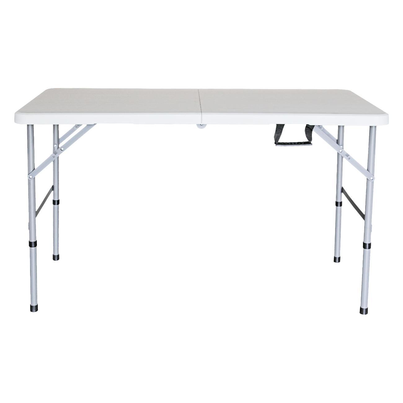Белый цвет походного изделия 120 на 60 гармонично впишется в любой интерьер или окружающую среду, будь то садовый участок или уличное мероприятие. Большой туристический стол без стульев удобно использовать как рабочую поверхность во время рыболовного тура или пикника вместе с друзьями и семьей.