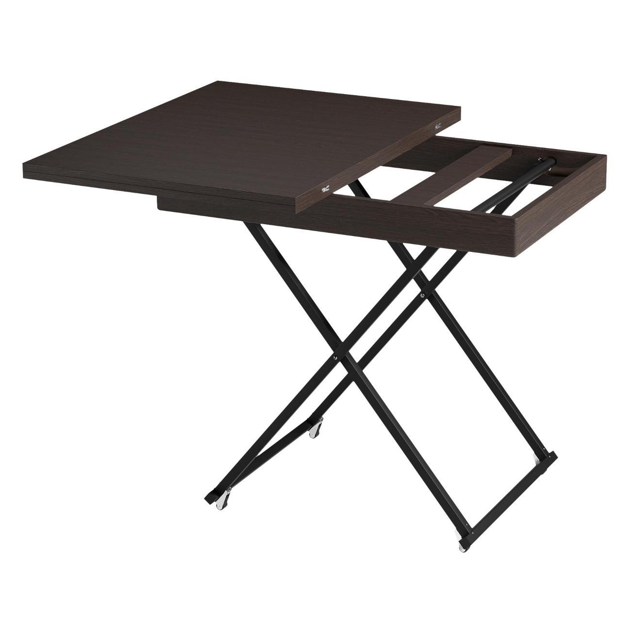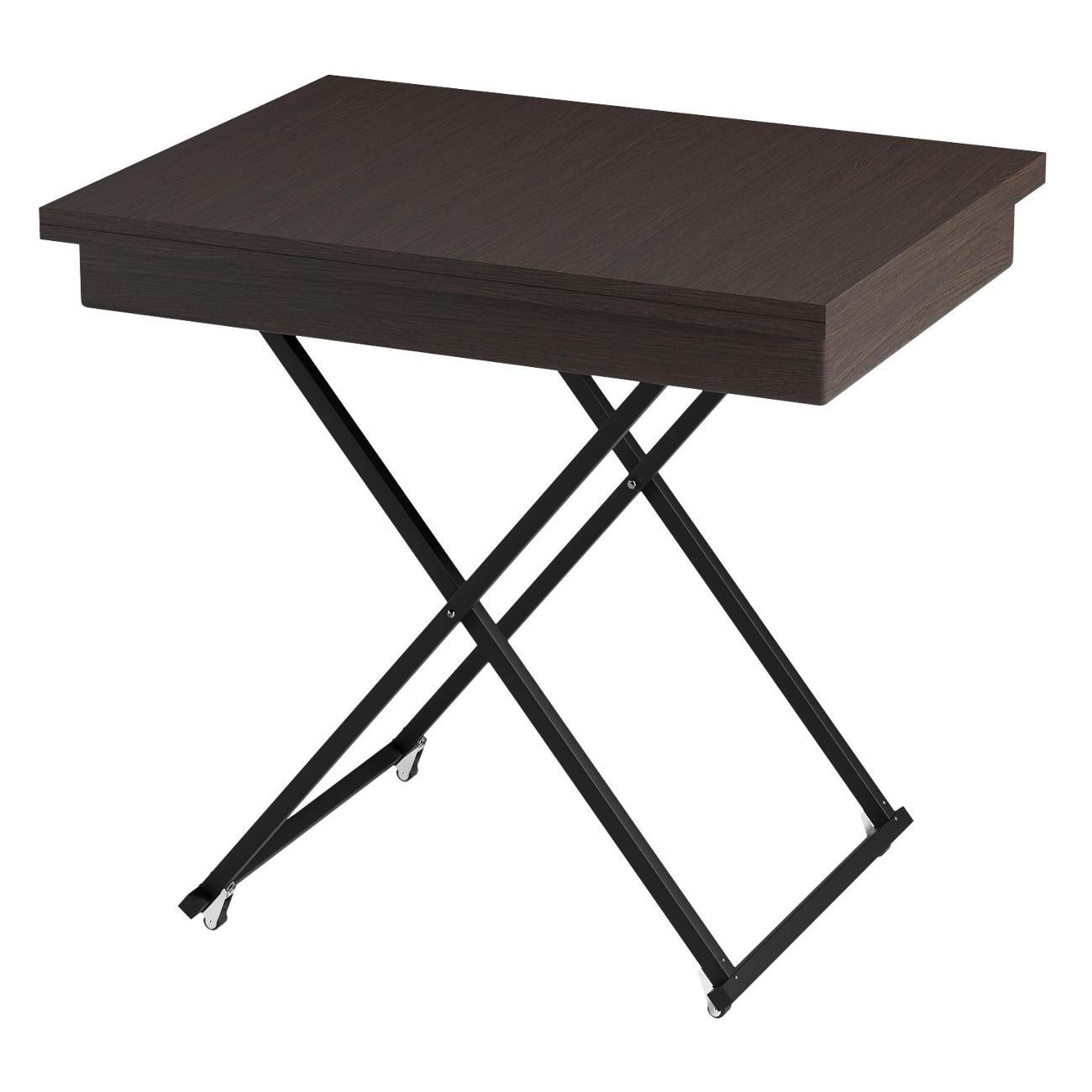 Каркас изготовлен из ЛДСП — прочного материала, придающего надежность и долговечность конструкции. Низкий деревянный столик на роликах (колесиках) сочетает функции журнального (80x60x49.5) и обеденного варианта (119x80x72), что особенно удобно в условиях ограниченной площади квартиры или дома. Как и книжка, сборный трансформер очень компактный. Раскладной механизм надежен и прост в эксплуатации: вы сможете быстро разложить его, создав дополнительное место для приёма пищи.