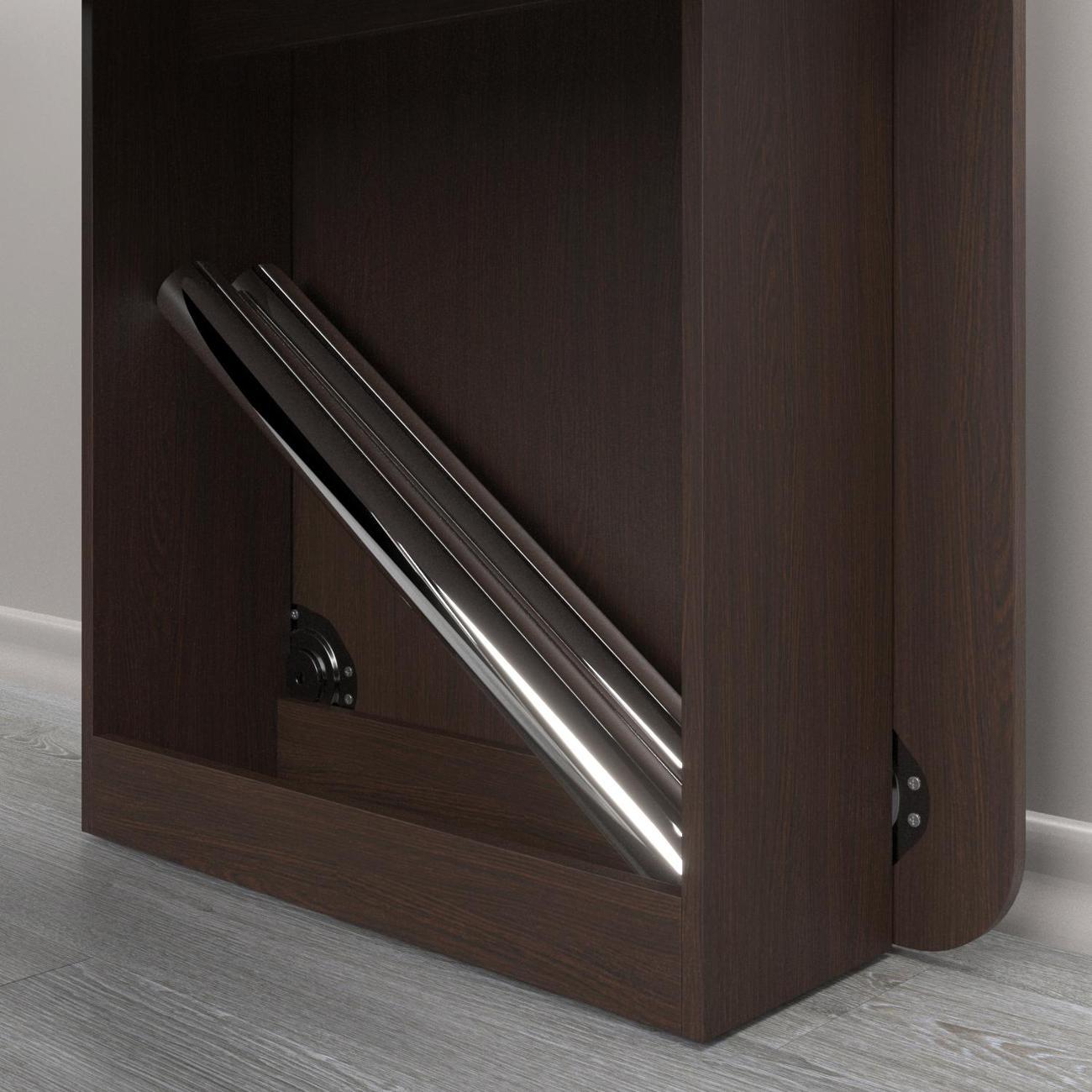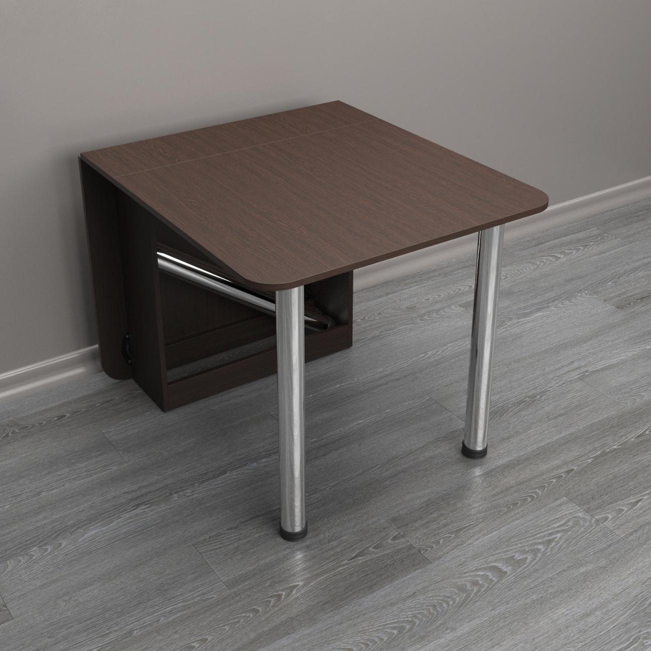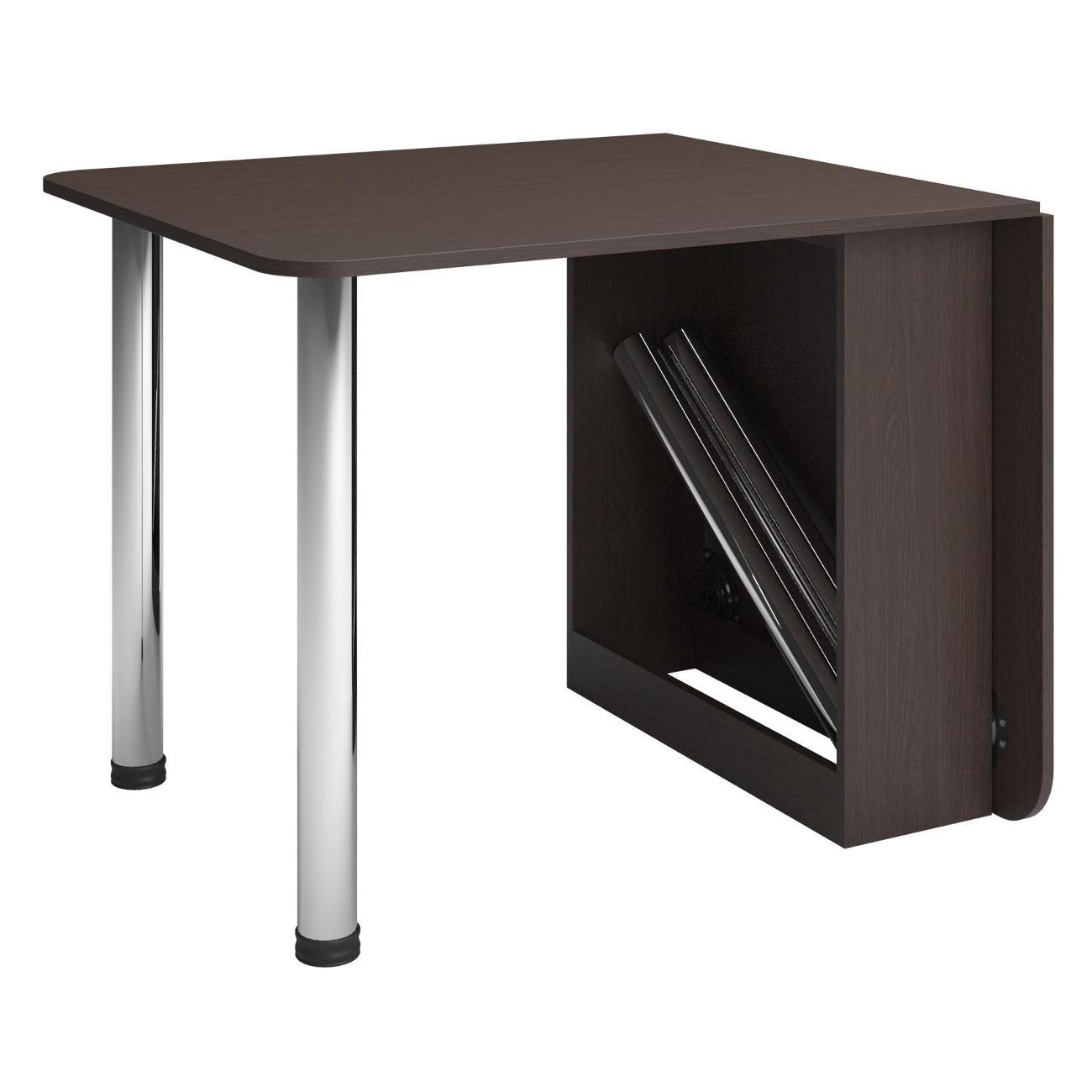 Каркас изготовлен из ЛДСП — прочного материала, придающего надежность и долговечность конструкции. Высокий деревянный столик сочетает функции тумбы (24x72x73) и обеденного варианта (160.5x72x73), что особенно удобно в условиях ограниченной площади квартиры или дома. Как книжка, сборный трансформер очень компактный. Его удобно использовать как кухонный мини столик, разложив только одну половину, либо как узкую подставку на балконе. Раскладной механизм надежен и прост в эксплуатации: вы сможете быстро разложить его, создав дополнительное место для приёма пищи.