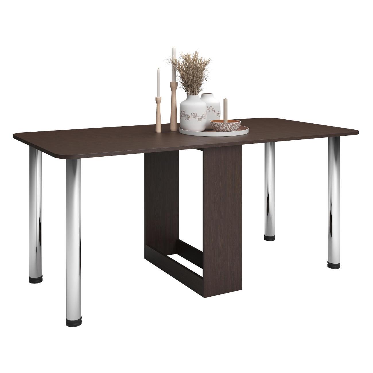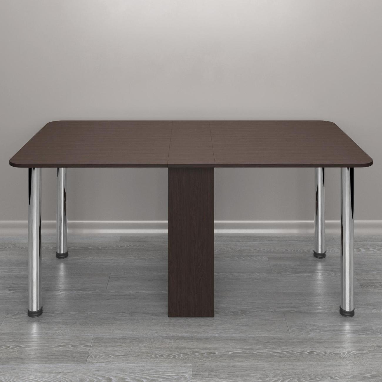 Раскладной стол книжка — универсальная мебель для дома, которая гармонично впишется в интерьер кухни или гостиной. В сложенном виде это узкий консольный столик, удобный для повседневного использования и экономии пространства. При необходимости он легко превращается в большой обеденный вариант на 8 персон благодаря надежному складному элементу и разборным хромированным ножкам. Прямоугольная форма отлично подходит для семейных ужинов или встреч с друзьями. Универсальный цвет и современный дизайн стола лофт добавляют свежести и эстетичности любому интерьеру.