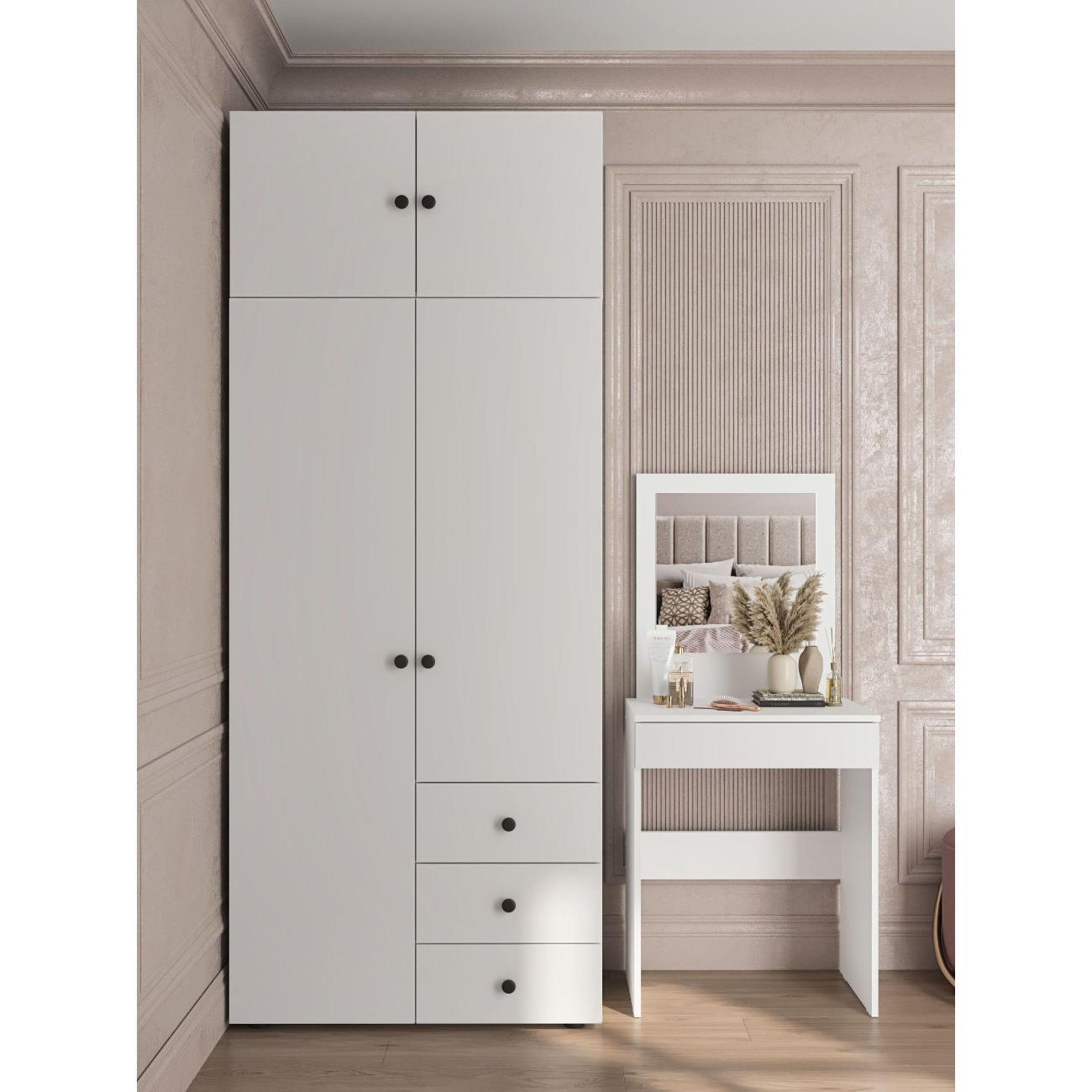 Компактный, аккуратный, все детали в комплекте, лёгкая сборка. Понравилось то, что покрытие не просто белое а с имитацией под светлое дерево.