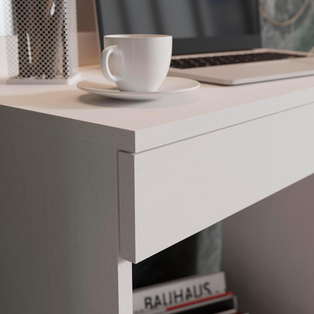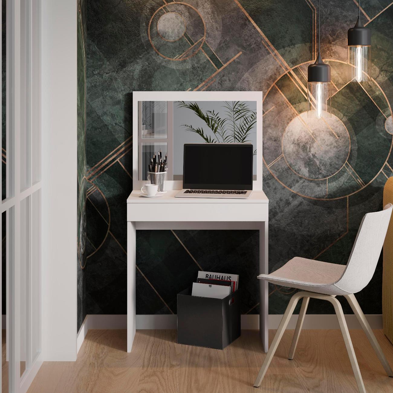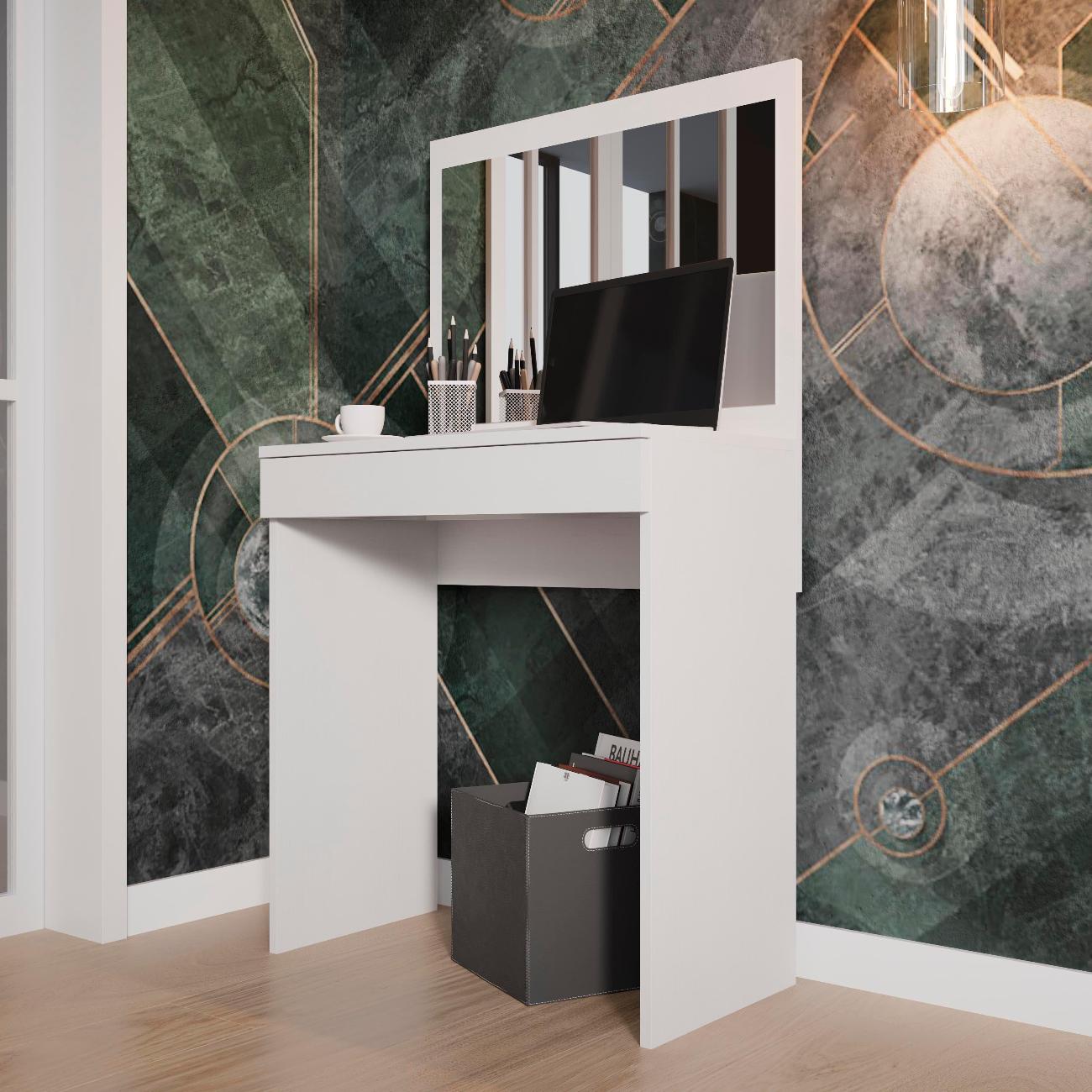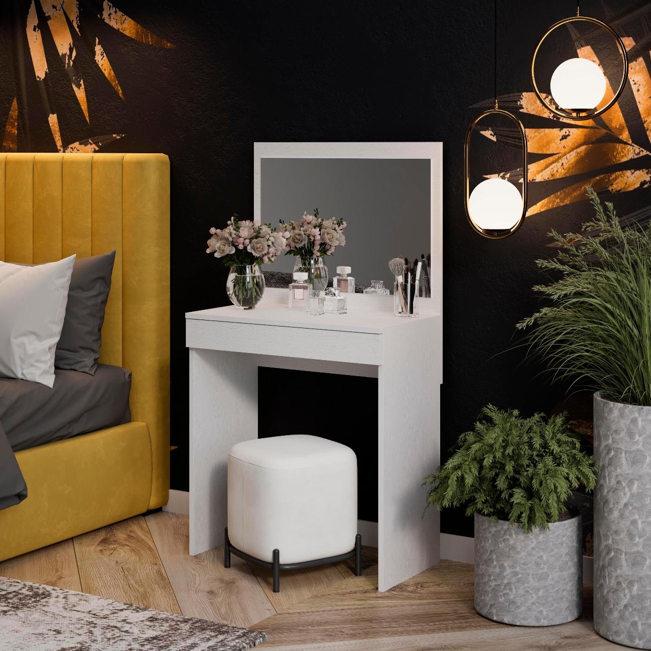 Белый туалетный стол Никки гармонично впишется в любой современный интерьер. Классический минималистичный дизайн, сбалансированная конструкция, доступная цена. Дамский столик предназначен для размещения на нем косметики, парфюмерии, украшения и привести себя в порядок перед зеркалом. Модель оборудована удобной столешницей, выдвижным ящиком для защиты ваших косметических средств от пыли и прямых солнечных лучей и зеркалом. Выдвижной ящик оснащен качественной фурнитурой - шариковые направляющие полного выдвижения. Столик для макияжа оформлен в текстуре Белый Ясень, она является эстетически красивой, универсальной и приятной на ощупь. Качественные материалы делают стол износостойким, способным прослужить многие годы - используется экологически безопасный ЛДСП - 16 мм. Благодаря трюмо ежедневные процедуры и нанесение макияжа станет комфортнее, удобнее, практичнее и быстрее. Он представляет собой качественной продукцией и экологически чистым изделием. Поставляется в разобранном виде. Все технические отверстия сделаны на производстве, фурнитура для сборки и инструкция идет в комплекте, также инструкцию Вы можете найти в карточке товара. Прежде чем приступить к сборке, необходимо убедиться в качестве, количестве и соответствии всех деталей. Если таковые выявлены, незамедлительно свяжитесь с площадкой и продавцом, для разрешения вопроса, не приступая к сбору изделия.