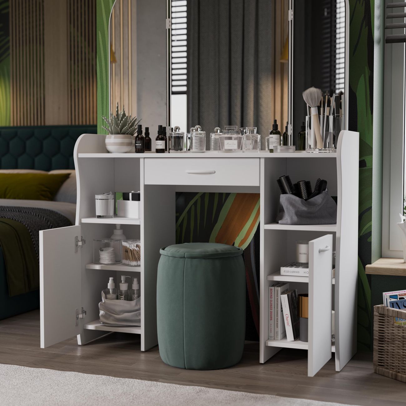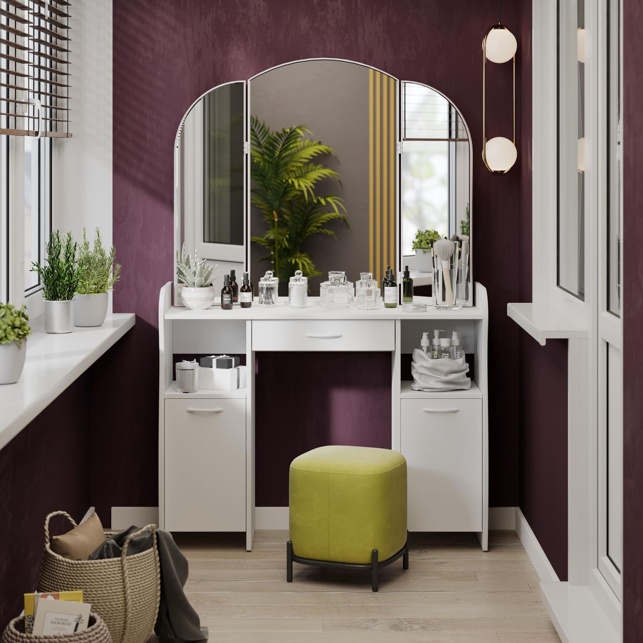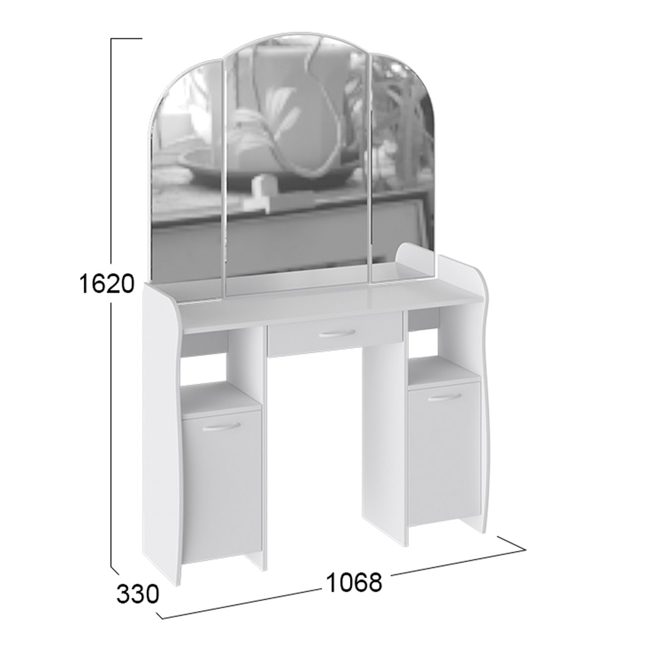 Туалетный стол София тип 2 является лучшим удобным вариантом организации места для ухода за собой и нанесения макияжа для любой девушки, разнообразие расцветок изделия позволяют приобрести подходящую модель для помещения, оформленного в любом стиле. Классический и минималистичный дизайн, сбалансированная конструкция, доступная цена. Дамский столик предназначен для размещения на нем косметики, парфюмерии, украшения и привести себя в порядок перед зеркалом. Материалы Модель оборудована удобной столешницей, выдвижным ящиком для защиты ваших косметических средств от пыли и прямых солнечных лучей, ящиками по бокам и регулируемыми зеркалами, которые придают изюминку в дизайне столика. Качественные материалы делают столик для макияжа износостойким, способным прослужить многие годы - используется экологически безопасный ЛДСП - 16 мм. Благодаря трюмо ежедневные процедуры и нанесение макияжа станет комфортнее, удобнее, практичнее и быстрее. Дополнительная информация Поставляется в разобранном виде. Все технические отверстия сделаны на производстве, фурнитура для сборки и инструкция идет в комплекте, также инструкцию Вы можете найти в карточке товара. Прежде чем приступить к сборке, необходимо убедиться в качестве, количестве и соответствии всех деталей. Если таковые выявлены, незамедлительно свяжитесь с площадкой и продавцом, для разрешения вопроса, не приступая к сбору изделия. Товар после сборки возврату и обмену не подлежит.