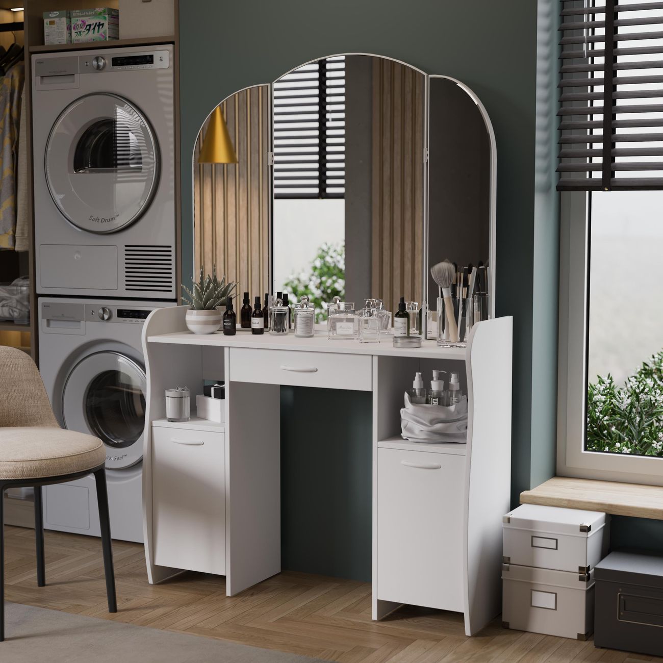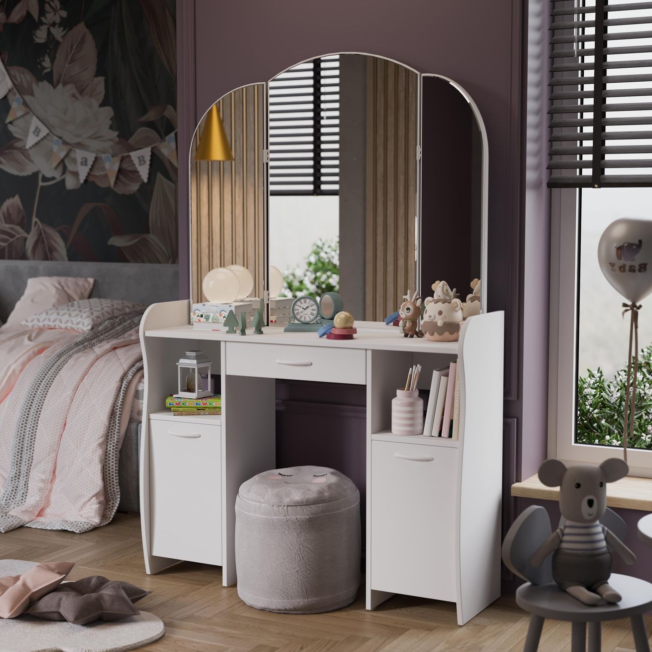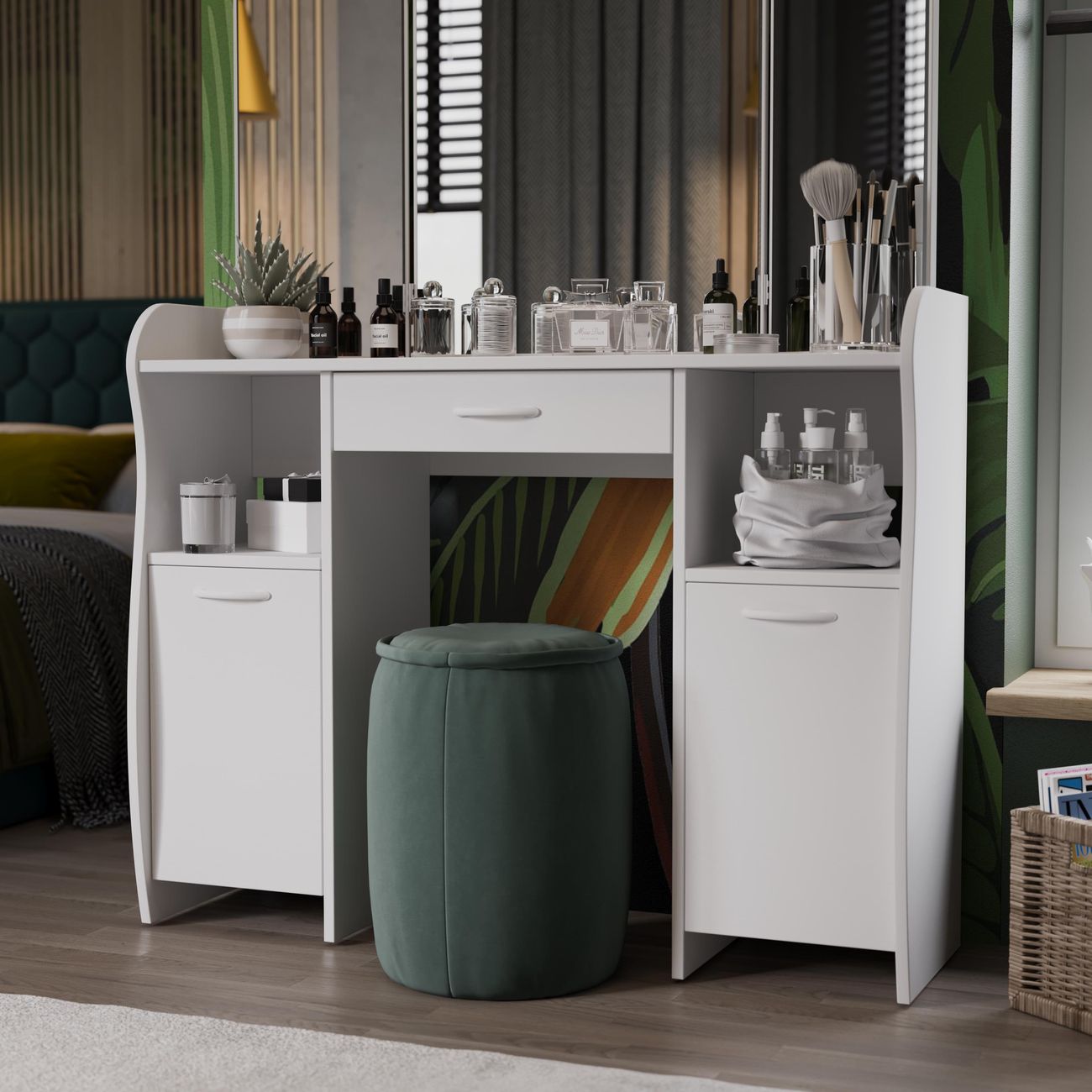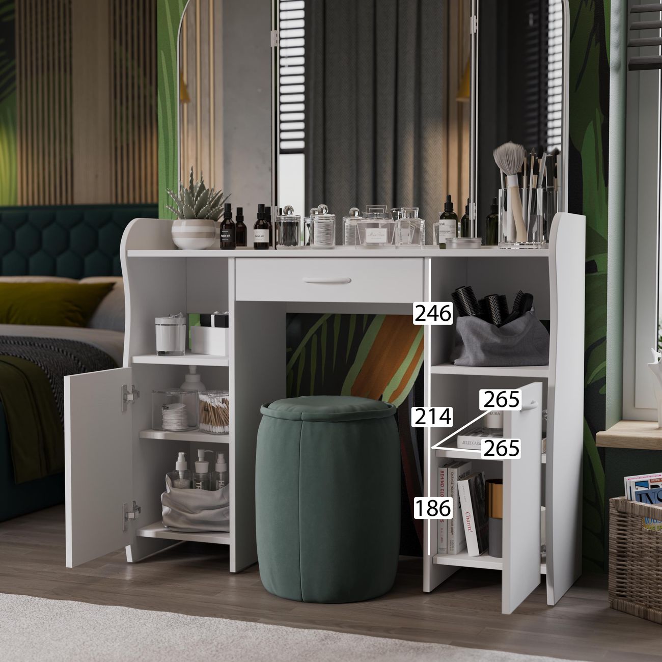 Туалетный стол София тип 2 является лучшим удобным вариантом организации места для ухода за собой и нанесения макияжа для любой девушки, разнообразие расцветок изделия позволяют приобрести подходящую модель для помещения, оформленного в любом стиле. Классический и минималистичный дизайн, сбалансированная конструкция, доступная цена. Дамский столик предназначен для размещения на нем косметики, парфюмерии, украшения и привести себя в порядок перед зеркалом. Материалы Модель оборудована удобной столешницей, выдвижным ящиком для защиты ваших косметических средств от пыли и прямых солнечных лучей, ящиками по бокам и регулируемыми зеркалами, которые придают изюминку в дизайне столика. Качественные материалы делают столик для макияжа износостойким, способным прослужить многие годы - используется экологически безопасный ЛДСП - 16 мм. Благодаря трюмо ежедневные процедуры и нанесение макияжа станет комфортнее, удобнее, практичнее и быстрее. Дополнительная информация Поставляется в разобранном виде. Все технические отверстия сделаны на производстве, фурнитура для сборки и инструкция идет в комплекте, также инструкцию Вы можете найти в карточке товара. Прежде чем приступить к сборке, необходимо убедиться в качестве, количестве и соответствии всех деталей. Если таковые выявлены, незамедлительно свяжитесь с площадкой и продавцом, для разрешения вопроса, не приступая к сбору изделия. Товар после сборки возврату и обмену не подлежит.