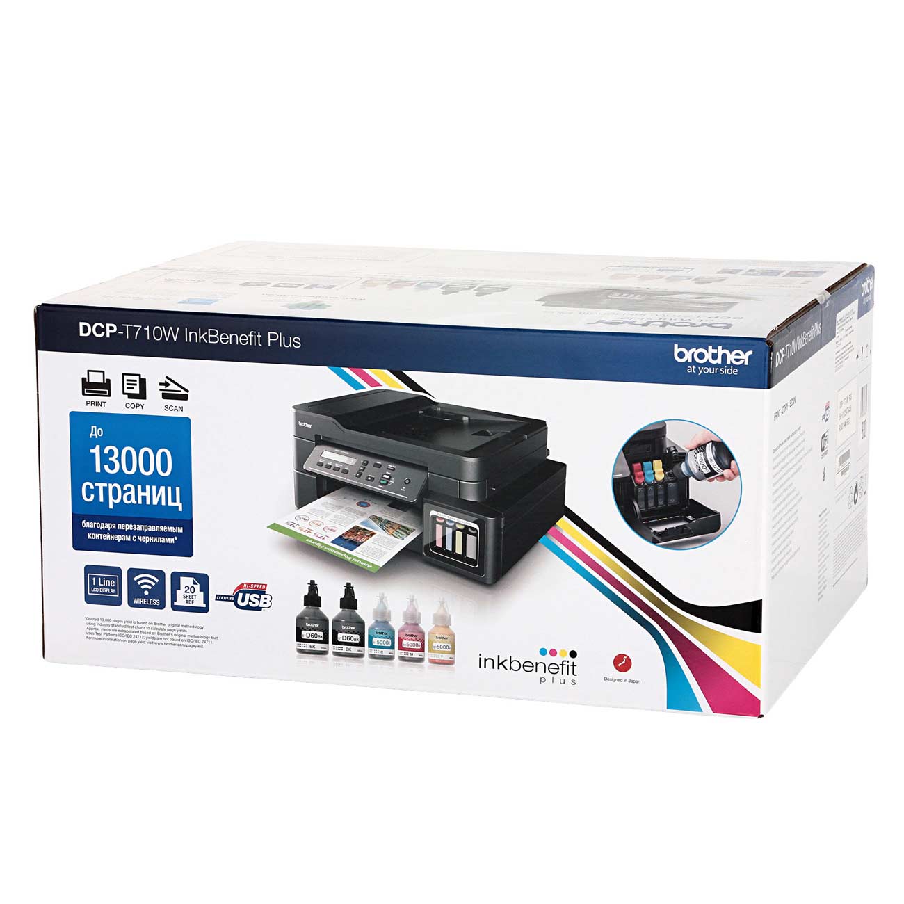 Brother DCPT710W InkBenefit Plus – струйное МФУ с функциями принтера, сканера и копира. Оно с высокой скоростью распечатывает цветные и чёрно-белые документы, обеспечивая чёткость текста и яркость изображения.