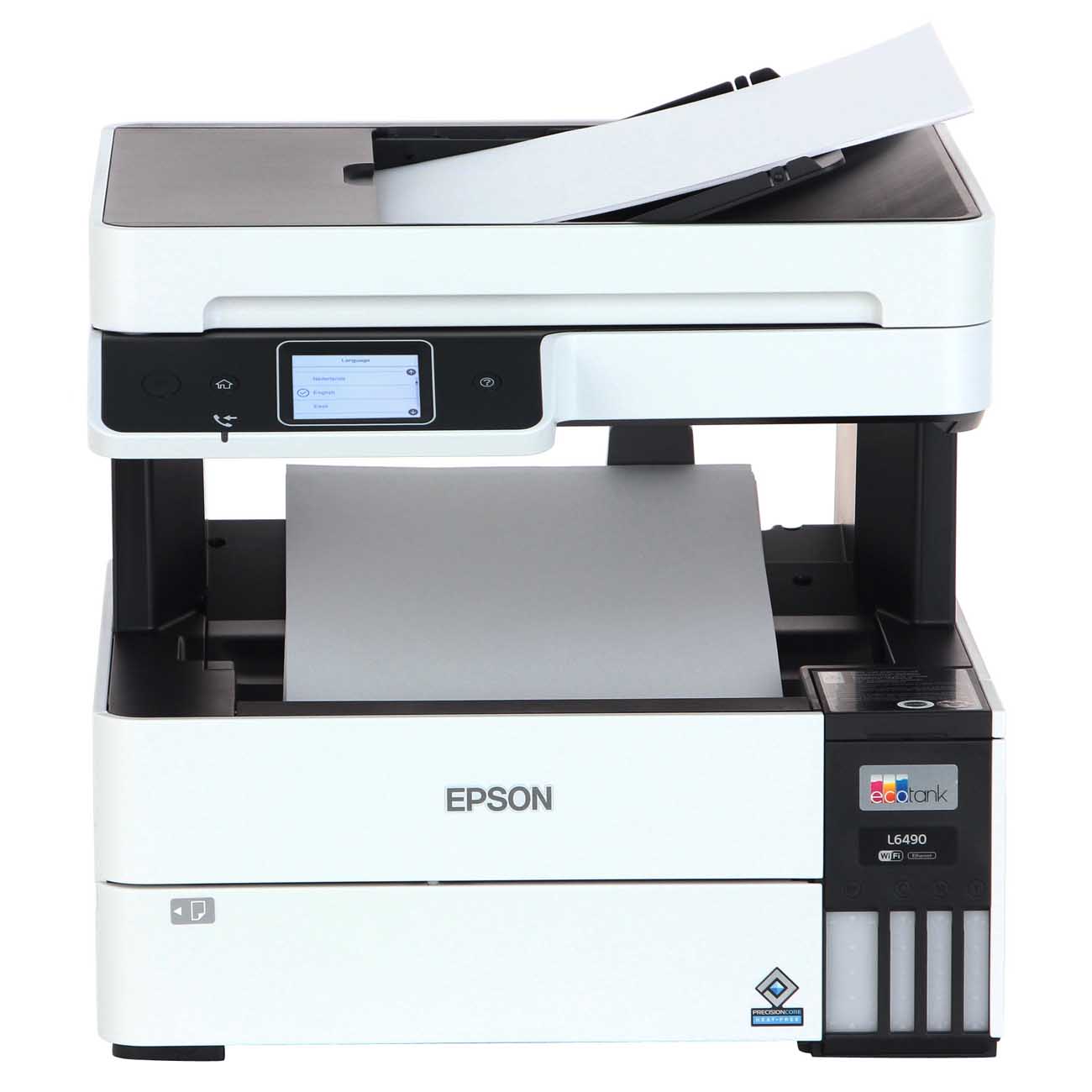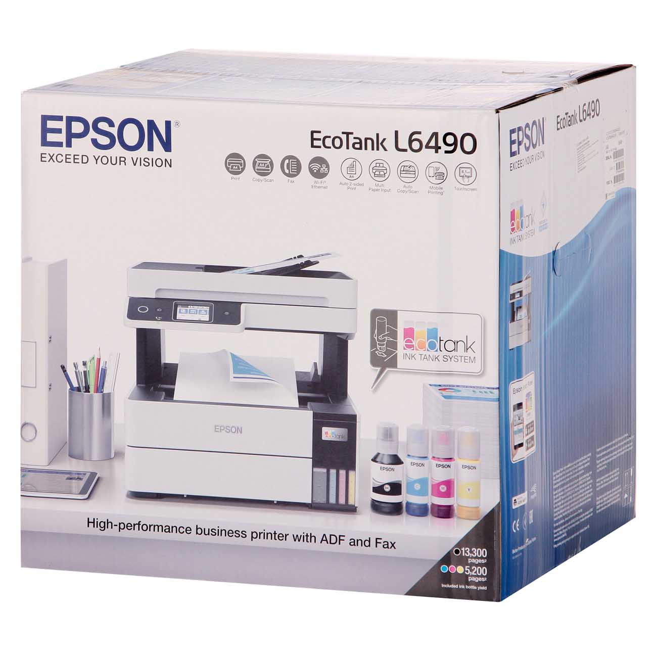 Epson EcoTank L6490 – многофункциональное устройство, которое заменит цветной принтер, сканер, копир и факс. Благодаря размерам 34,6 х 37,5 х 34,7 см оно не занимает много места и подойдёт даже для небольшого офиса.