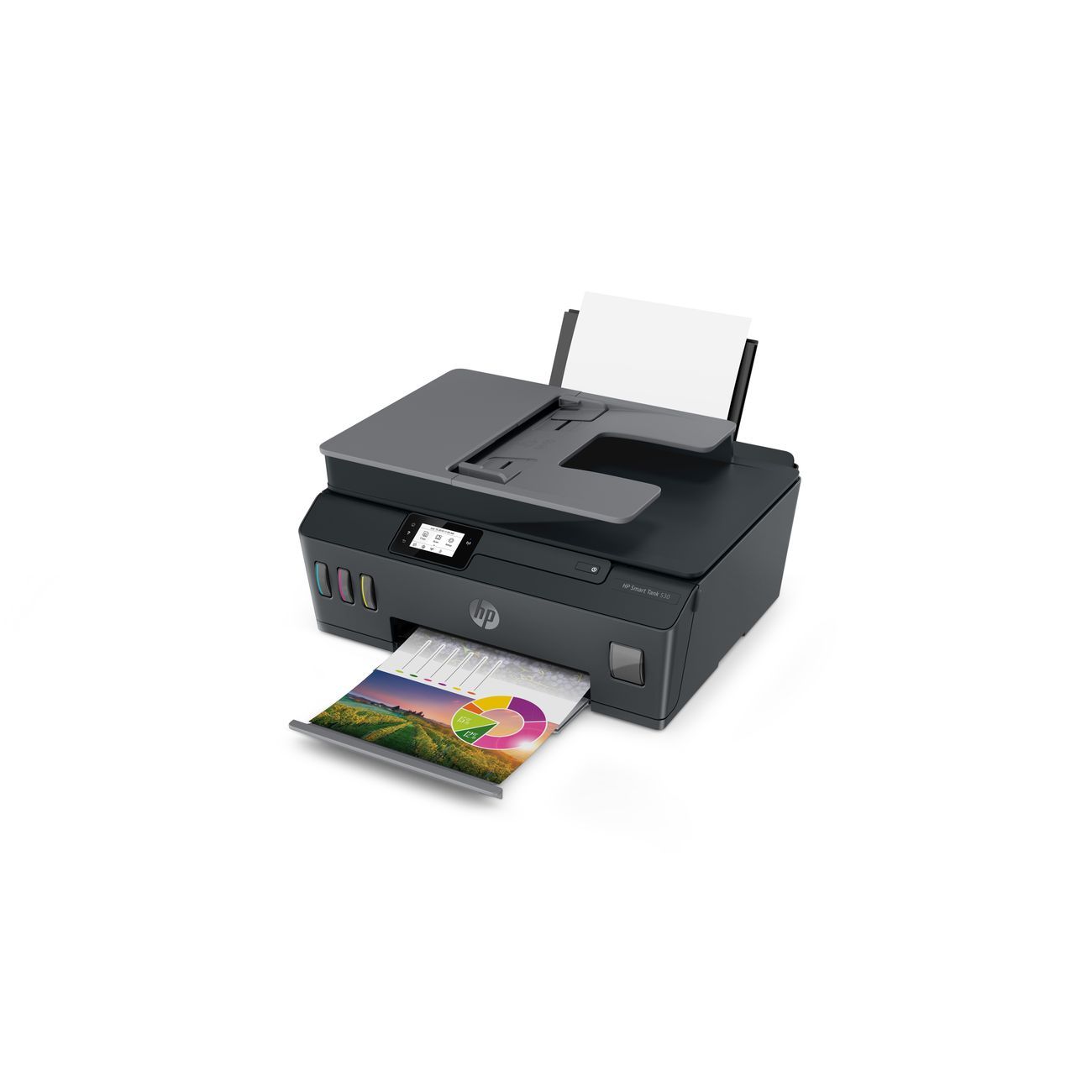 Струйное МФУ HP Smart Tank 530 AIO – удобный вариант для офиса с небольшим документооборотом или для домашнего использования. Для компактного и весящего чуть более 6 кг прибора несложно найти место. Принтер выдерживает нагрузку до 1000 страниц в месяц, так что его можно рекомендовать, например, студентам.