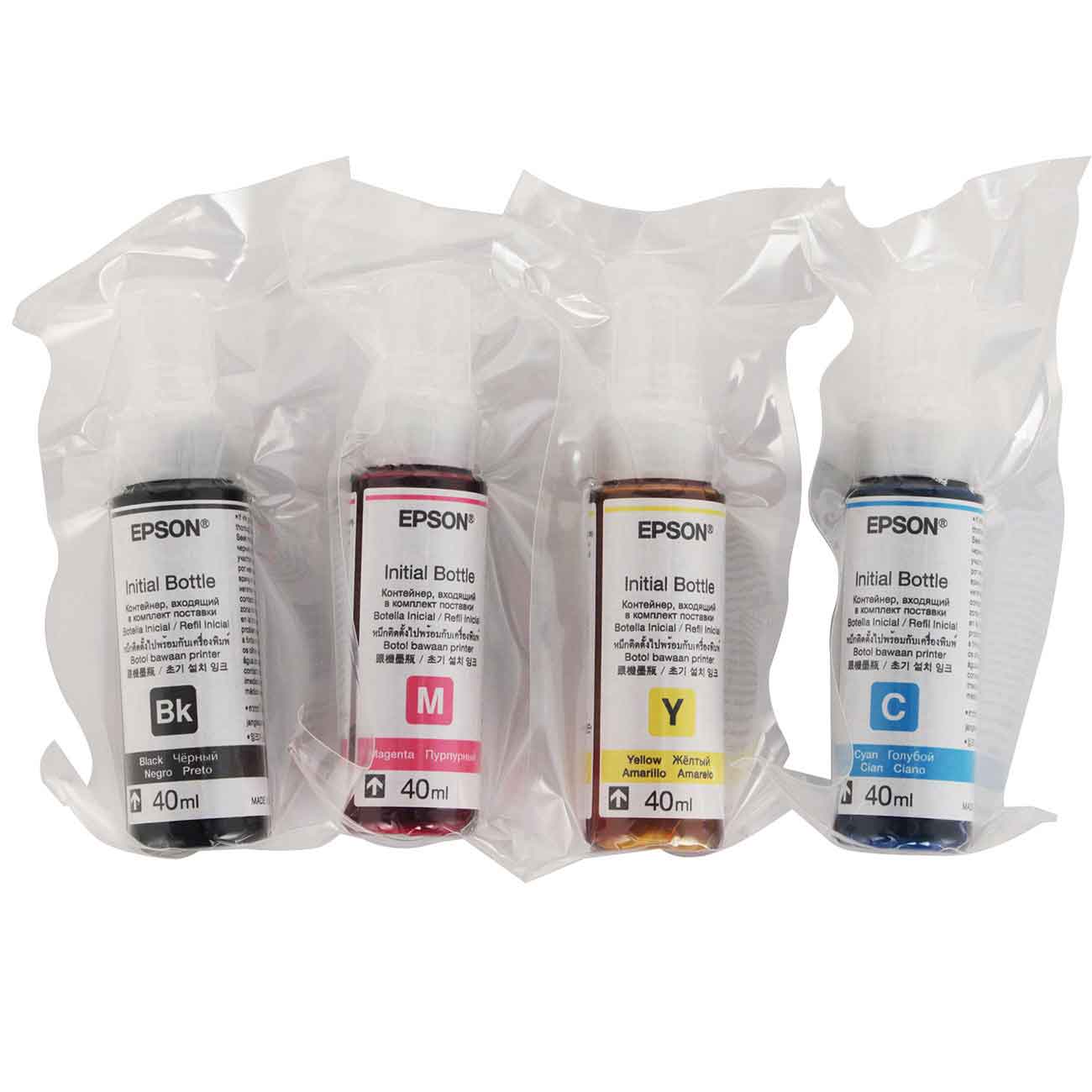 Кроме самого Epson EcoTank L121, в комплекте предусмотрено четыре картриджа. Приступать к печати вы сможете сразу после покупки.