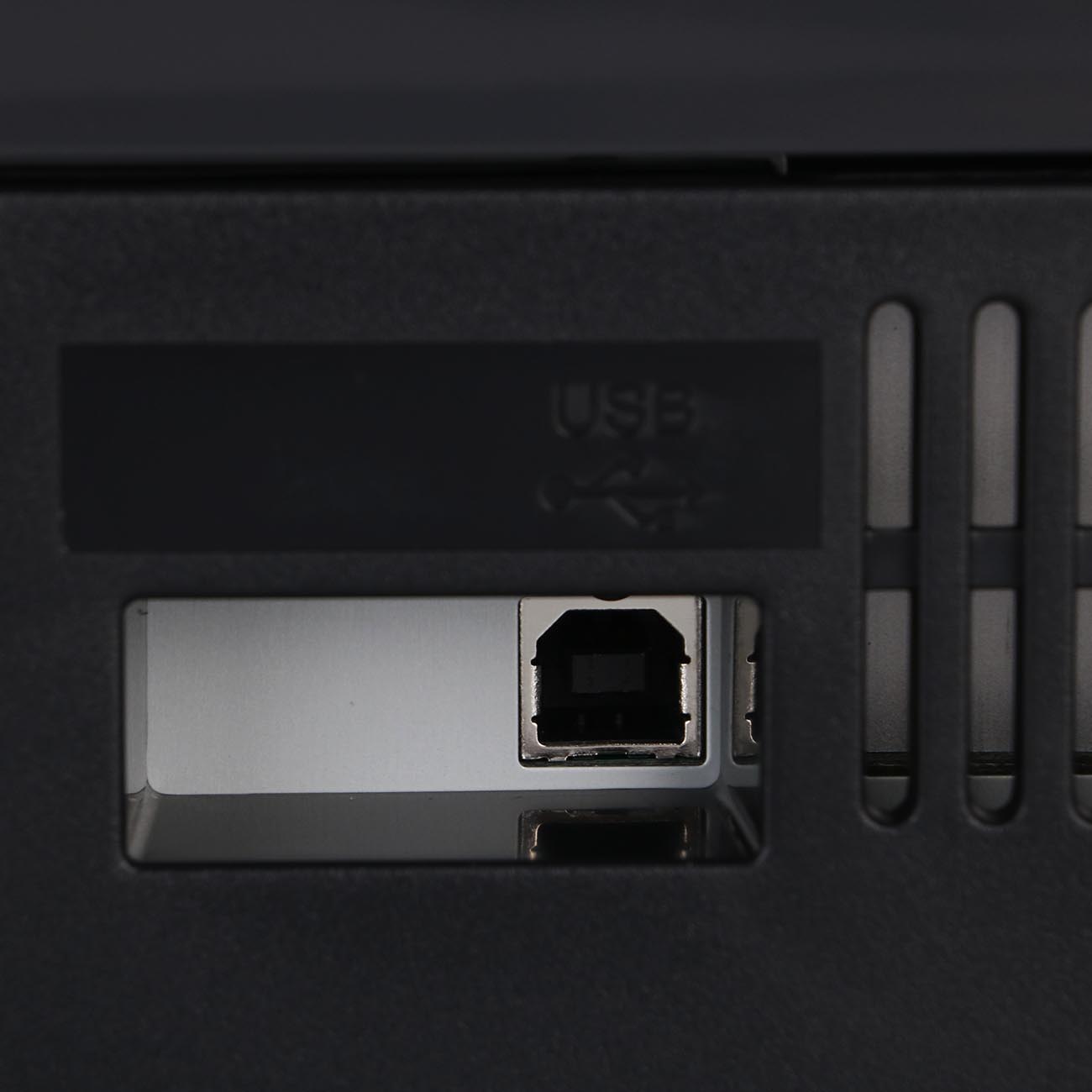 Принтер может работать в температурном режиме от -10°С до +35°С. Модель отличается компактными размерами — 22х71х33 см. Благодаря этому она не занимает много места. В комплекте поставляются пять картриджей с черными чернилами. Корпус изготовлен из прочного пластика, устойчивого к механическим повреждениям. В верхней части размещены кнопки управления. Питание — от электросети. Максимальная мощность энергопотребления — 20 Вт.