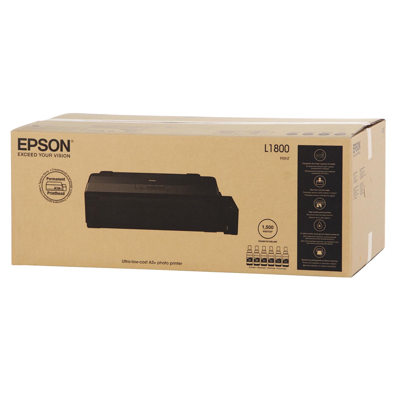 Epson L1800 – современный фотопринтер, предназначенный для тех, кого интересует экономичная печать фотографий формата А3+. Эта модель демонстрирует превосходное качество изображения, высокую скорость печати и длительный срок службы фотографий. Она подходит как для дома, так и для небольших офисов.