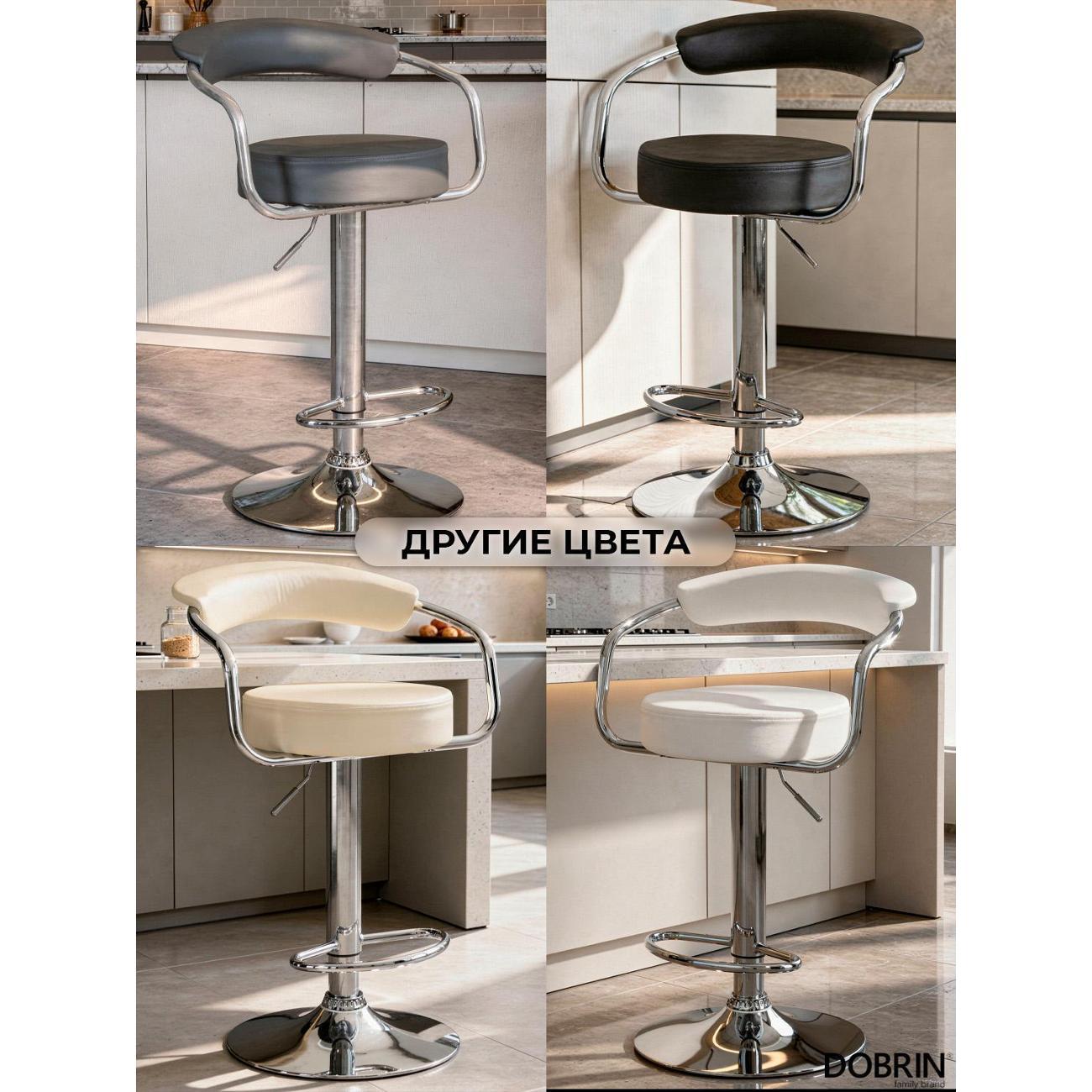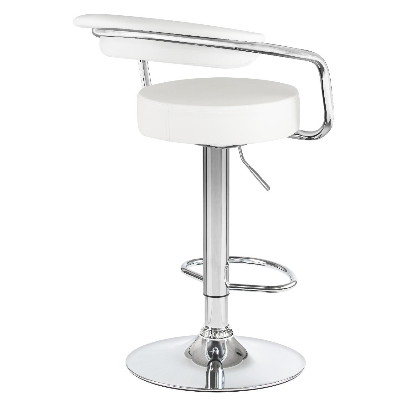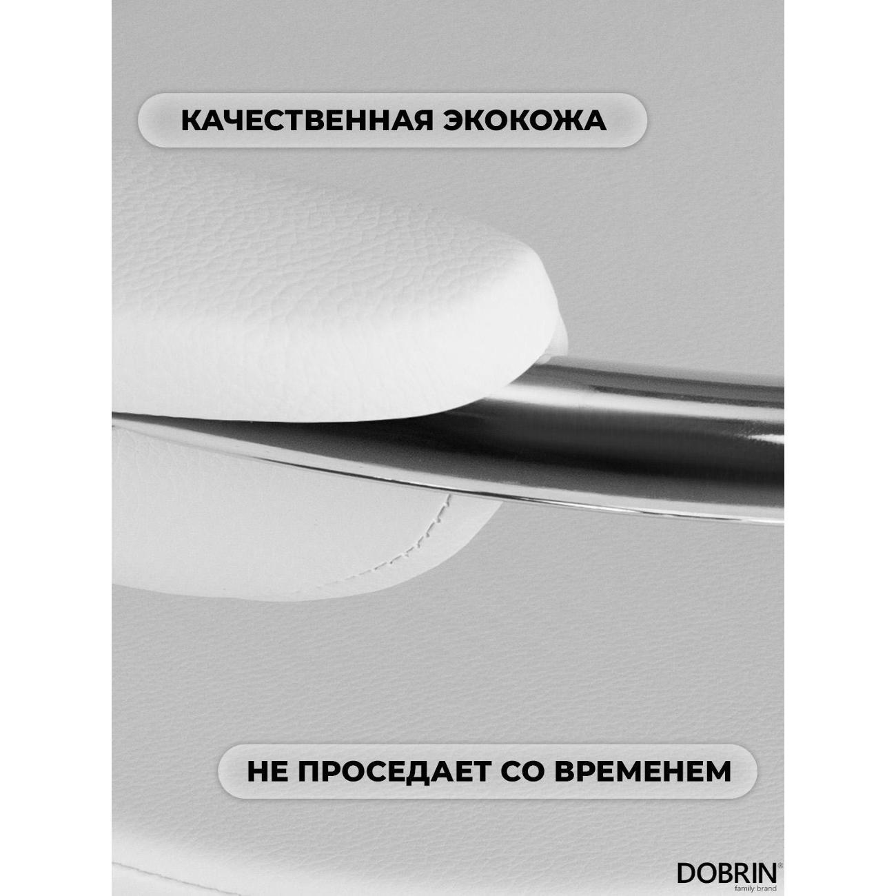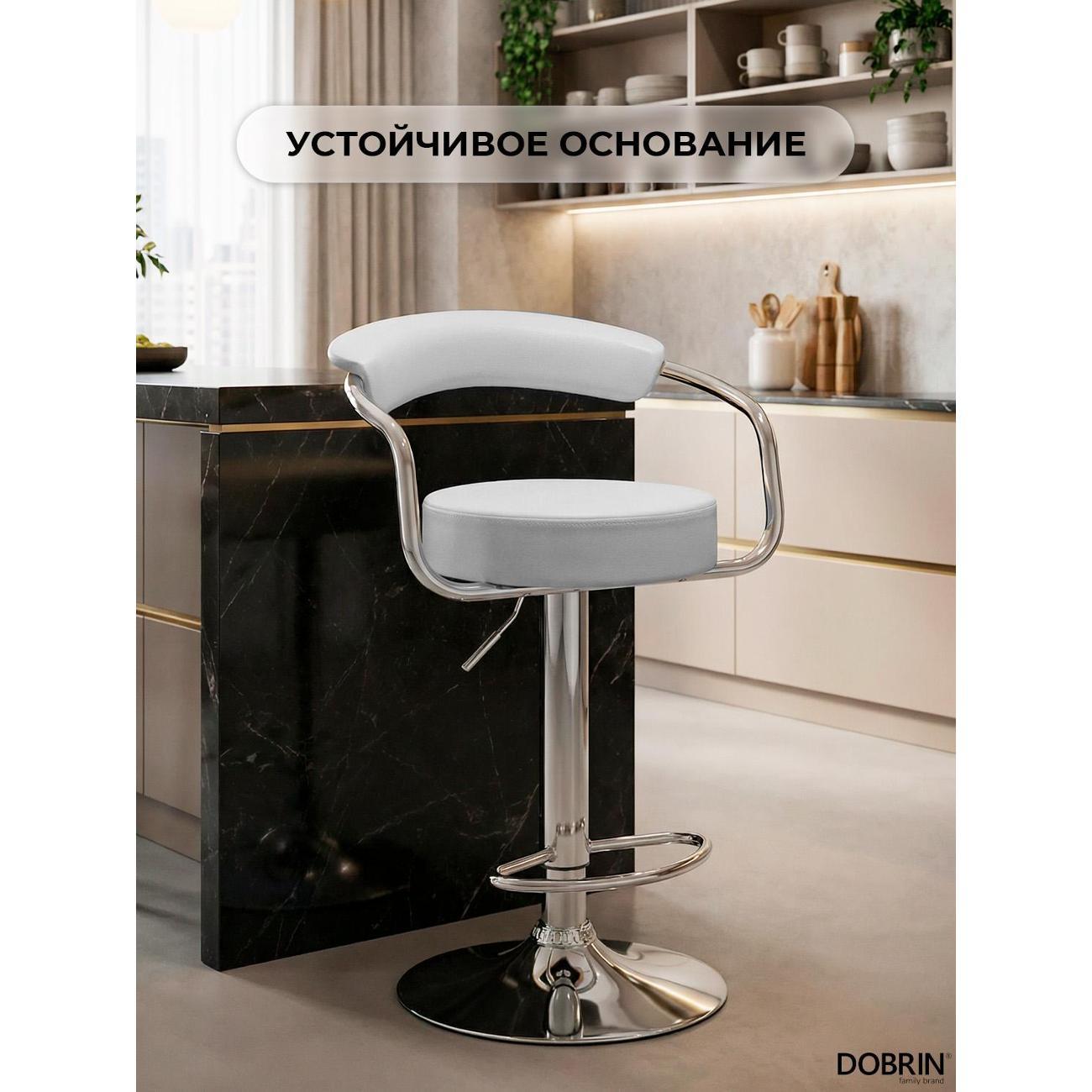 Стул барный DOBRIN MARTA (белый). Сиденье искусственная кожа, сиденье круглой формы, мягкое, с мягкой спинкой. Основание сделано из прочного металла. Есть механизм вращения. Стул с подлокотниками высотой 17 см. Стул с газлифтом, с регулировкой высоты максимальной высотой 104 см и минимальной высотой 83 см, ширина 52 см, глубина 49 см. Сиденье с максимальной высотой 85 см и минимальной высотой 64 см. Требуется простейшая сборка, удобная инструкция прилагается. Товар изготовлен по уникальному дизайну и эскизу DOBRIN с любовью к мебели. Максимальная нагрузка 100 кг. Гарантийный срок 12 месяцев и минимальный срок службы от 5 лет. Отлично подойдет барный стул для кухни, бара, кафе, ресторана, на дачу, парикмахерскую, в салон красоты или барбершоп