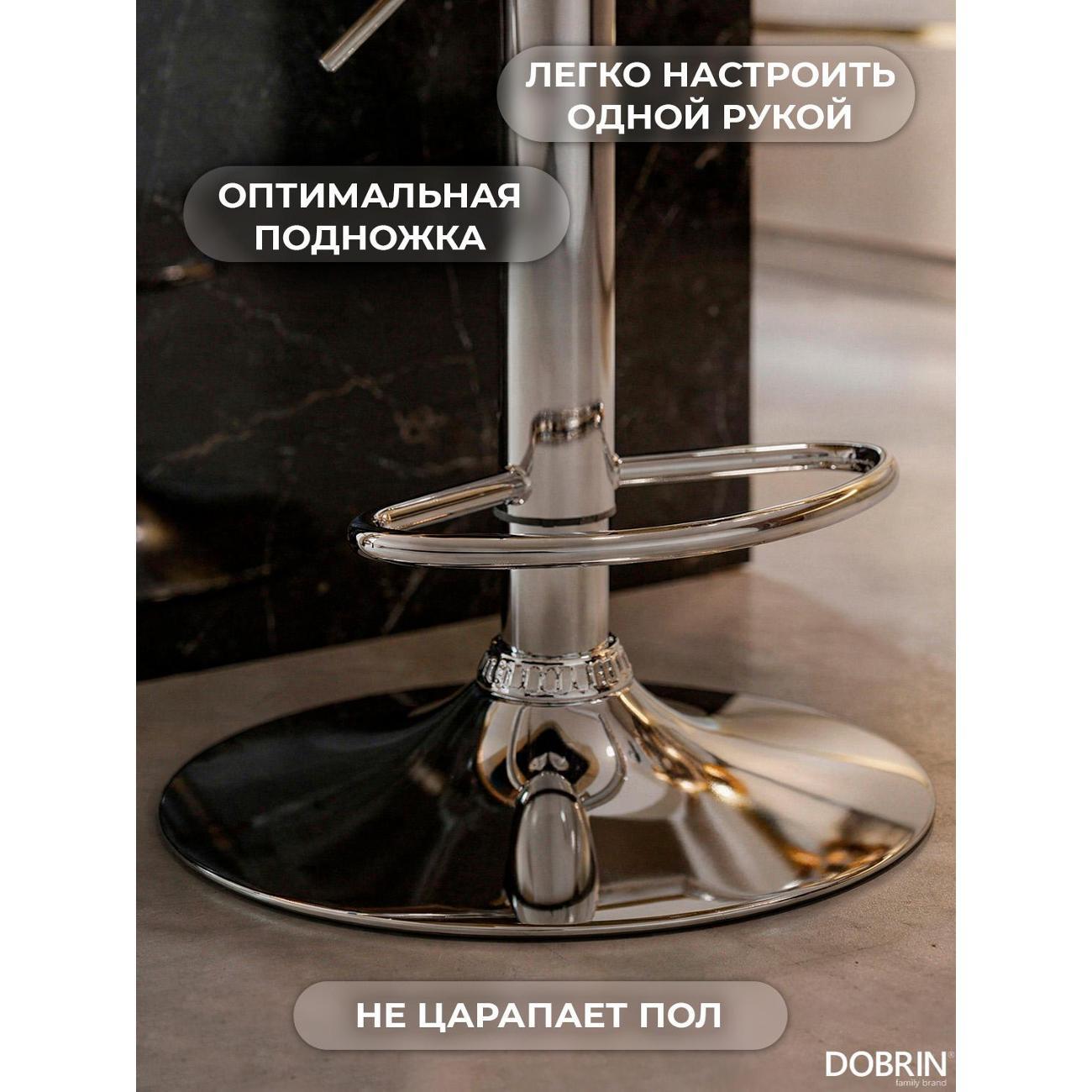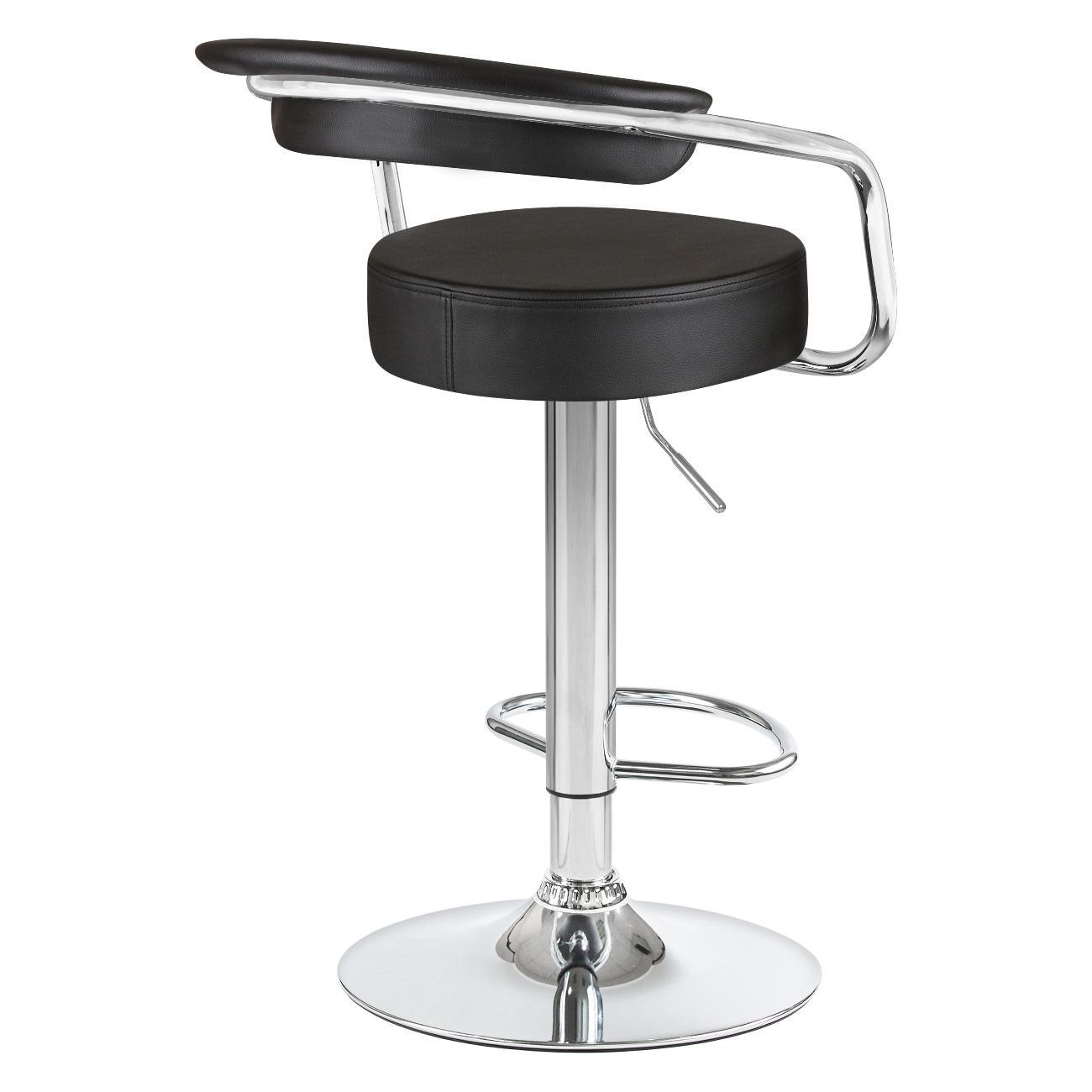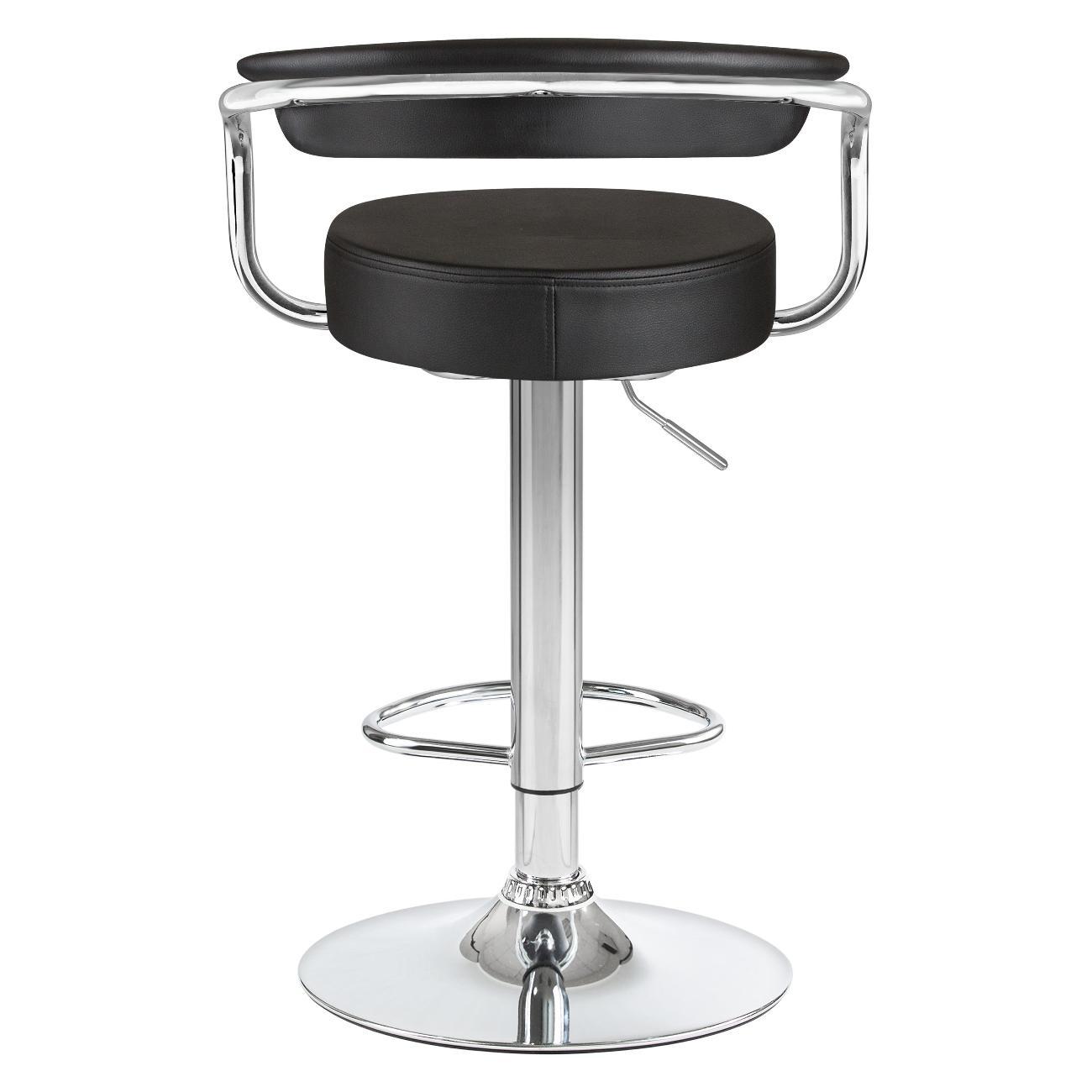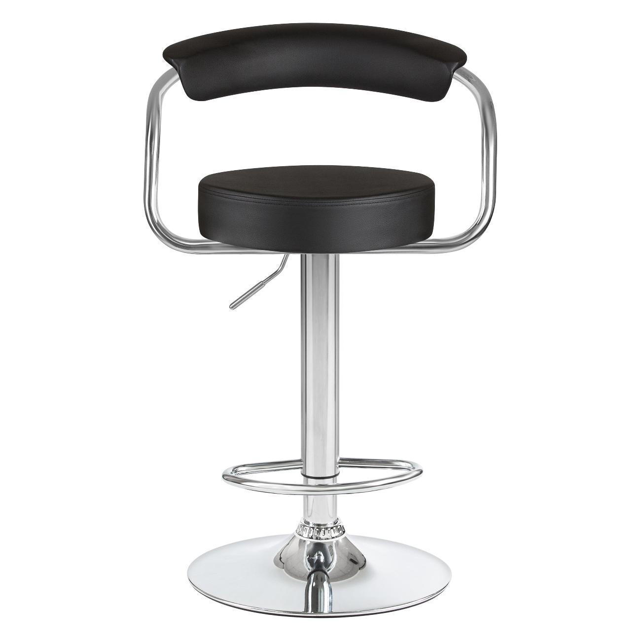 Стул барный DOBRIN MARTA (чёрный). Сиденье искусственная кожа, сиденье круглой формы, мягкое, с мягкой спинкой. Основание сделано из прочного металла. Есть механизм вращения. Стул с подлокотниками высотой 17 см. Стул с газлифтом, с регулировкой высоты максимальной высотой 104 см и минимальной высотой 83 см, ширина 52 см, глубина 49 см. Сиденье с максимальной высотой 85 см и минимальной высотой 64 см. Требуется простейшая сборка, удобная инструкция прилагается. Товар изготовлен по уникальному дизайну и эскизу DOBRIN с любовью к мебели. Максимальная нагрузка 100 кг. Гарантийный срок 12 месяцев и минимальный срок службы от 5 лет. Отлично подойдет барный стул для кухни, бара, кафе, ресторана, на дачу, парикмахерскую, в салон красоты или барбершоп