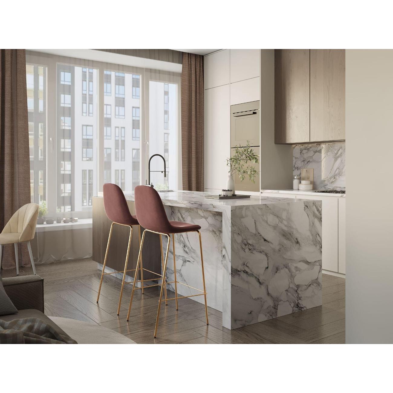Благодаря удобной посадке, приятной бархатистой фактуре велюра и оптимальной высоте барные стулья могут использоваться не только в домашней обстановке, но и в коммерческих и рабочих зонах. Комплект востребован как стулья для клиента, стулья визажиста, стулья для макияжа и стулья бровиста в салонах красоты, студиях макияжа и бьюти-пространствах. Мягкие сиденья с велюровой обивкой обеспечивают комфорт во время процедур, консультаций или ожидания, а высокая посадка облегчает работу мастера.