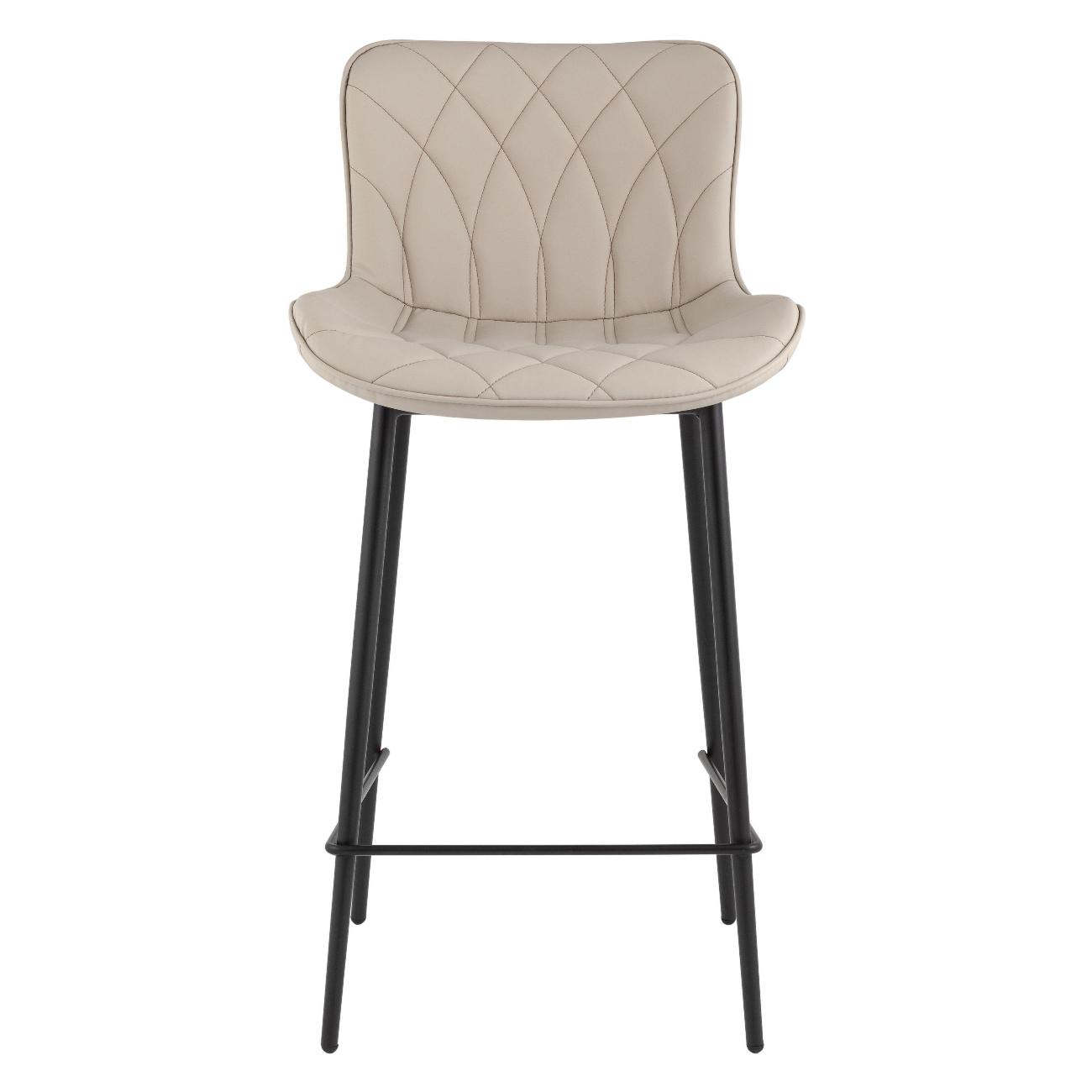 Комфортная посадка обеспечивается за счет широкого сиденья и плавной спинки. Декоративная стяжка в виде плавных ромбов подчеркивает стильный дизайн стула и добавляет мягкость сиденью. Прочный металлический каркас выдерживает нагрузку до 120 кг. Четыре металлических ножки оснащены подножкой для удобного положения ног.