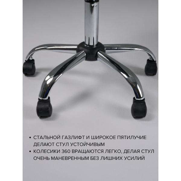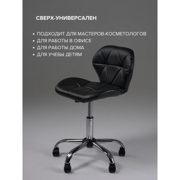 Стул мастера на колесиках со спинкой черный. Он же стул мастера маникюра, стул мастера педикюра или стул ракушка. А также очень полезный и удобный стул для дома: Маневренный. Можно передвигаться по кухне и делать домашние дела, помогает людям с травмами ног, помогая им оставаться мобильными. В общем данный стул крайне универсален и удобен для каждого, кому он необходим. Очень простой и быстрый в сборке. Регулируемый по высоте. Мягкое широкое сиденье 49см. Регулировка высоты 40-62см. Долговечный. Стильный. С гарантией 5 лет на все элементы.