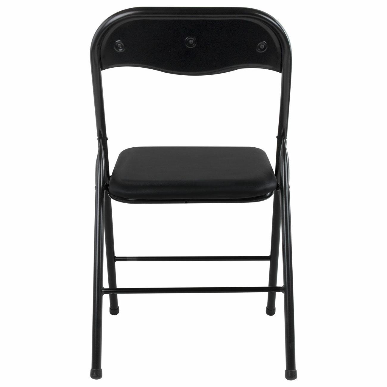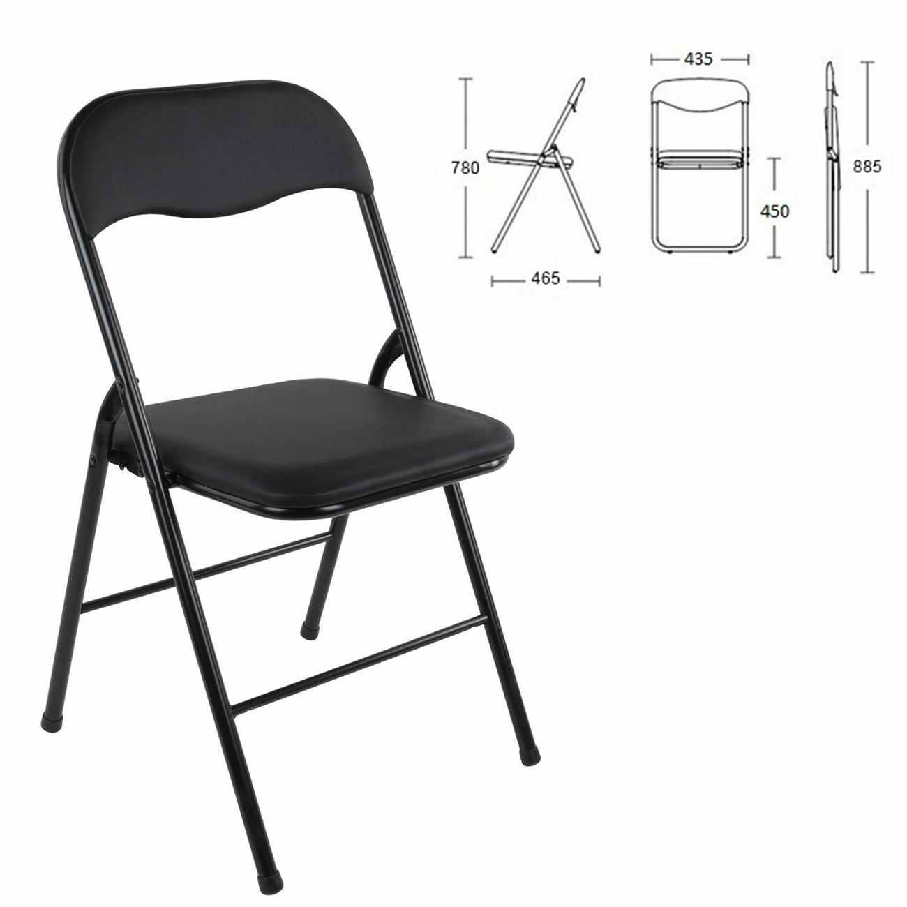 Материал обивки – качественный кожзаменитель повышенной износостойкости. Складная конструкция экономит место при перевозке и хранении. Доступная цена поможет оптимизировать бюджет. Прочная металлическая рама обеспечивает долговечность эксплуатации, а пластиковые насадки на ножках защищают напольное покрытие от повреждений. В набивке спинки и сиденья использован поролон высокой плотности. Стул выдерживает нагрузку до 110 кг. Для дополнительной сохранности комплект упакован в картонную коробку.