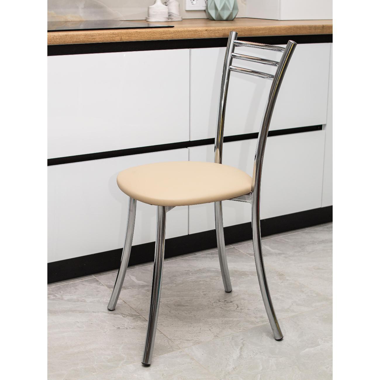 Набор включает четыре стула. Изделия предназначены для использования в помещении: на кухне, в столовой, на даче или в кафе. Каждый стул имеет мягкую сидушку. Ножки выполнены из металла с хромированным покрытием. Каркас цельносварной, что обеспечивает устойчивость конструкции. На нижних концах ножек установлены пластиковые заглушки. Заглушки предотвращают скольжение и защищают напольное покрытие от царапин. Вес одного стула — 3,3 кг. Легкий вес упрощает перемещение стульев по комнате. Сидушка обтянута экокожей. Материал устойчив к загрязнениям, легко очищается влажной тряпкой. Экокожа не впитывает запахи, что актуально для кухонной мебели. Для сборки стула требуется прикрутить мягкую сидушку к цельносварному каркасу. В сидушке и каркасе предусмотрены монтажные отверстия. Крепежные элементы входят в комплект. Для сборки потребуется крестовая отвертка. Сборка одного стула занимает не более 5 минут. Благодаря продуманной конструкции и цельносварному каркасу стул устойчиво стоит на любой ровной поверхности. Рекомендуемая максимальная нагрузка — до 130 кг. Стулья поставляются в разобранном виде. В упаковке находятся: четыре сидушки, четыре цельносварных каркаса, пластиковые заглушки (предварительно установлены на ножки), комплект крепежа. Модель подходит для ежедневного использования на кухне, для временной рассадки гостей, для использования на даче, в столовой или в малом коммерческом помещении (кафе, столовая). Легкий вес позволяет быстро переставлять стулья при уборке или изменении планировки. Стулья имеют лаконичный внешний вид. Хромированные ножки сочетаются с большинством кухонных интерьеров — от минимализма до хай-тека. Мягкая сидушка добавляет комфорта при длительном сидении.